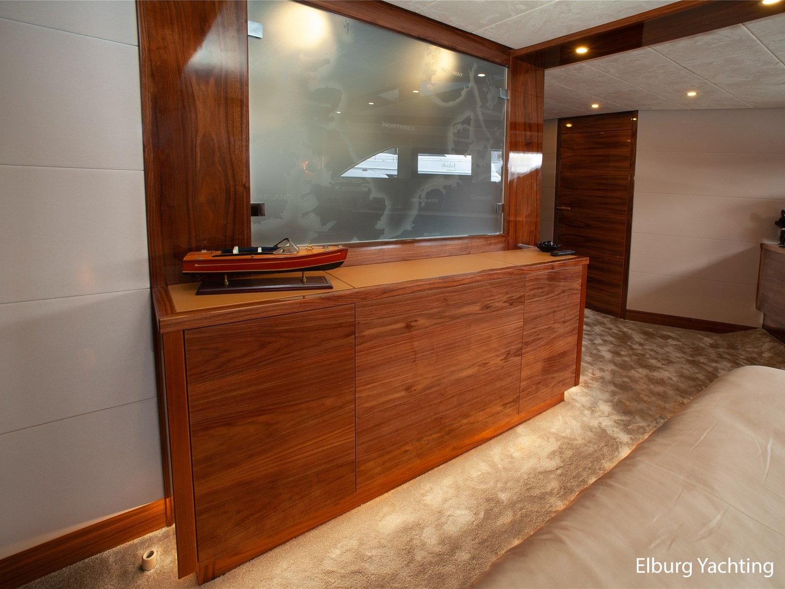 Deze Van den Hoven Executive 2100 is ontworpen voor wie graag langdurig en comfortabel aan boord verblijft. Dit jacht uit 2019 beschikt over één zeer royale eigenaarshut midscheeps, voorzien van een ruime inloopkast en een complete badkamer. De ruimte in de voorpunt doet momenteel dienst als berging, maar is voorbereid om te worden omgebouwd tot een tweede slaapkamer, indien gewenst. Daarnaast kan een deel van de inloopkast worden ingericht als derde slaapvertrek. Dergelijke wensen kunnen met de jachtwerf Van den Hoven worden besproken.