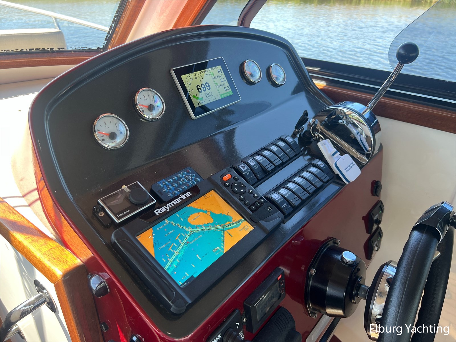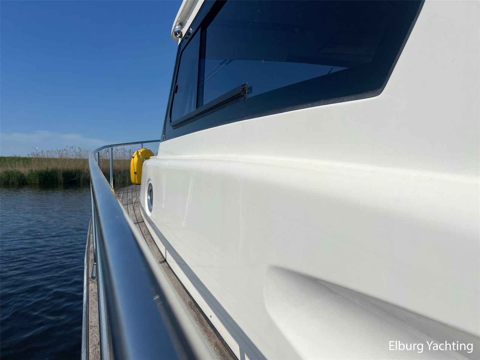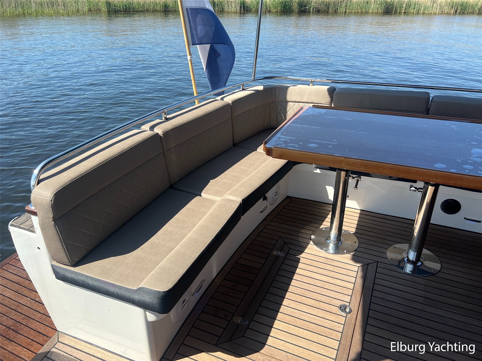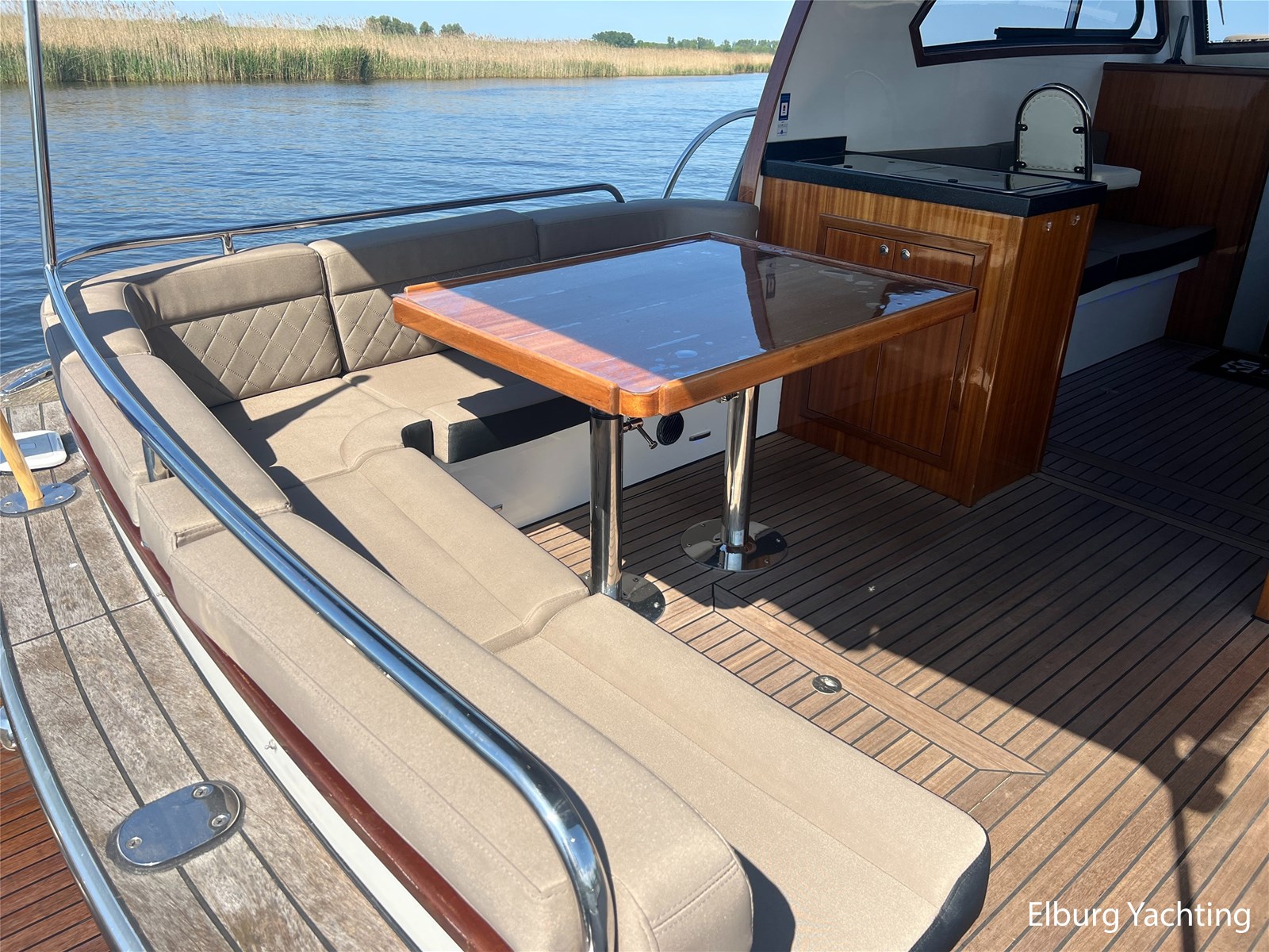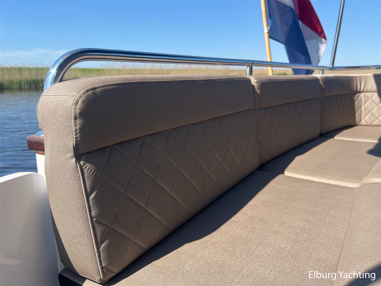 Deze mooie Panorama 34 is een heerlijk schip met een grote leefruimte buiten. De ruime zit op het achterdek is volledig overdekt, via een deur in de spiegel komt u direct op het zwemplatform welke zich op hetzelfde niveau bevindt. Op het voordek bevindt zich een zonnedek met gevormde kussens. Verder wordt dit schip geleverd met o.a: ruime open kuip met stuurstand/keuken/zithoek/zwemplatform op hetzelfde niveau, 2 x schuifraam in opbouw, complete wintertent om het gehele schip af te dekken, luxe bekleding, wegneembare meevaarstoel, kookeiland, volledig afsluitbare kuip door middel van een tent rondom het achterdek, Webasto kachel om kuip te verwarmen, luxe matrassen, r.v.s. ankerketting, elektrisch anker, zonnepaneel, r.v.s. zwemtrap, r.v.s. opklapbare kikkers, gemakkelijke opstap vanuit de kuip naar het stuurboord gangboord, r.v.s. zeereling.