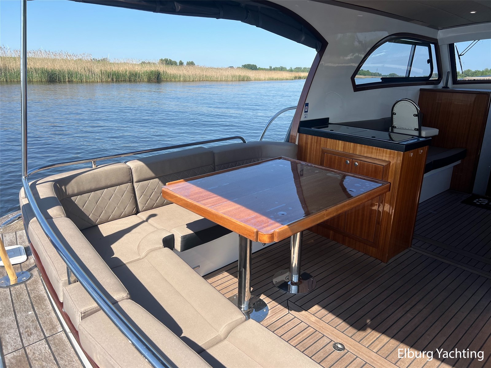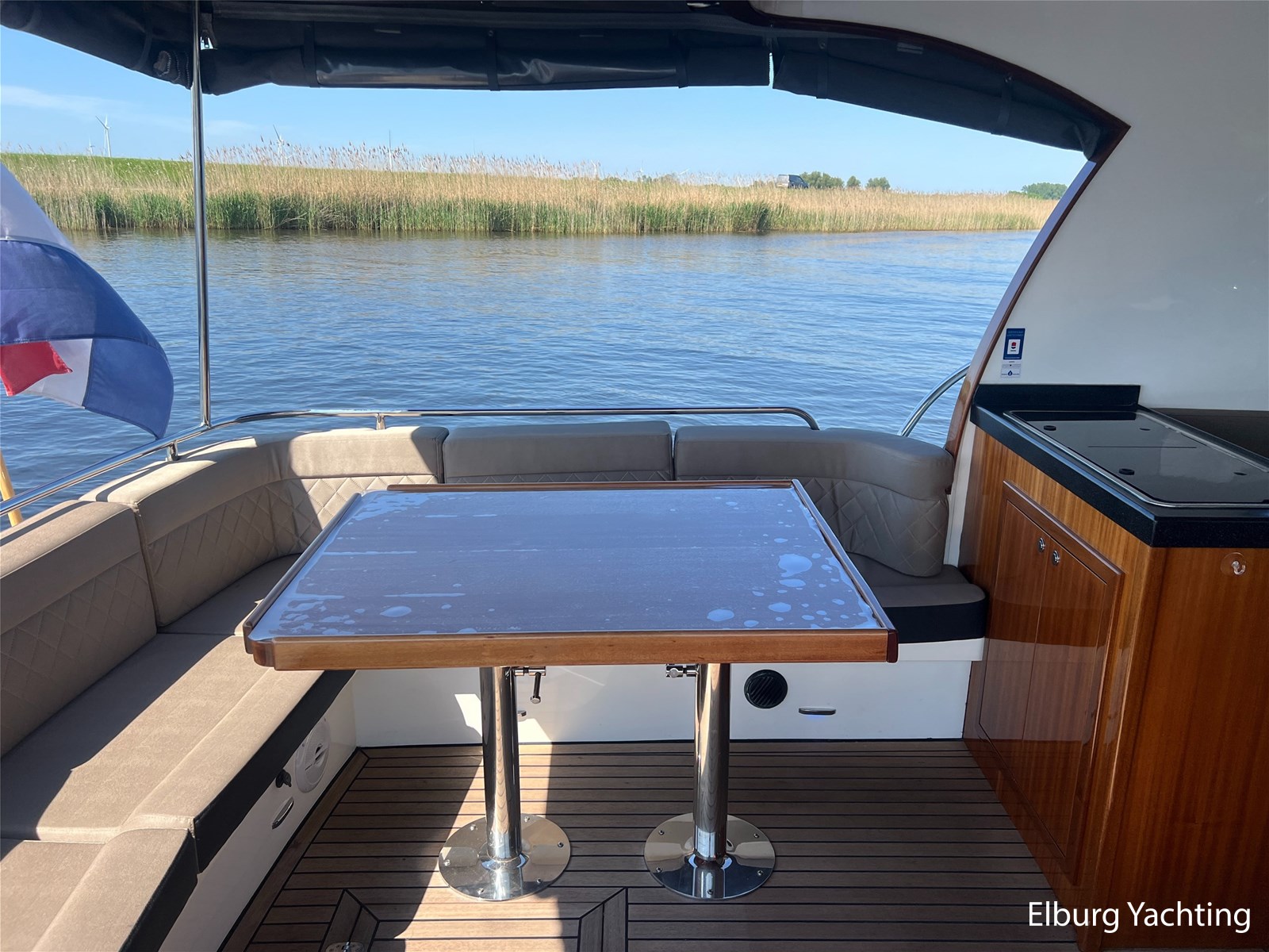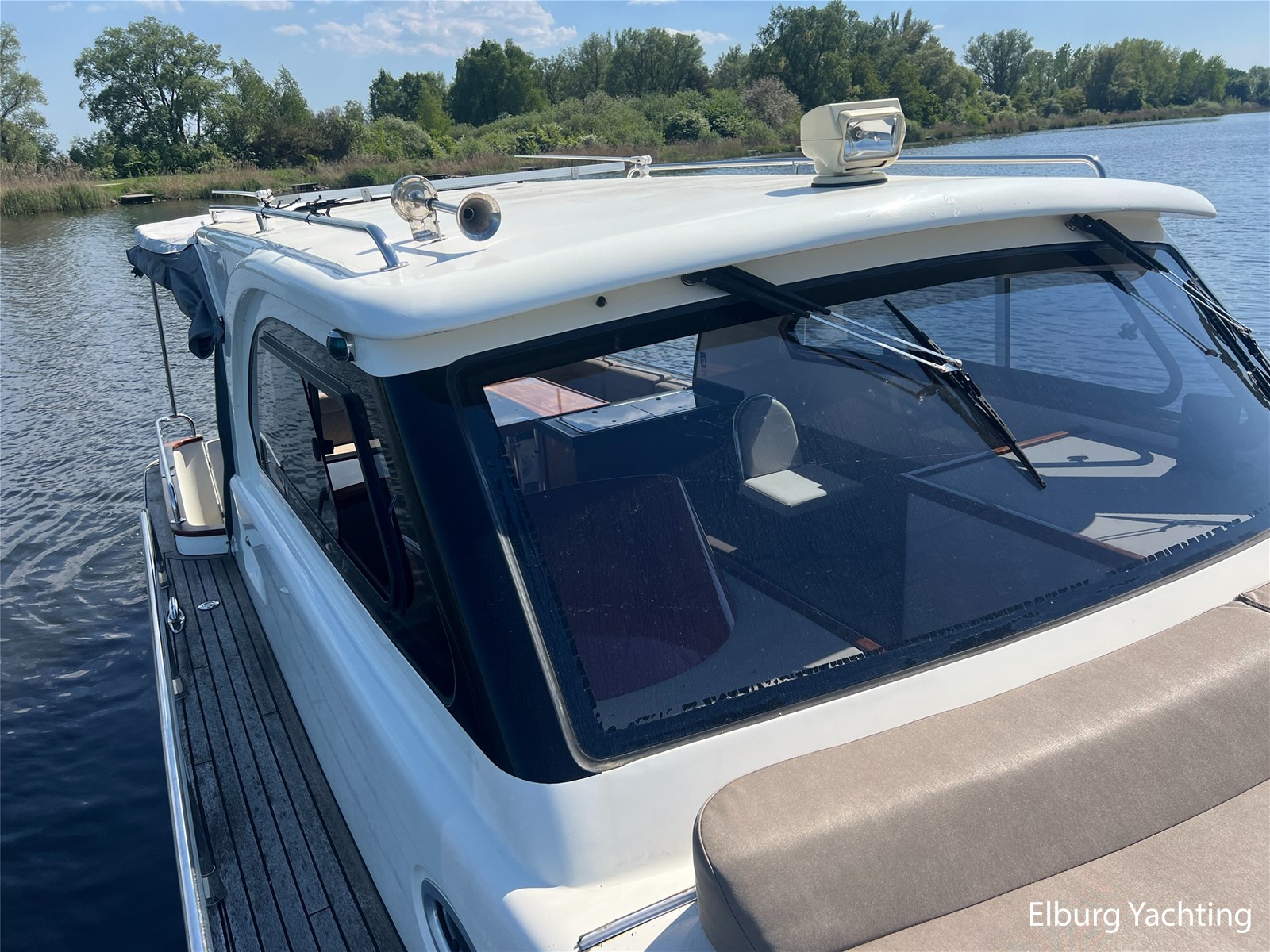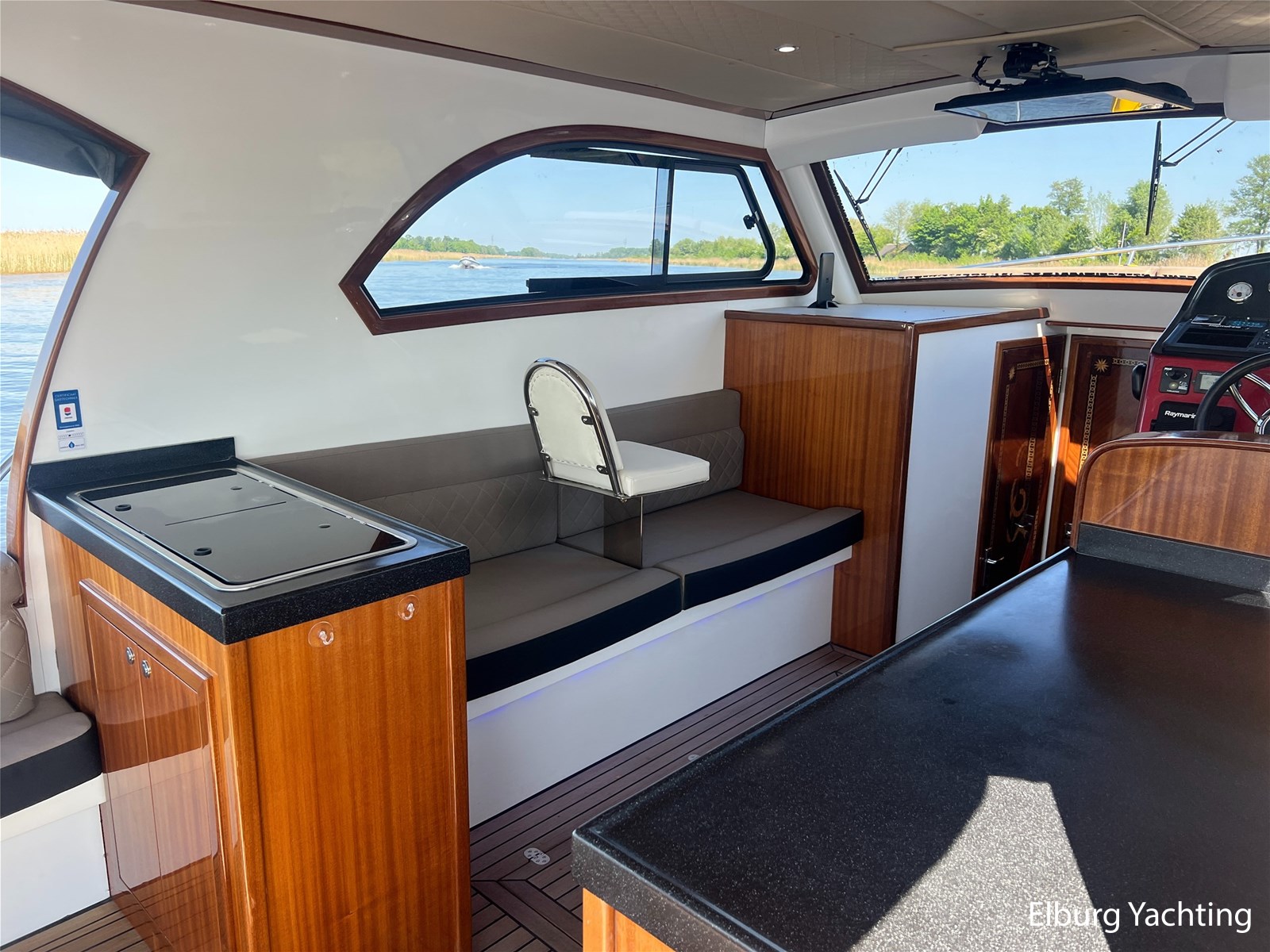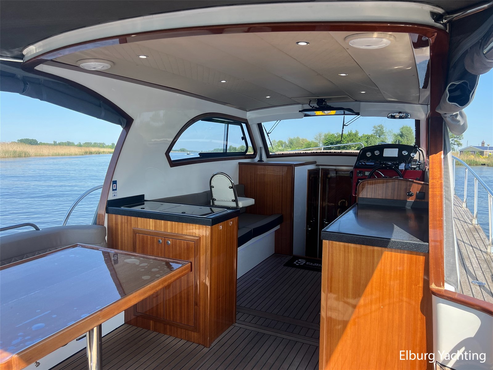 Deze mooie Panorama 34 is een heerlijk schip met een grote leefruimte buiten. De ruime zit op het achterdek is volledig overdekt, via een deur in de spiegel komt u direct op het zwemplatform welke zich op hetzelfde niveau bevindt. Op het voordek bevindt zich een zonnedek met gevormde kussens. Verder wordt dit schip geleverd met o.a: ruime open kuip met stuurstand/keuken/zithoek/zwemplatform op hetzelfde niveau, 2 x schuifraam in opbouw, complete wintertent om het gehele schip af te dekken, luxe bekleding, wegneembare meevaarstoel, kookeiland, volledig afsluitbare kuip door middel van een tent rondom het achterdek, Webasto kachel om kuip te verwarmen, luxe matrassen, r.v.s. ankerketting, elektrisch anker, zonnepaneel, r.v.s. zwemtrap, r.v.s. opklapbare kikkers, gemakkelijke opstap vanuit de kuip naar het stuurboord gangboord, r.v.s. zeereling.