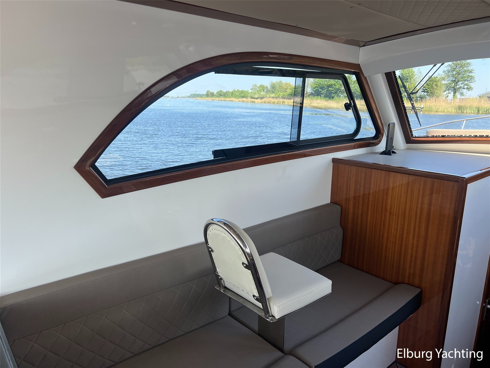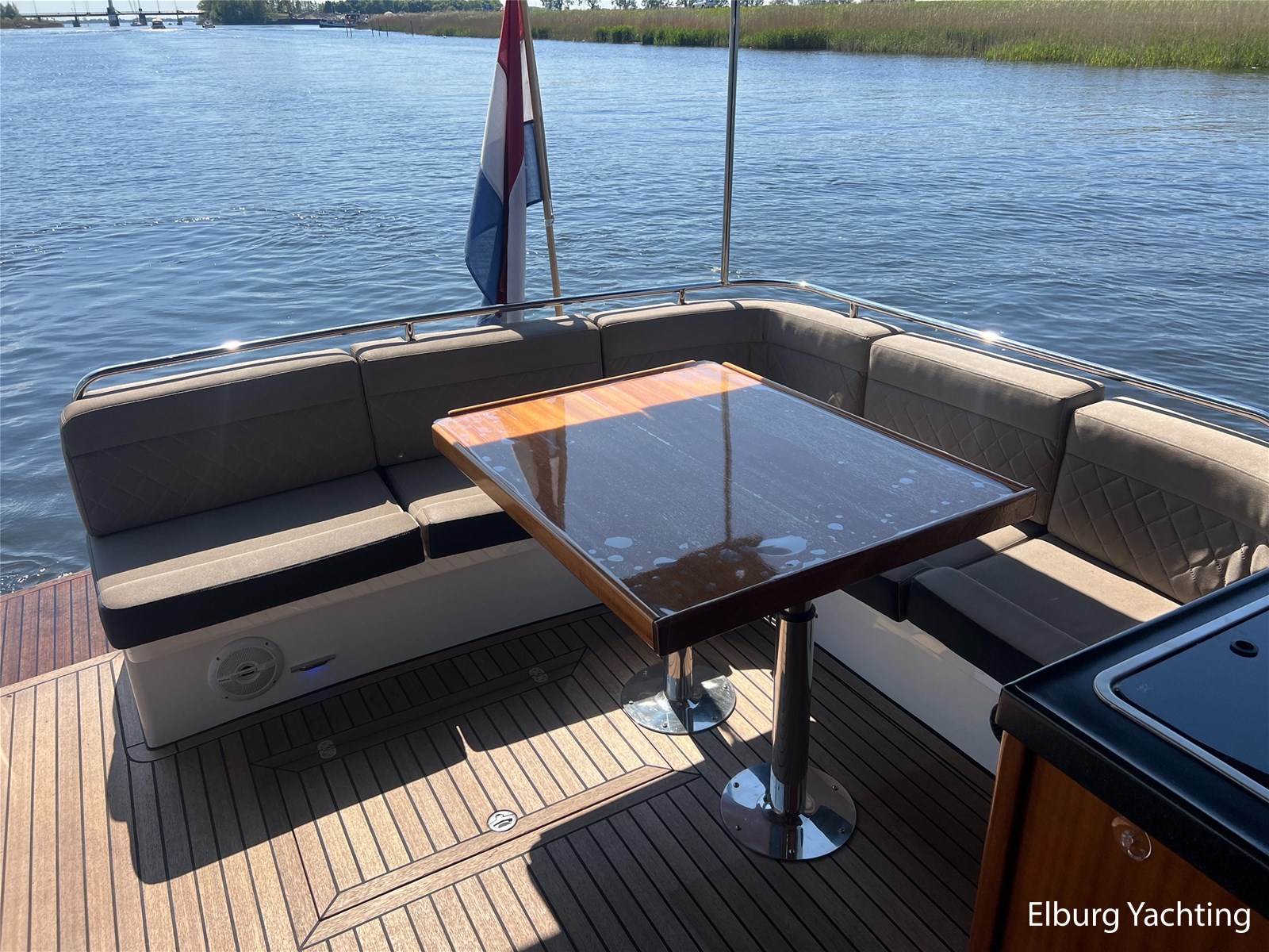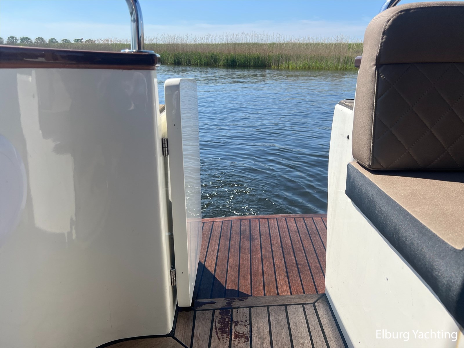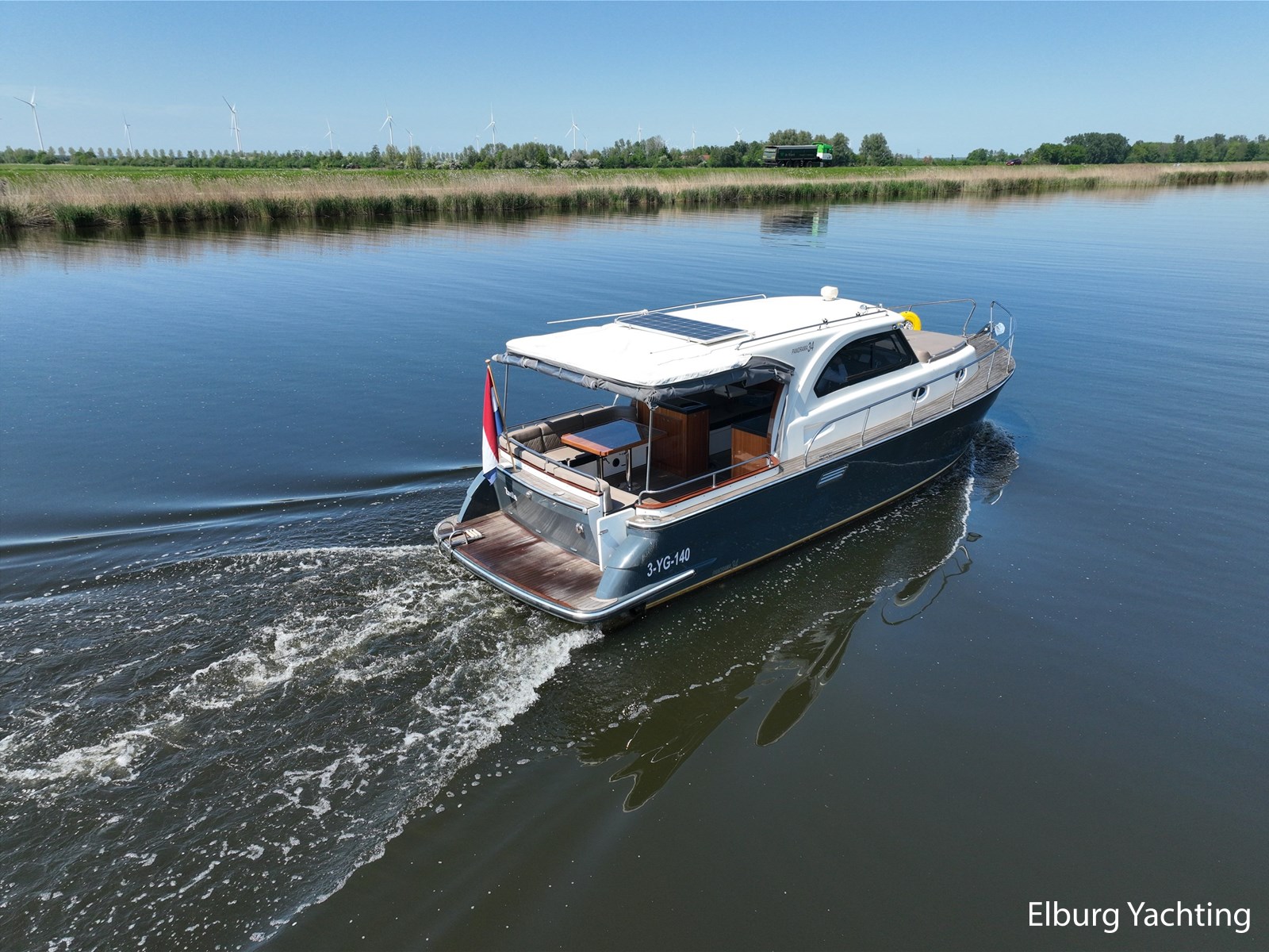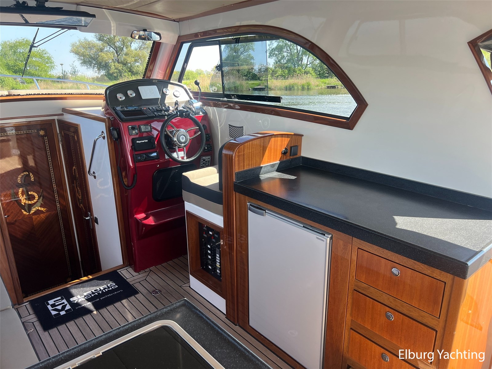 Deze mooie Panorama 34 is een heerlijk schip met een grote leefruimte buiten. De ruime zit op het achterdek is volledig overdekt, via een deur in de spiegel komt u direct op het zwemplatform welke zich op hetzelfde niveau bevindt. Op het voordek bevindt zich een zonnedek met gevormde kussens. Verder wordt dit schip geleverd met o.a: ruime open kuip met stuurstand/keuken/zithoek/zwemplatform op hetzelfde niveau, 2 x schuifraam in opbouw, complete wintertent om het gehele schip af te dekken, luxe bekleding, wegneembare meevaarstoel, kookeiland, volledig afsluitbare kuip door middel van een tent rondom het achterdek, Webasto kachel om kuip te verwarmen, luxe matrassen, r.v.s. ankerketting, elektrisch anker, zonnepaneel, r.v.s. zwemtrap, r.v.s. opklapbare kikkers, gemakkelijke opstap vanuit de kuip naar het stuurboord gangboord, r.v.s. zeereling.
