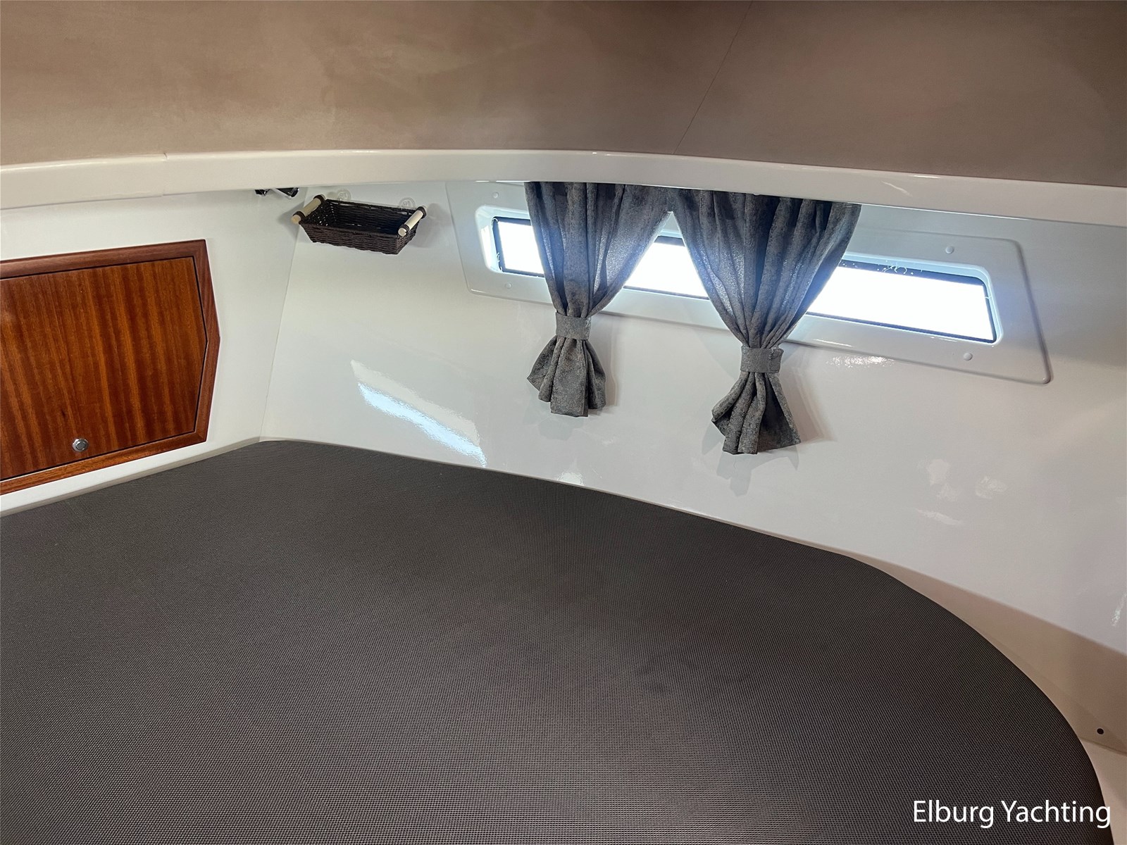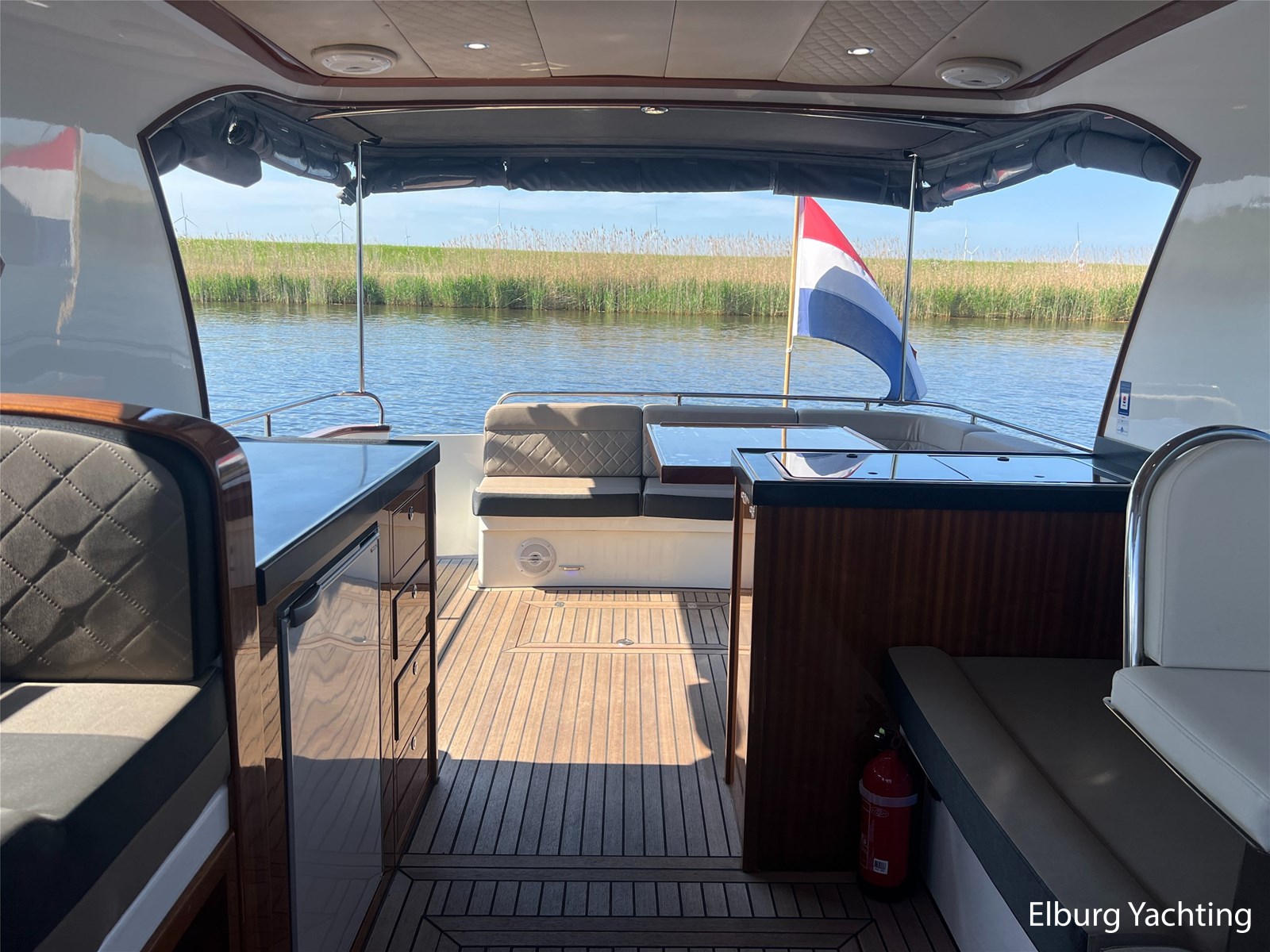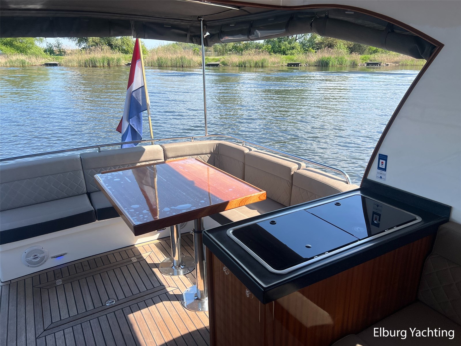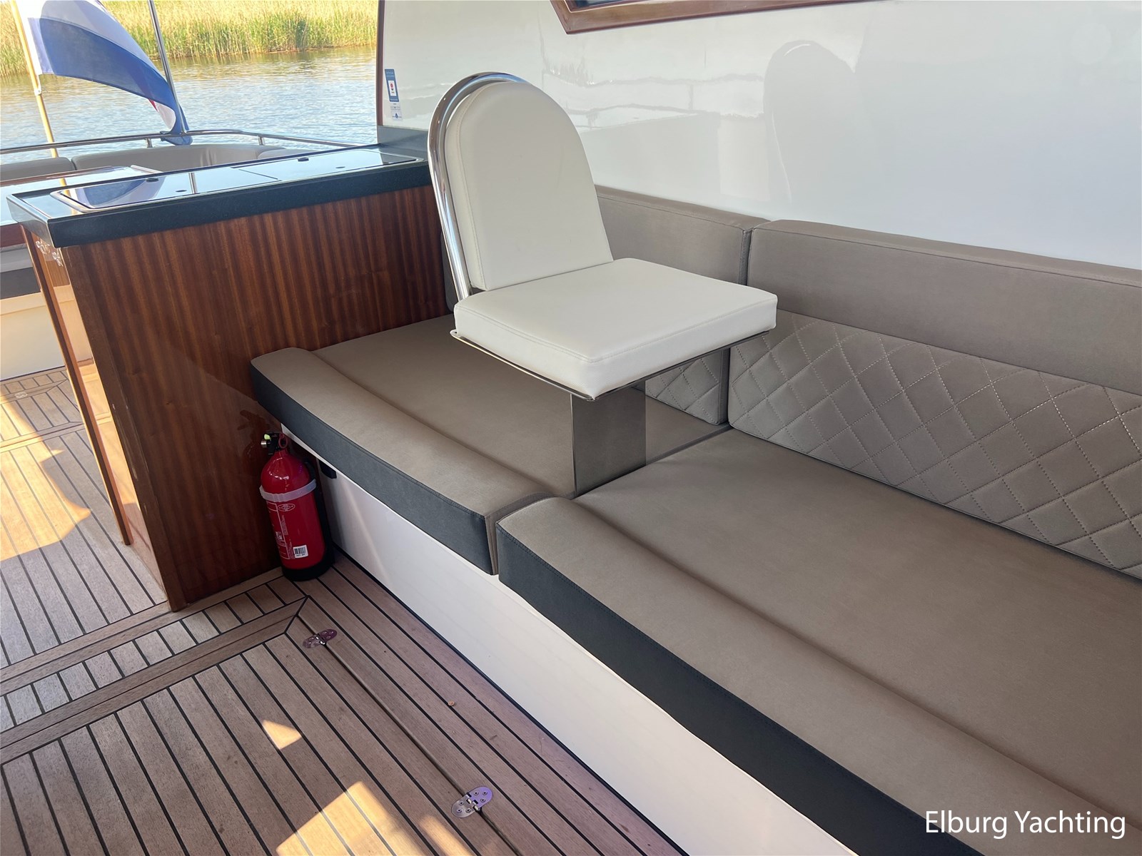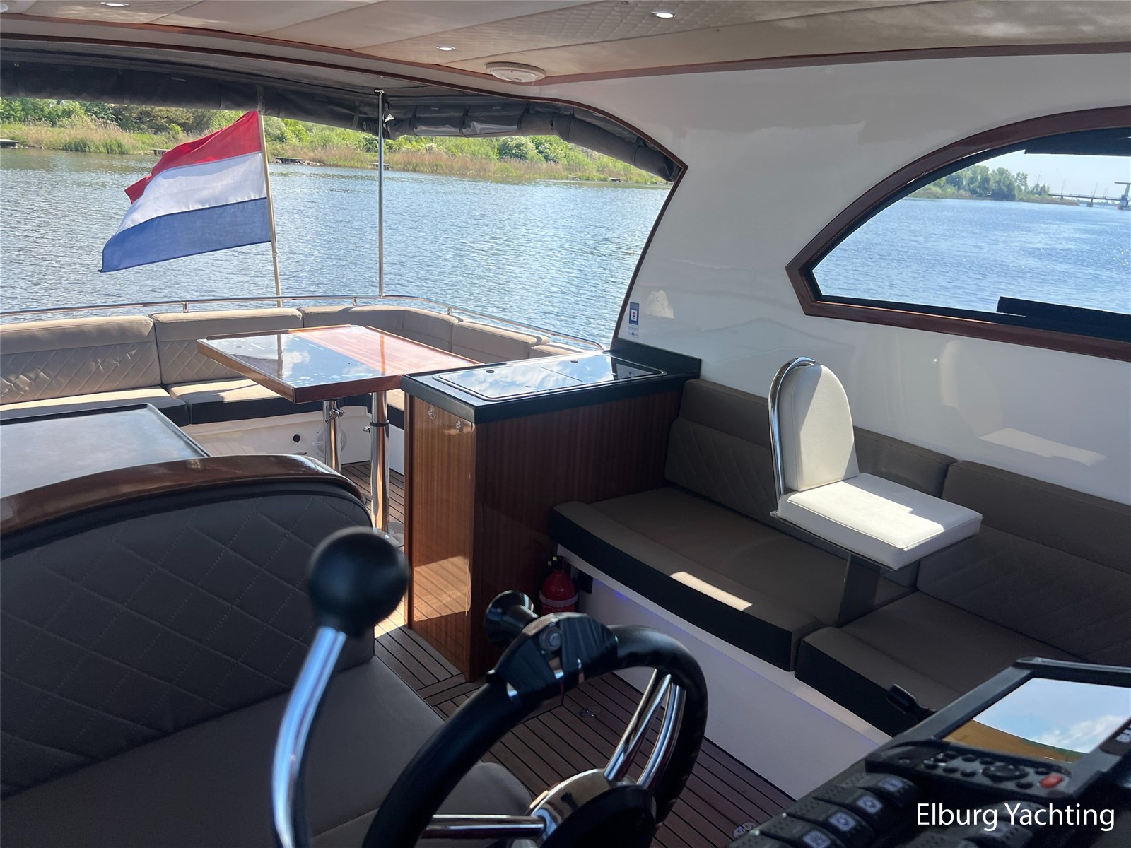 Deze mooie Panorama 34 is een heerlijk schip met een grote leefruimte buiten. De ruime zit op het achterdek is volledig overdekt, via een deur in de spiegel komt u direct op het zwemplatform welke zich op hetzelfde niveau bevindt. Op het voordek bevindt zich een zonnedek met gevormde kussens. Verder wordt dit schip geleverd met o.a: ruime open kuip met stuurstand/keuken/zithoek/zwemplatform op hetzelfde niveau, 2 x schuifraam in opbouw, complete wintertent om het gehele schip af te dekken, luxe bekleding, wegneembare meevaarstoel, kookeiland, volledig afsluitbare kuip door middel van een tent rondom het achterdek, Webasto kachel om kuip te verwarmen, luxe matrassen, r.v.s. ankerketting, elektrisch anker, zonnepaneel, r.v.s. zwemtrap, r.v.s. opklapbare kikkers, gemakkelijke opstap vanuit de kuip naar het stuurboord gangboord, r.v.s. zeereling.