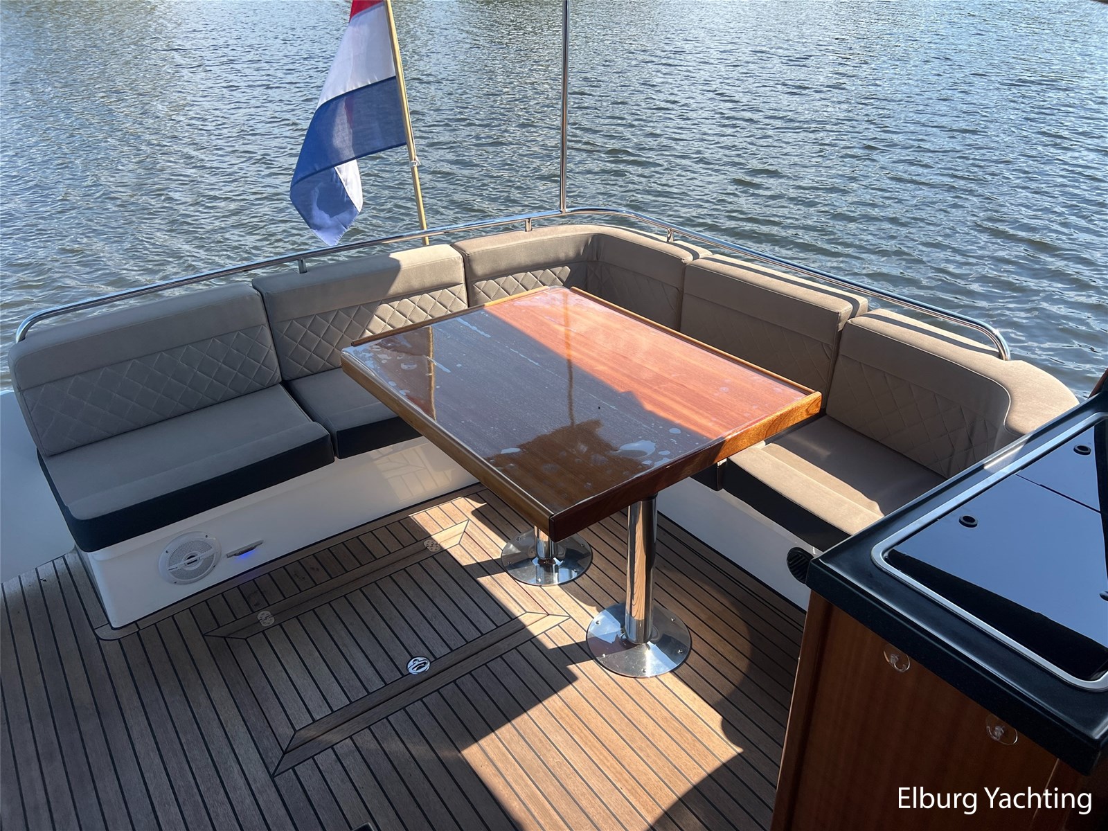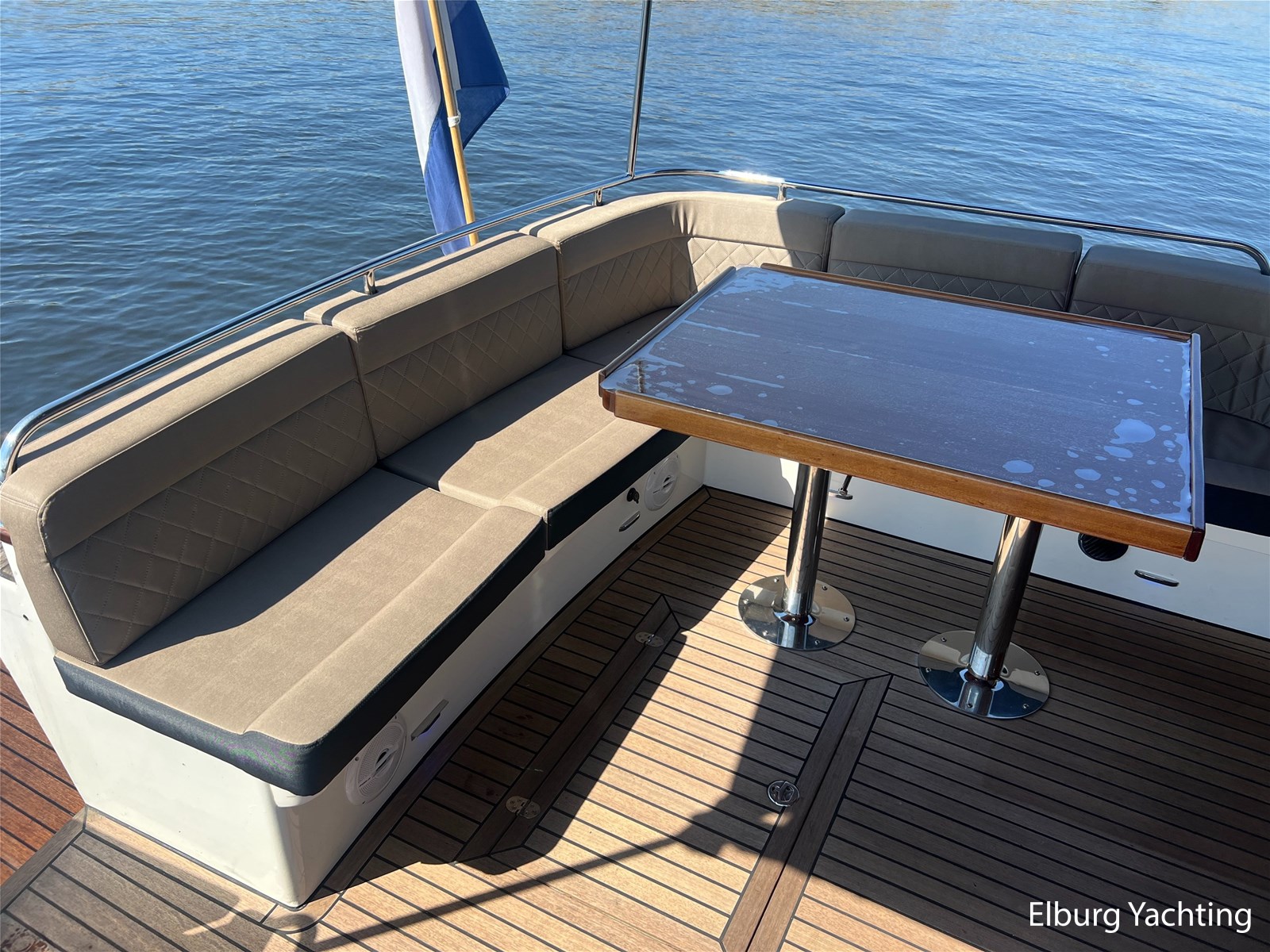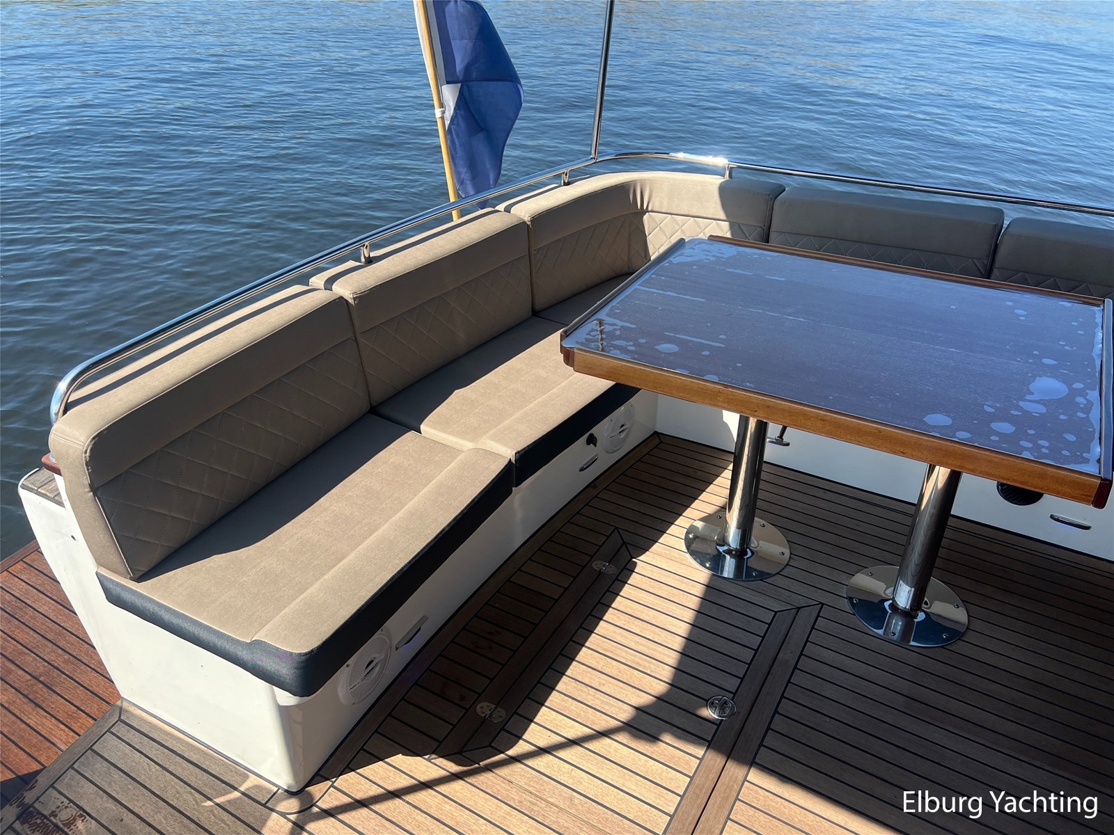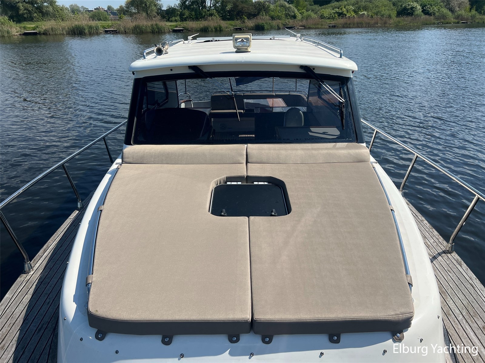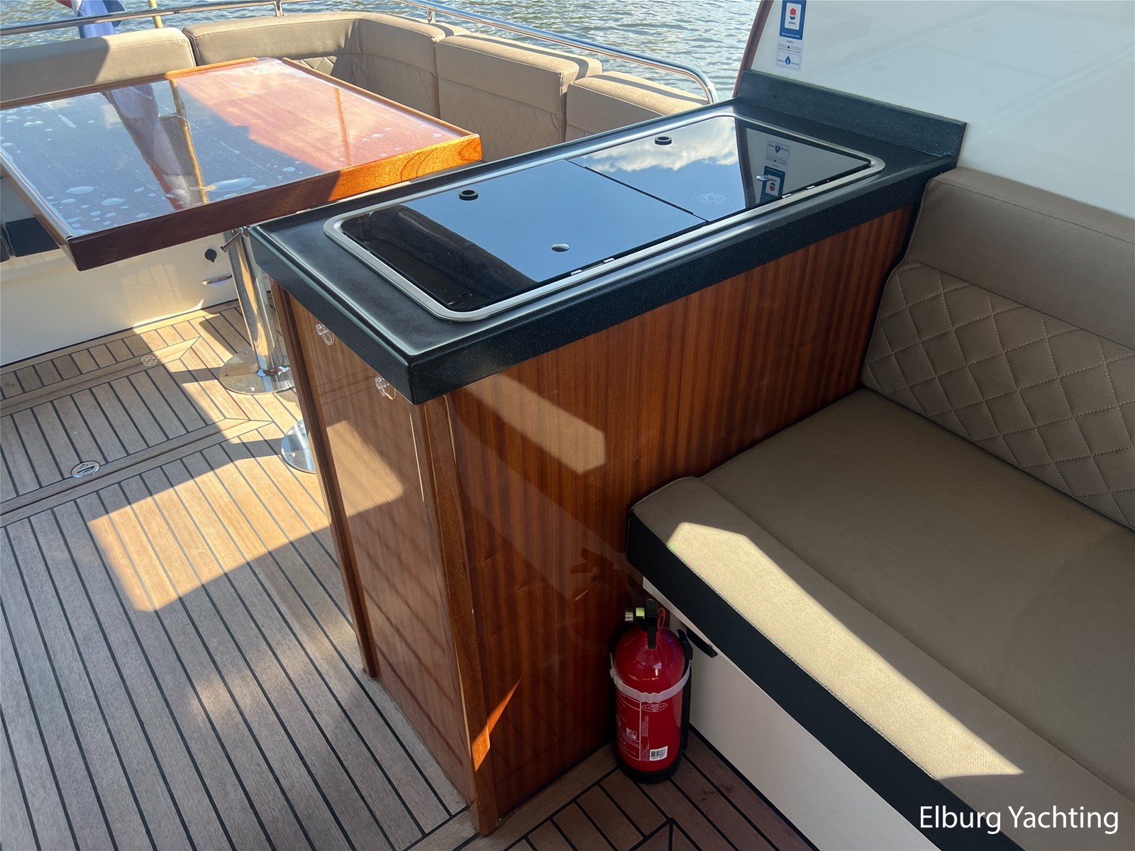 Deze mooie Panorama 34 is een heerlijk schip met een grote leefruimte buiten. De ruime zit op het achterdek is volledig overdekt, via een deur in de spiegel komt u direct op het zwemplatform welke zich op hetzelfde niveau bevindt. Op het voordek bevindt zich een zonnedek met gevormde kussens. Verder wordt dit schip geleverd met o.a: ruime open kuip met stuurstand/keuken/zithoek/zwemplatform op hetzelfde niveau, 2 x schuifraam in opbouw, complete wintertent om het gehele schip af te dekken, luxe bekleding, wegneembare meevaarstoel, kookeiland, volledig afsluitbare kuip door middel van een tent rondom het achterdek, Webasto kachel om kuip te verwarmen, luxe matrassen, r.v.s. ankerketting, elektrisch anker, zonnepaneel, r.v.s. zwemtrap, r.v.s. opklapbare kikkers, gemakkelijke opstap vanuit de kuip naar het stuurboord gangboord, r.v.s. zeereling.