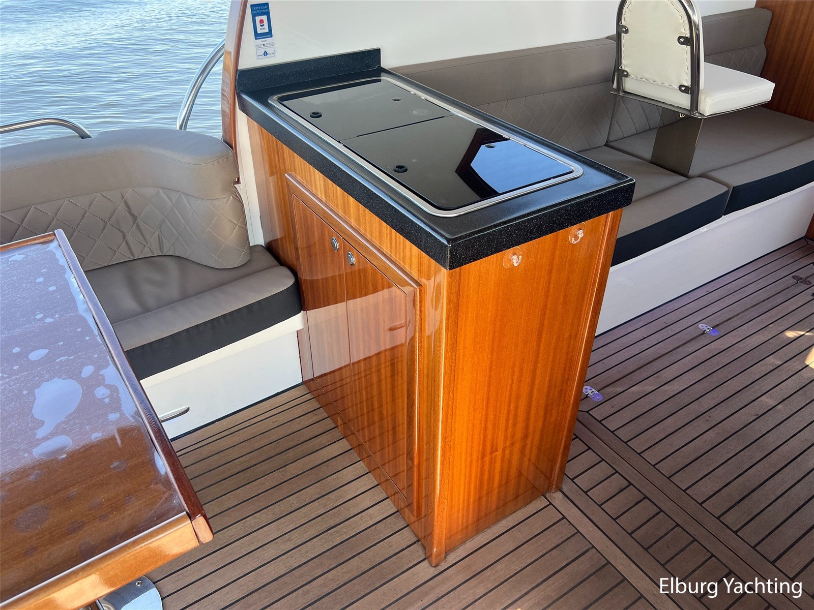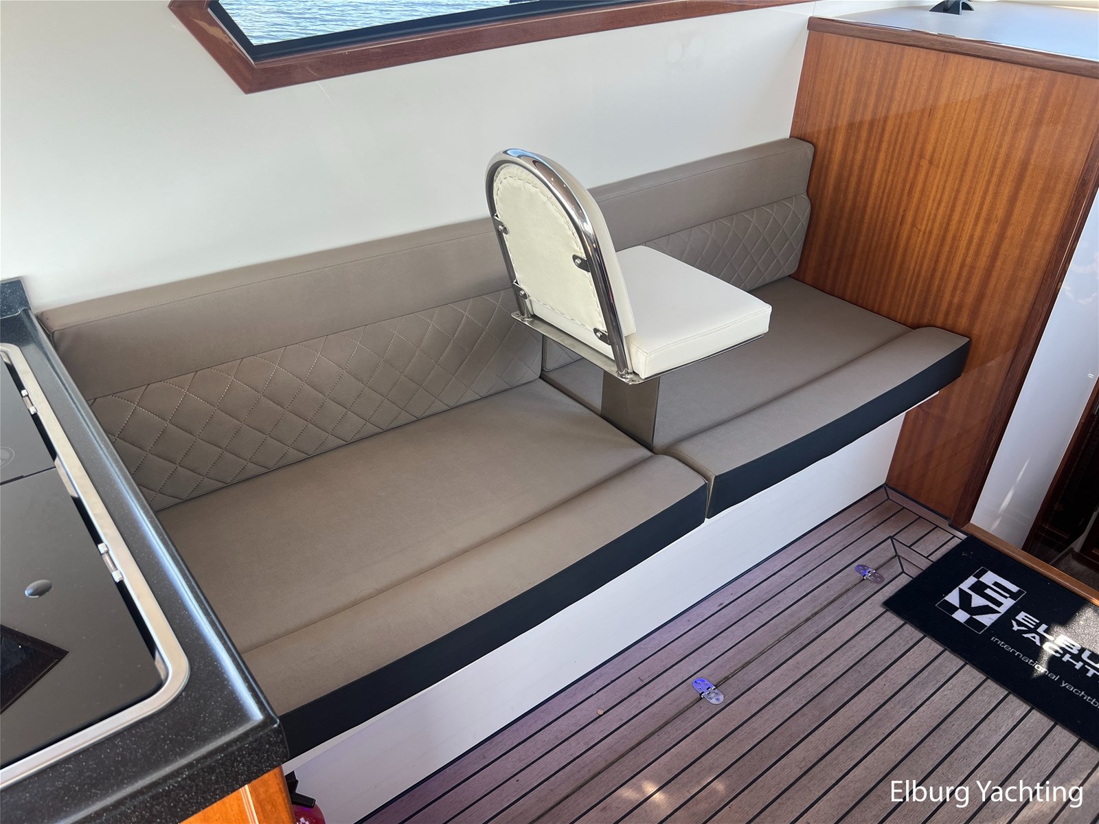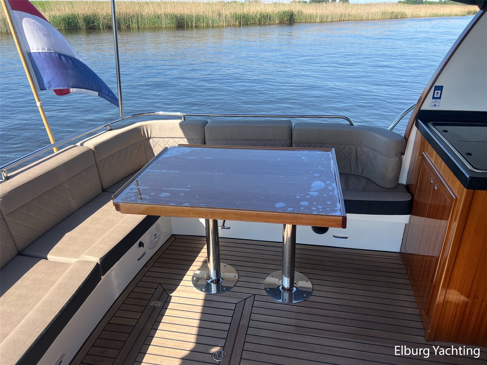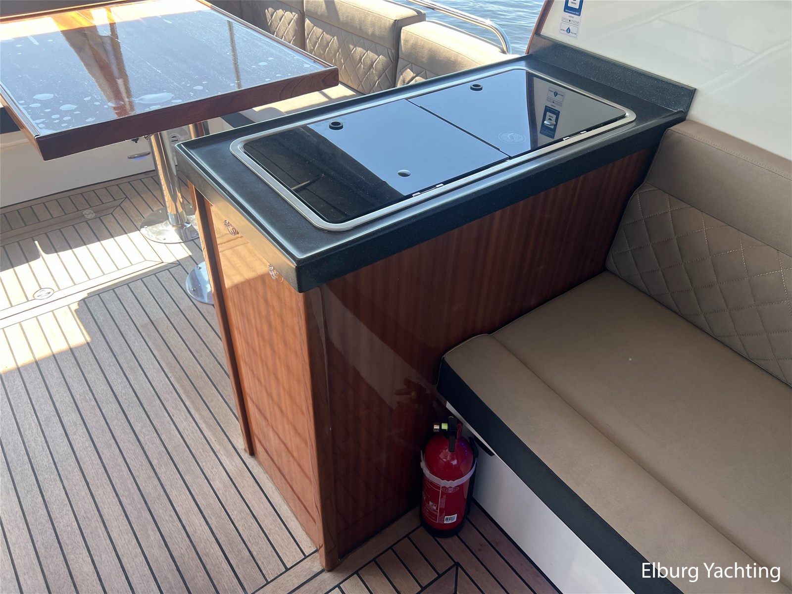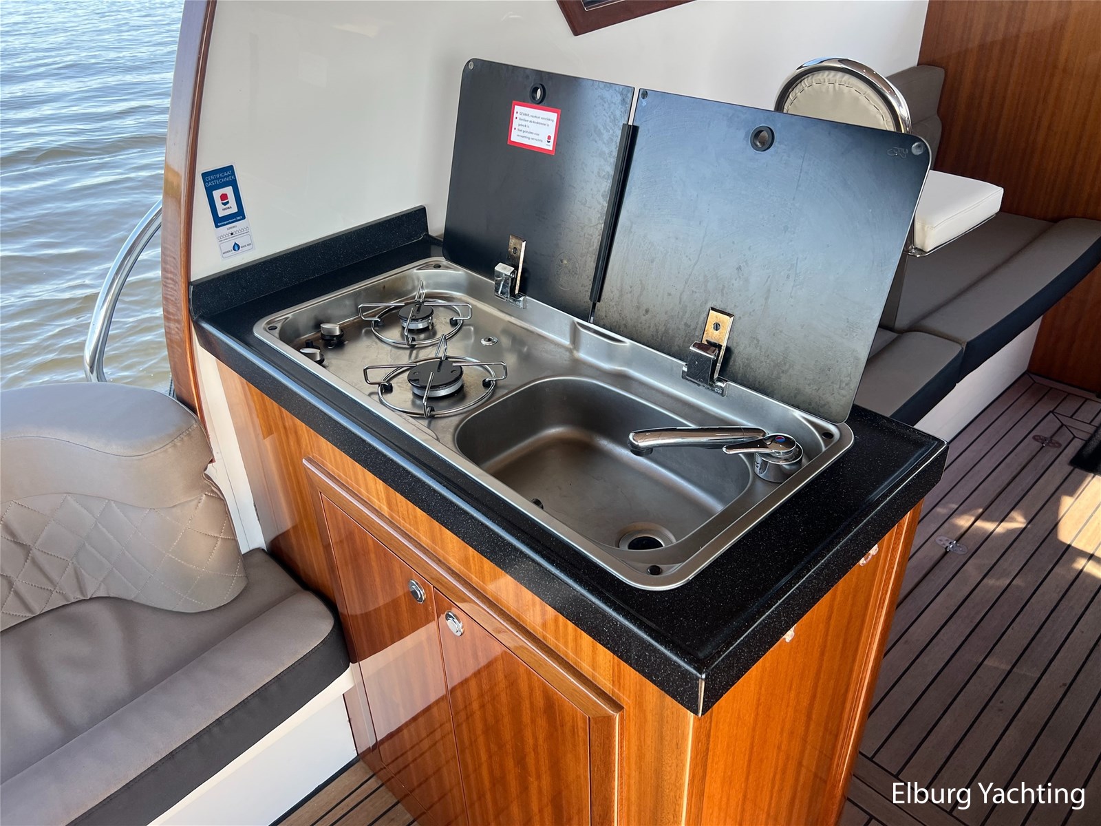 Deze mooie Panorama 34 is een heerlijk schip met een grote leefruimte buiten. De ruime zit op het achterdek is volledig overdekt, via een deur in de spiegel komt u direct op het zwemplatform welke zich op hetzelfde niveau bevindt. Op het voordek bevindt zich een zonnedek met gevormde kussens. Verder wordt dit schip geleverd met o.a: ruime open kuip met stuurstand/keuken/zithoek/zwemplatform op hetzelfde niveau, 2 x schuifraam in opbouw, complete wintertent om het gehele schip af te dekken, luxe bekleding, wegneembare meevaarstoel, kookeiland, volledig afsluitbare kuip door middel van een tent rondom het achterdek, Webasto kachel om kuip te verwarmen, luxe matrassen, r.v.s. ankerketting, elektrisch anker, zonnepaneel, r.v.s. zwemtrap, r.v.s. opklapbare kikkers, gemakkelijke opstap vanuit de kuip naar het stuurboord gangboord, r.v.s. zeereling.