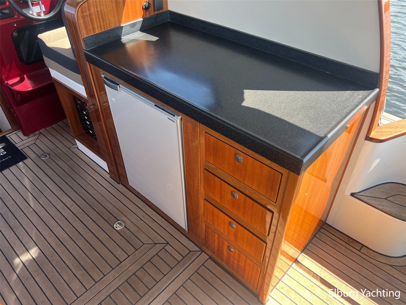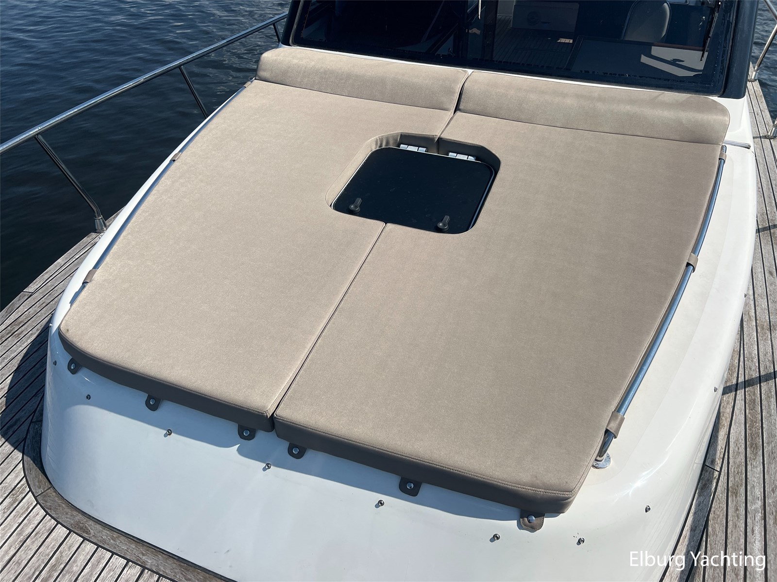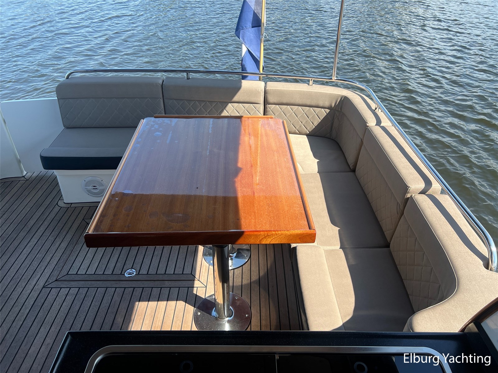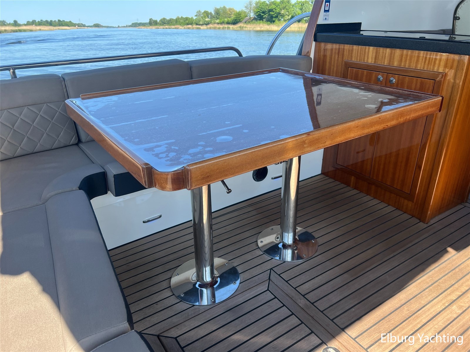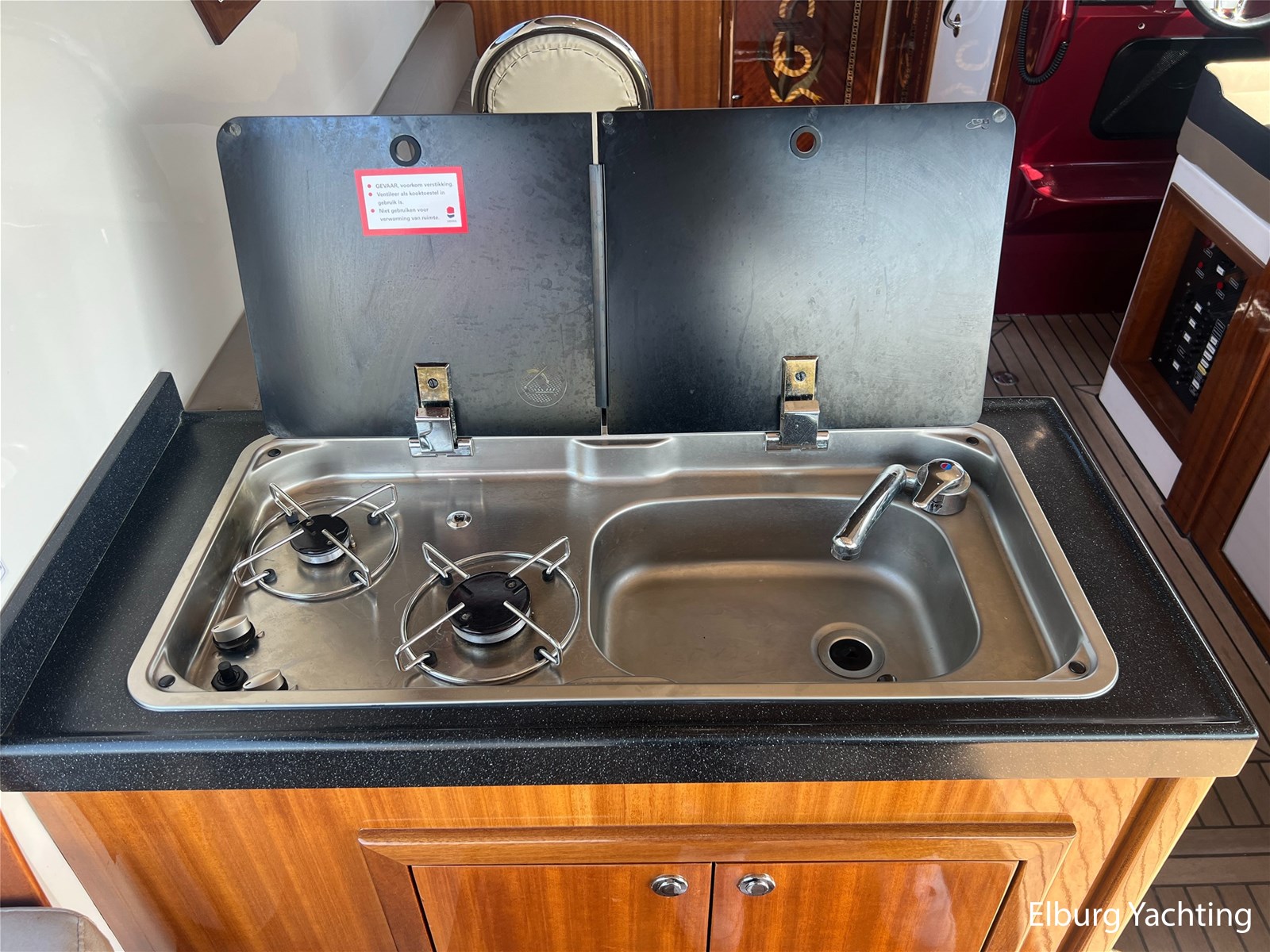 Deze mooie Panorama 34 is een heerlijk schip met een grote leefruimte buiten. De ruime zit op het achterdek is volledig overdekt, via een deur in de spiegel komt u direct op het zwemplatform welke zich op hetzelfde niveau bevindt. Op het voordek bevindt zich een zonnedek met gevormde kussens. Verder wordt dit schip geleverd met o.a: ruime open kuip met stuurstand/keuken/zithoek/zwemplatform op hetzelfde niveau, 2 x schuifraam in opbouw, complete wintertent om het gehele schip af te dekken, luxe bekleding, wegneembare meevaarstoel, kookeiland, volledig afsluitbare kuip door middel van een tent rondom het achterdek, Webasto kachel om kuip te verwarmen, luxe matrassen, r.v.s. ankerketting, elektrisch anker, zonnepaneel, r.v.s. zwemtrap, r.v.s. opklapbare kikkers, gemakkelijke opstap vanuit de kuip naar het stuurboord gangboord, r.v.s. zeereling.