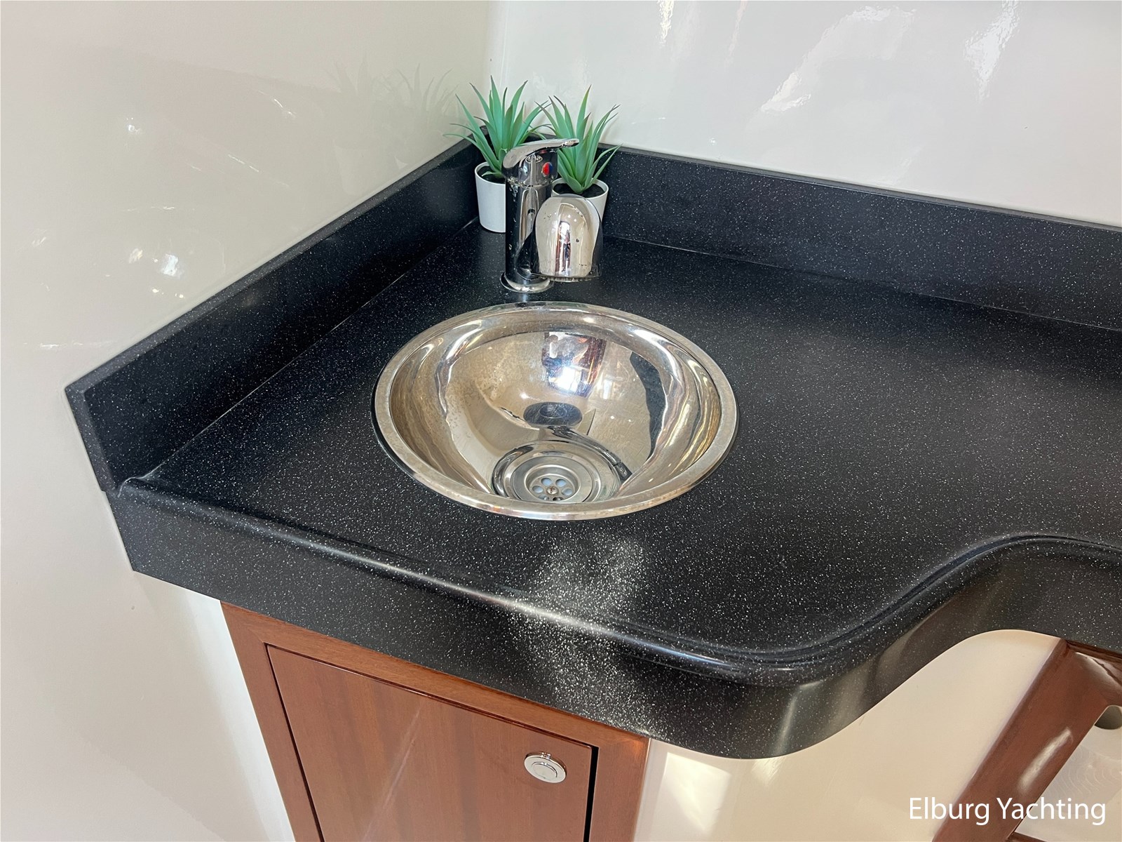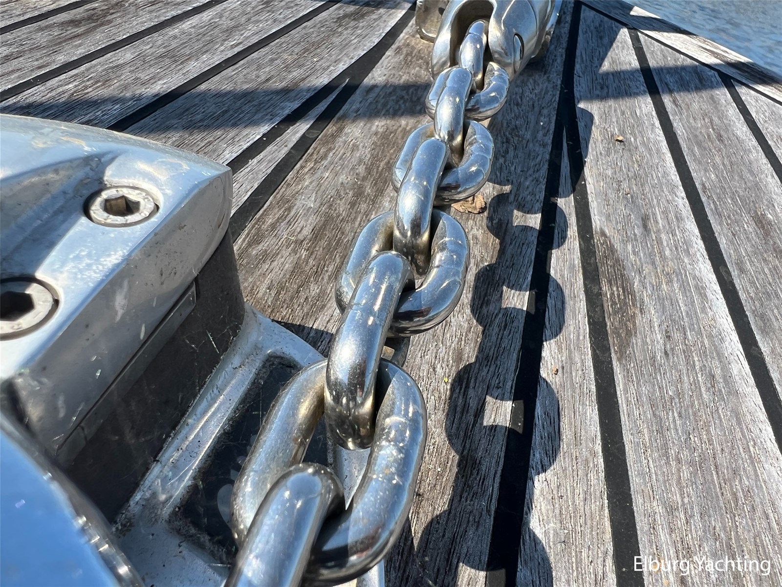 - Aangehangen met teak belegd + r.v.s. zwemtrap