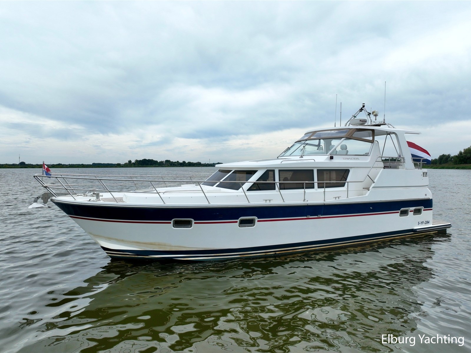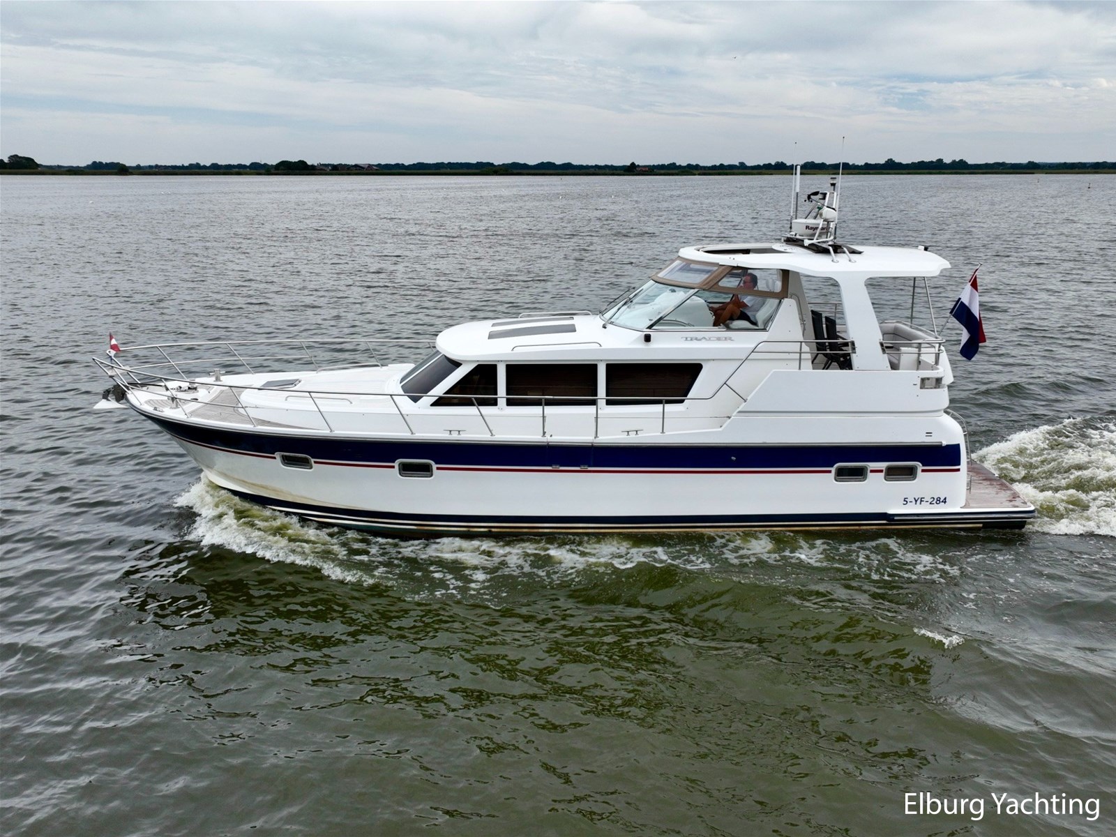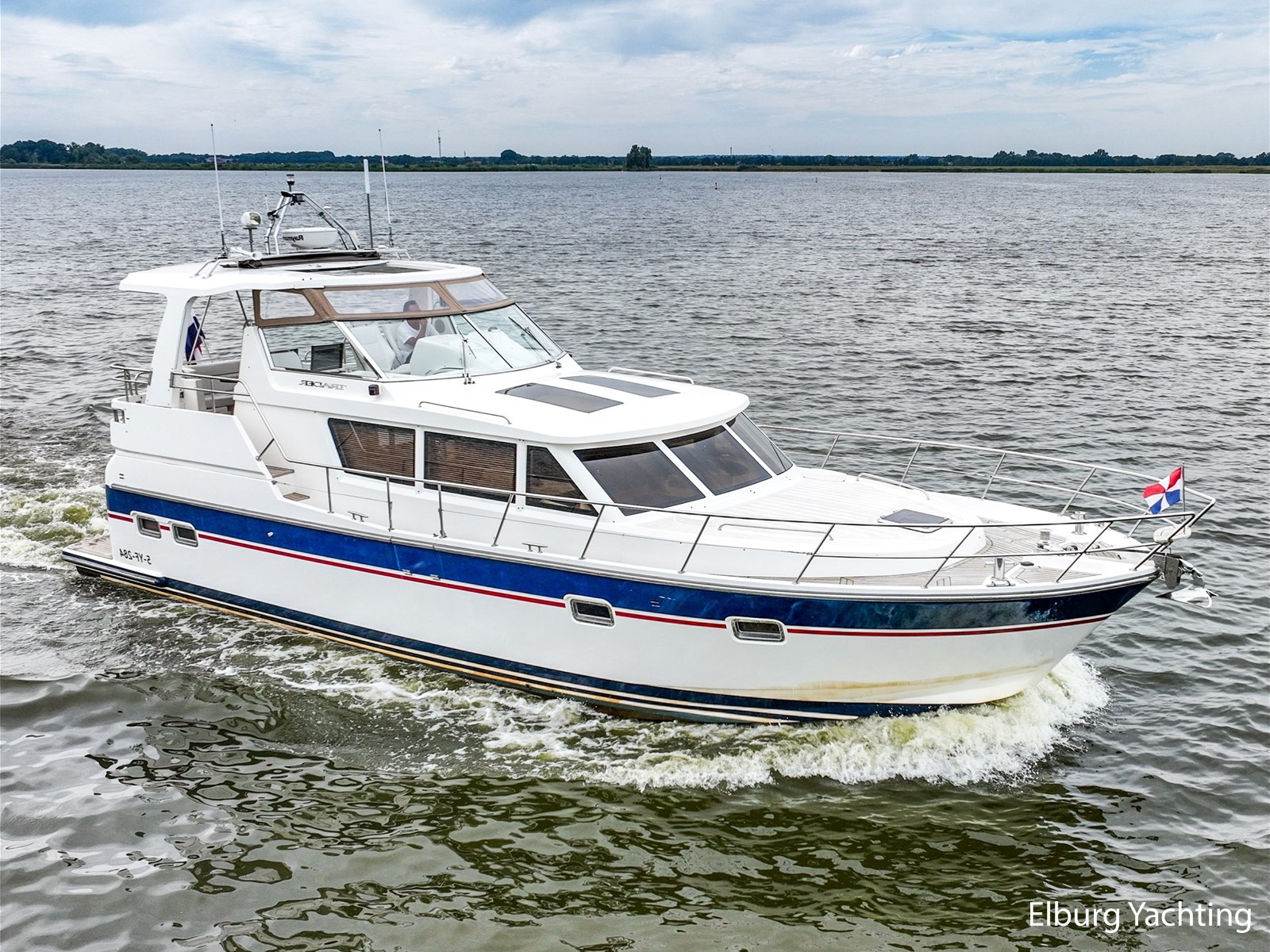 De Trader 42 is door een combinatie van veel praktische binnenruimte en goede vaareigenschappen, een echte sportieve allrounder voor zowel binnenwateren als op het grote water. Door middel van zijn halfglijder rompvorm ligt de maximaal snelheid op ca. 22 knopen. Deze Trader 42 heeft een vaste hardtop (HT) met geïntegreerd cabrio schuifdak boven de stuurstand. Het dek is gelijkvloers met de stuurstand en biedt een prachtig/hoog zicht rondom het schip. Beide gangboorden bieden voldoende veiligheid en steun in de loop naar het voordek. De salon is zowel via het achterdek als via de SB zijdeur te betreden. Het interieur van deze Trader 42 doet zeer hoogwaardig aan door zijn gedetailleerde houtafwerking en luxe materialen. De twee 2-persoonshutten hebben een eigen toegang en zijn voorzien van ieder een eigen badkamer met douche en toilet. Het schip beschikt o.a. over: Volledige tent rondom achterdek met heldere zichtvensters (vernieuwd in 2022), geïntegreerde kuipbank met klapbare tafel voorzien van gelakt houten blad, buitenverlichting, 2 x spiegeldeur, Lenco trimtabs, 2 x luxe vaarstoel op verschuifbare slede + meevaarbank aan BB-zijde, doorgang in reling aan BB en SB zijde, 4 x geïntegreerde bakskist in voordek, veel r.v.s. dekbeslag, zijdeur aan SB zijde met hordeur, Bosch vaatwasser, was-droog combinatie, TV in salon, horren voor patrijspoorten, houten jaloezieën, indirecte en dimbare sfeerverlichting, L-vormige bank in salon met uitklapbare kruk, Racor brandstoffilters, ruime machinekamer met goede toegankelijkheid tot de techniek, vaste geïntegreerde trap in spiegel, groot en breed zwemplateau, digitale motorinformatie (toerental/verbruik/urenstand/motorcondities). Onderhoud uitgevoerd op beide Cummins motoren in 05/2025. Voor vragen en/of het maken van een afspraak bent u 7 dagen per week van harte welkom bij Elburg Yachting.