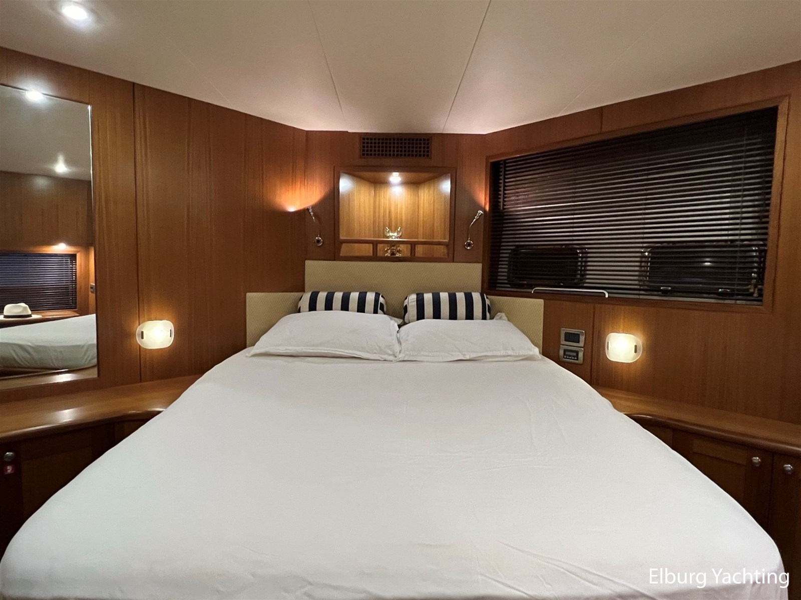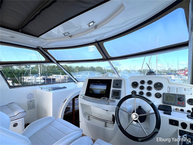 De Trader 42 is door een combinatie van veel praktische binnenruimte en goede vaareigenschappen, een echte sportieve allrounder voor zowel binnenwateren als op het grote water. Door middel van zijn halfglijder rompvorm ligt de maximaal snelheid op ca. 22 knopen. Deze Trader 42 heeft een vaste hardtop (HT) met geïntegreerd cabrio schuifdak boven de stuurstand. Het dek is gelijkvloers met de stuurstand en biedt een prachtig/hoog zicht rondom het schip. Beide gangboorden bieden voldoende veiligheid en steun in de loop naar het voordek. De salon is zowel via het achterdek als via de SB zijdeur te betreden. Het interieur van deze Trader 42 doet zeer hoogwaardig aan door zijn gedetailleerde houtafwerking en luxe materialen. De twee 2-persoonshutten hebben een eigen toegang en zijn voorzien van ieder een eigen badkamer met douche en toilet. Het schip beschikt o.a. over: Volledige tent rondom achterdek met heldere zichtvensters (vernieuwd in 2022), geïntegreerde kuipbank met klapbare tafel voorzien van gelakt houten blad, buitenverlichting, 2 x spiegeldeur, Lenco trimtabs, 2 x luxe vaarstoel op verschuifbare slede + meevaarbank aan BB-zijde, doorgang in reling aan BB en SB zijde, 4 x geïntegreerde bakskist in voordek, veel r.v.s. dekbeslag, zijdeur aan SB zijde met hordeur, Bosch vaatwasser, was-droog combinatie, TV in salon, horren voor patrijspoorten, houten jaloezieën, indirecte en dimbare sfeerverlichting, L-vormige bank in salon met uitklapbare kruk, Racor brandstoffilters, ruime machinekamer met goede toegankelijkheid tot de techniek, vaste geïntegreerde trap in spiegel, groot en breed zwemplateau, digitale motorinformatie (toerental/verbruik/urenstand/motorcondities). Onderhoud uitgevoerd op beide Cummins motoren in 05/2025. Voor vragen en/of het maken van een afspraak bent u 7 dagen per week van harte welkom bij Elburg Yachting.