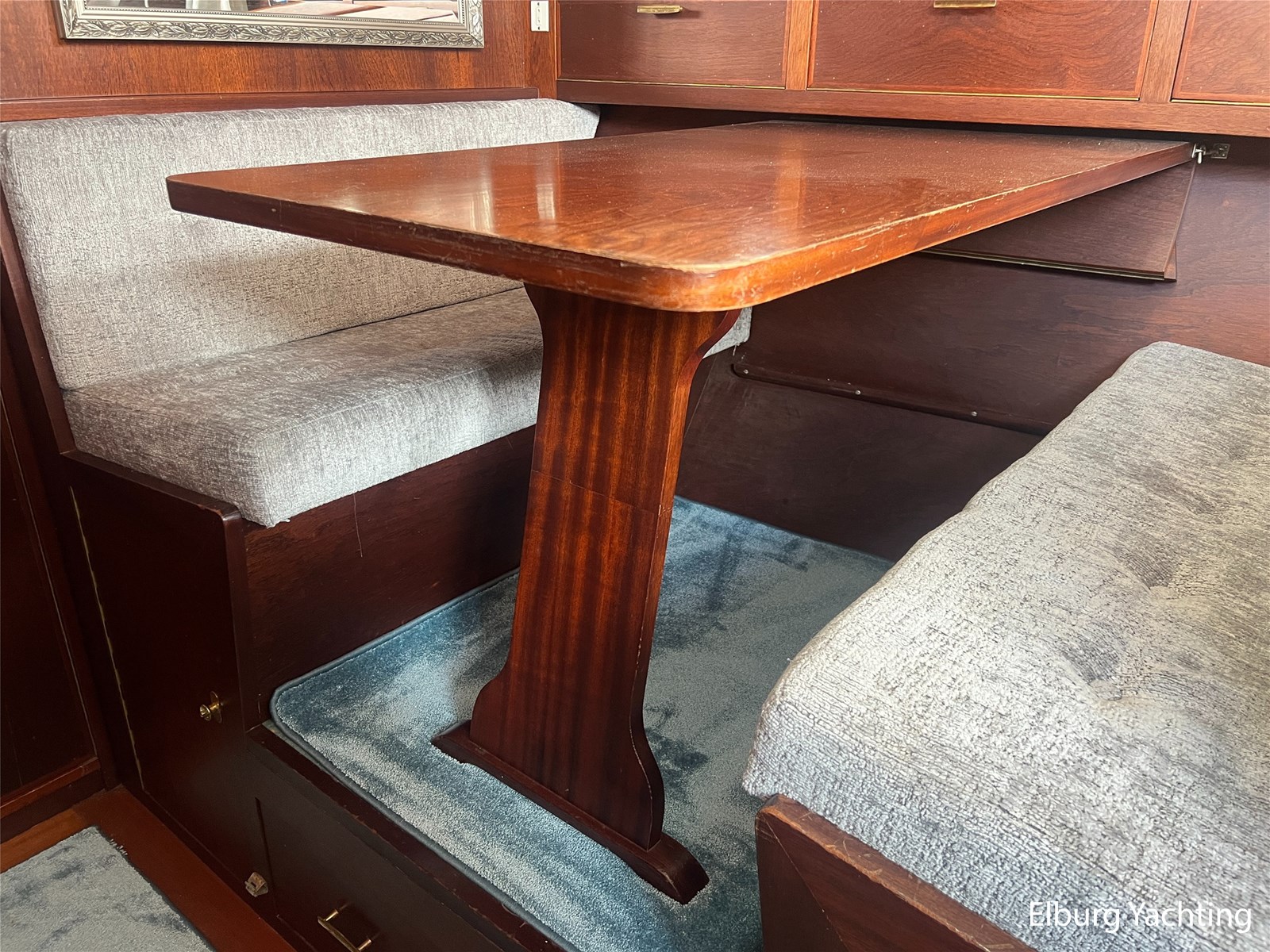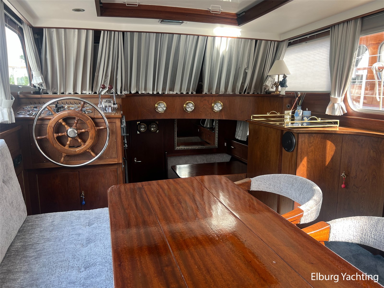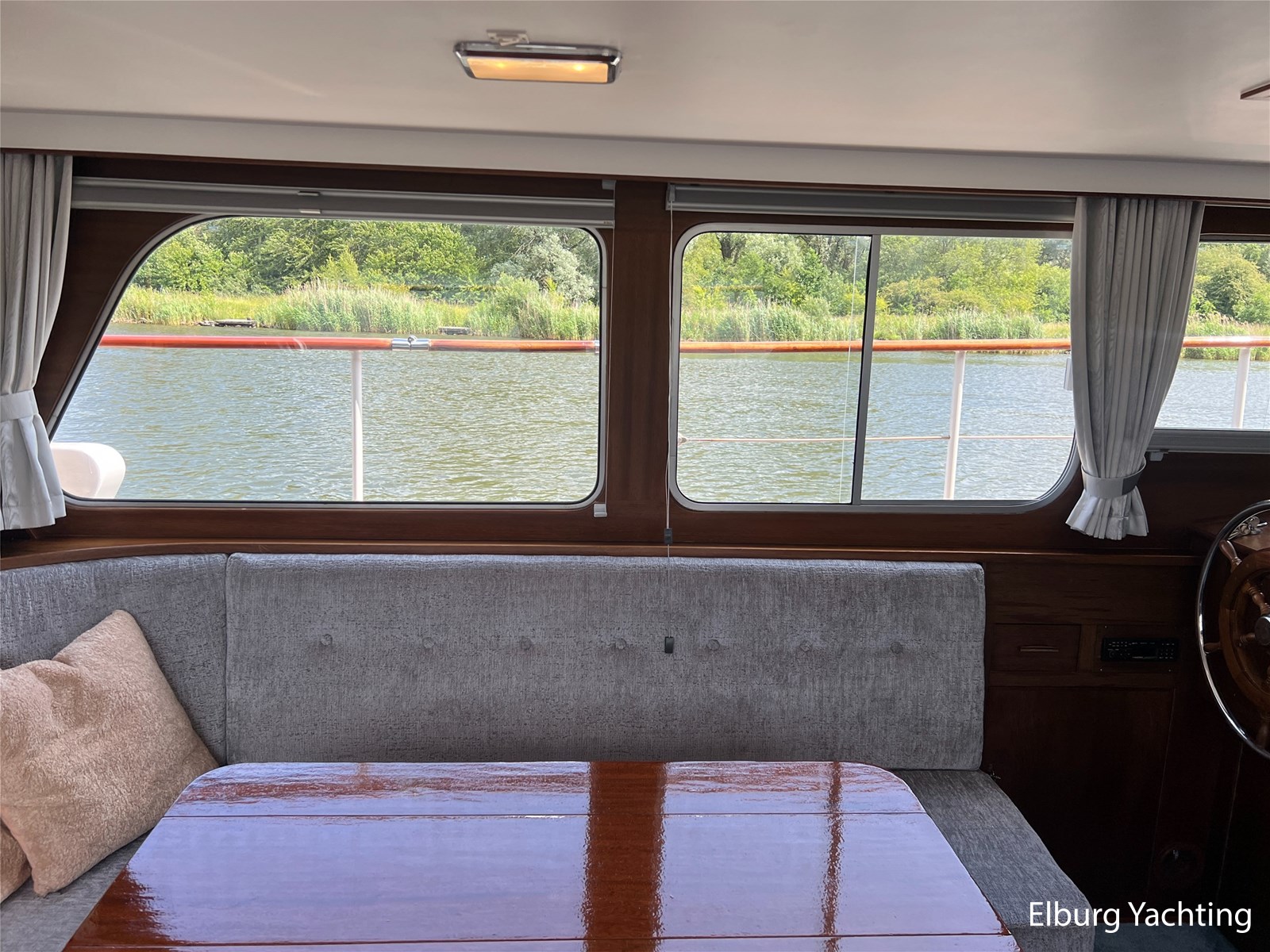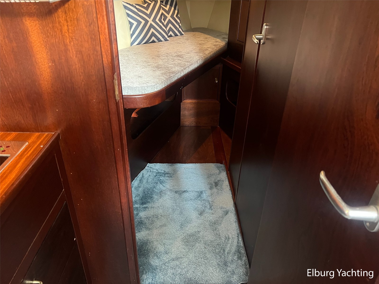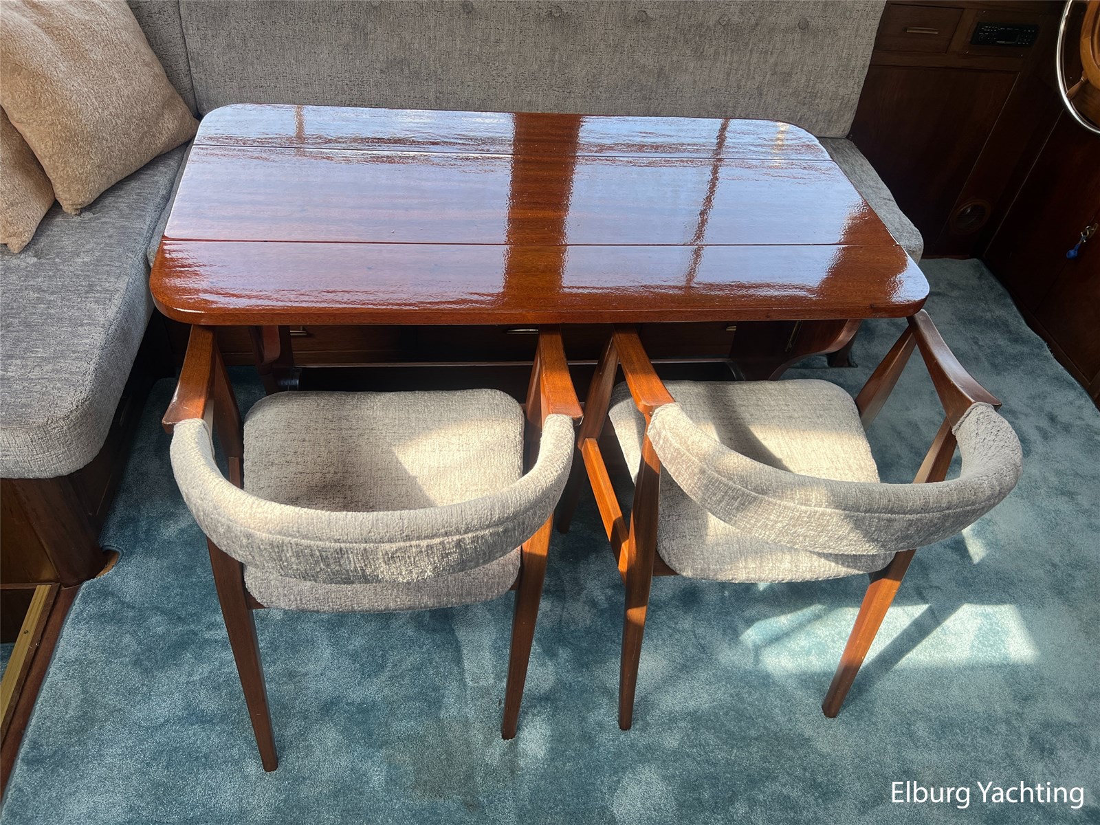 - Teak interieur met tapijt door het gehele schip