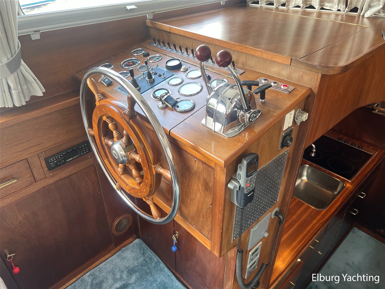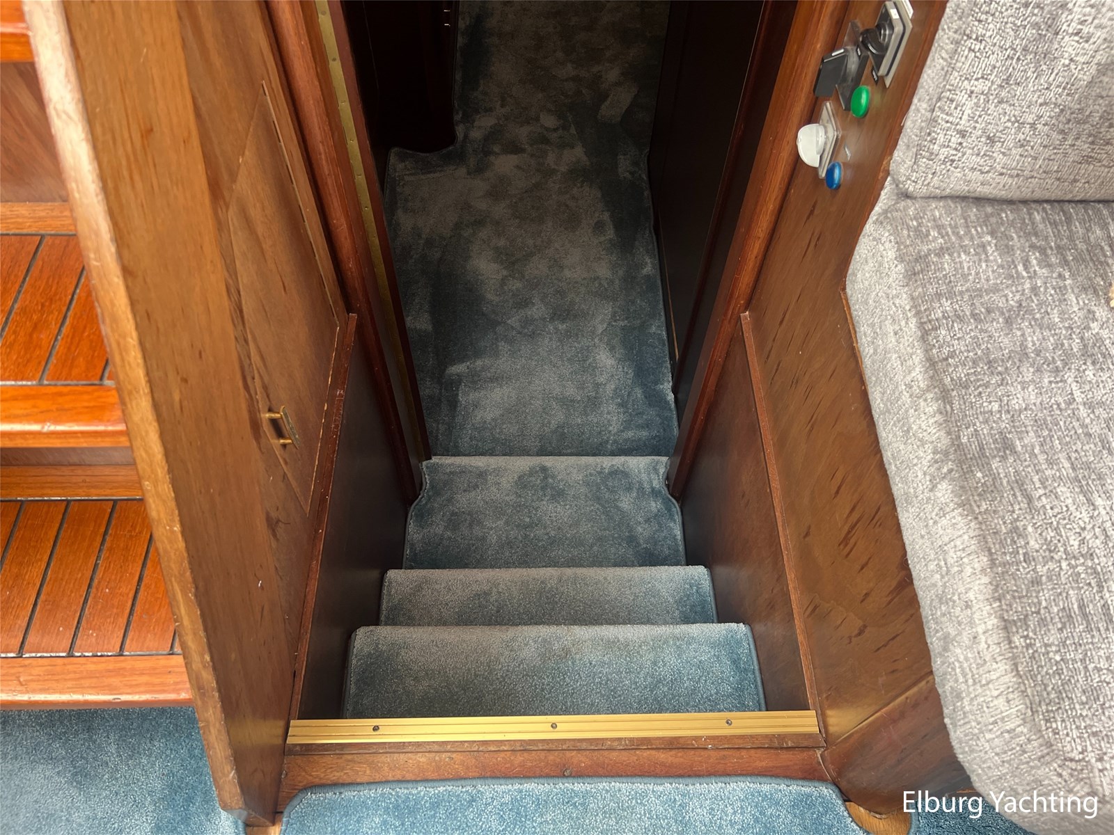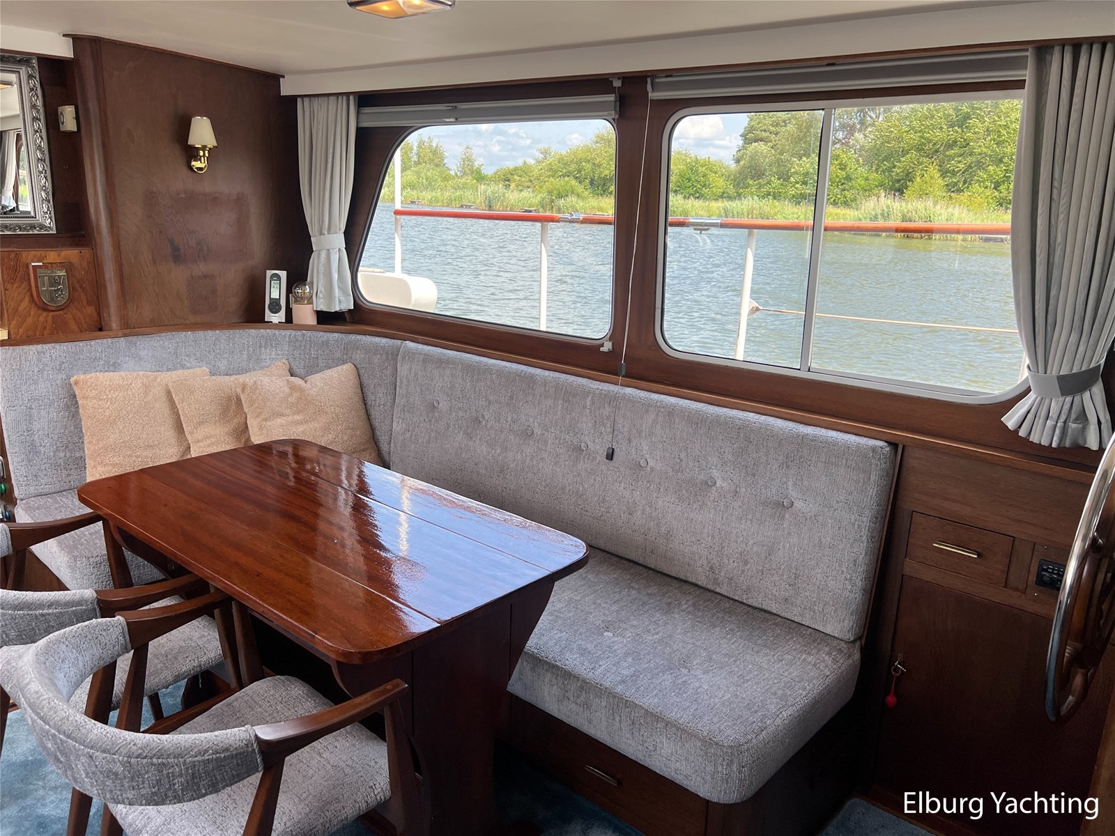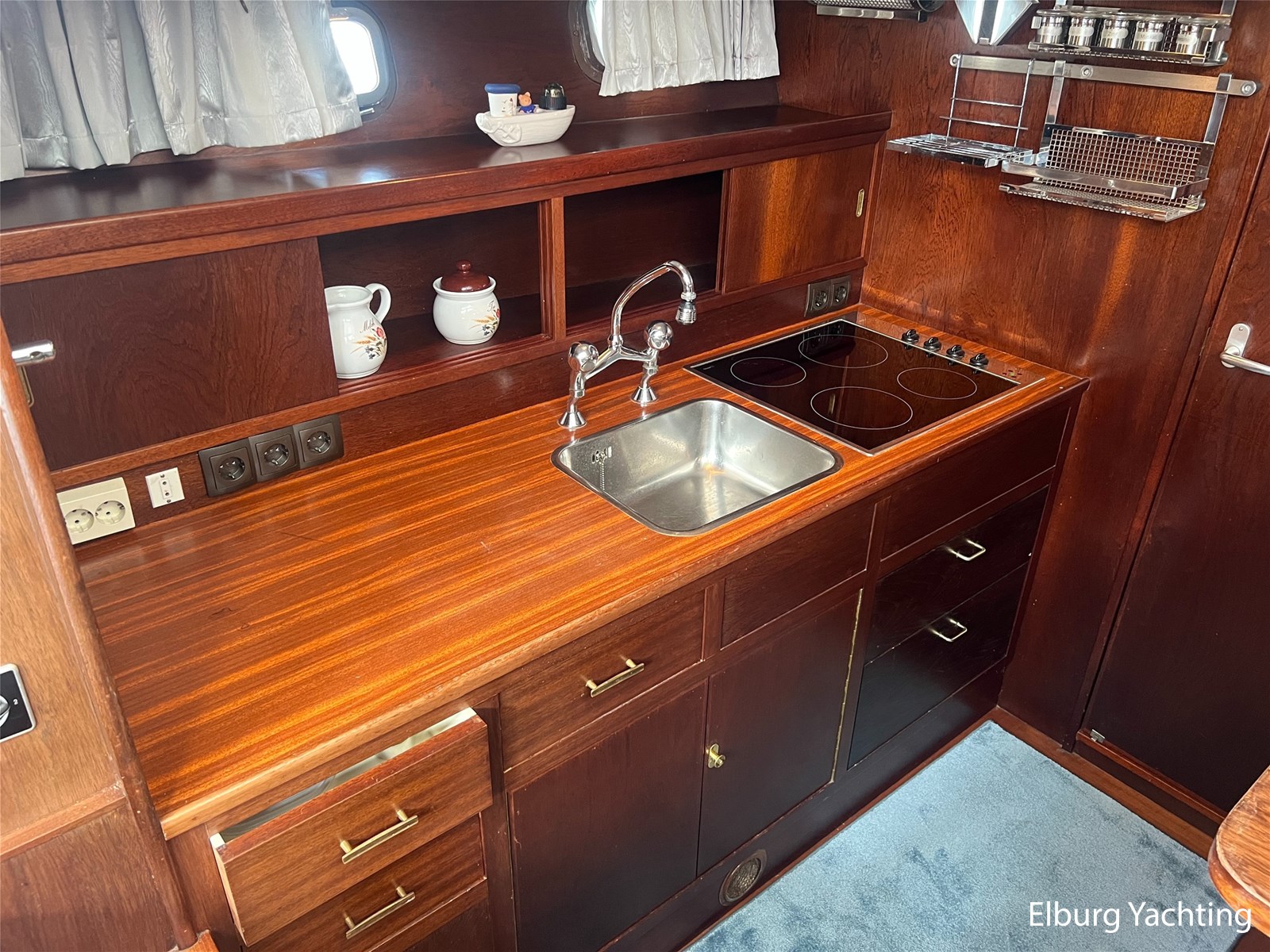 - Teak interieur met tapijt door het gehele schip