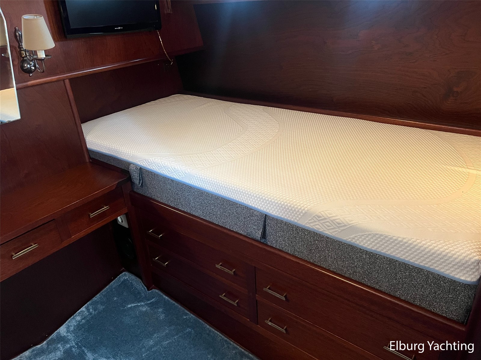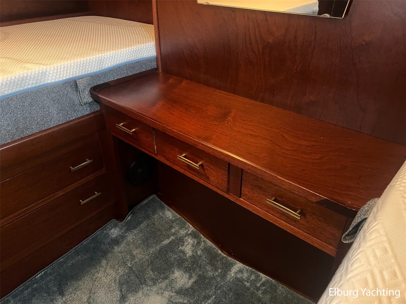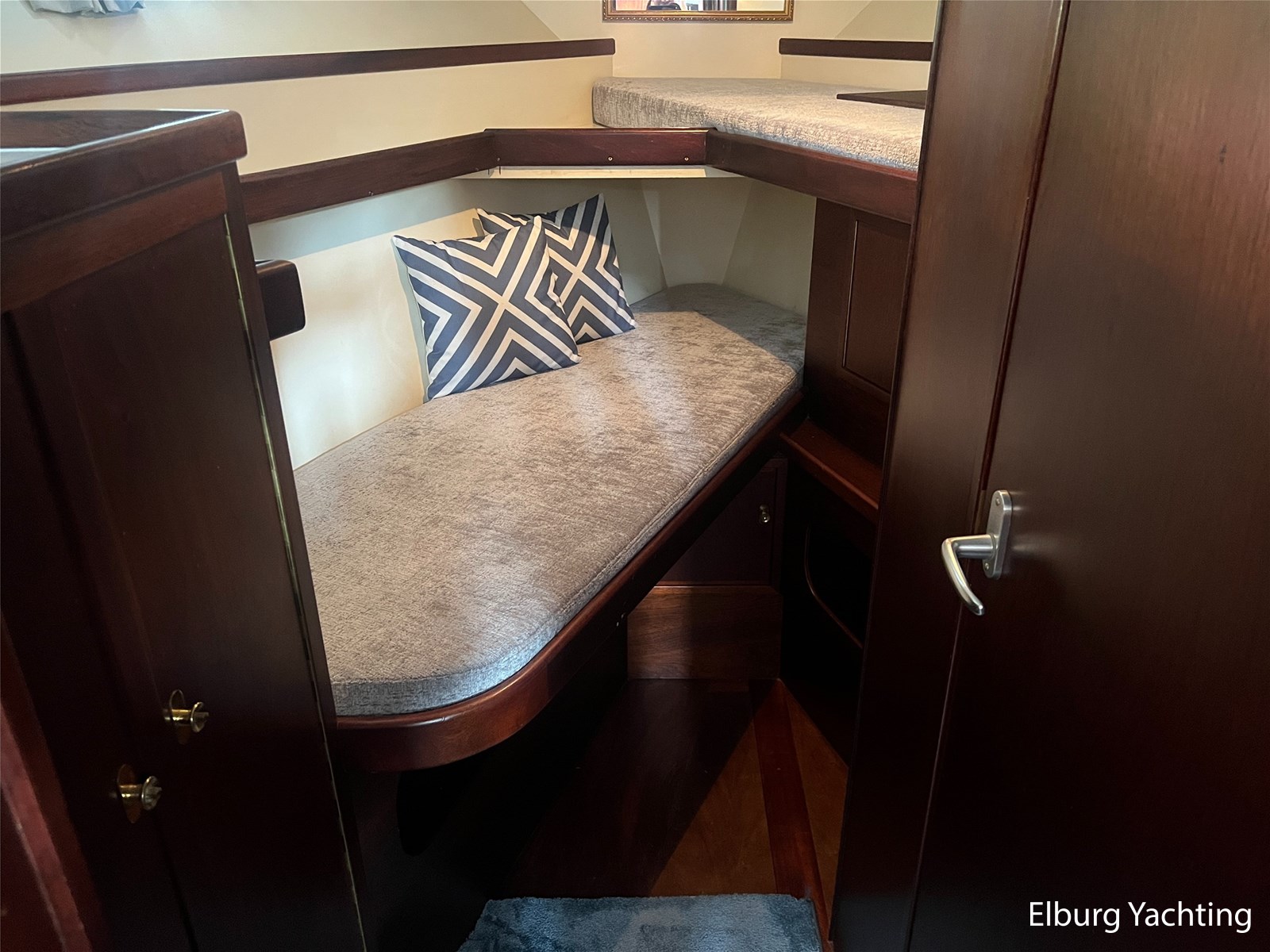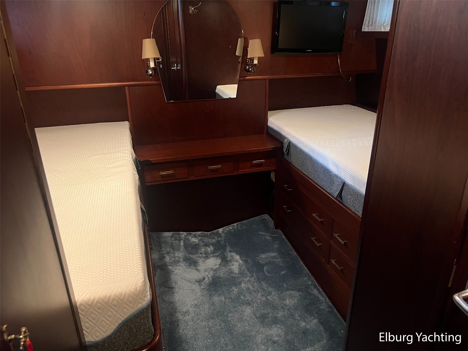 - Teak interieur met tapijt door het gehele schip