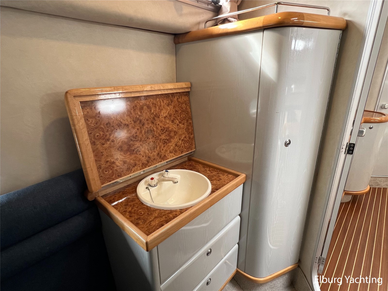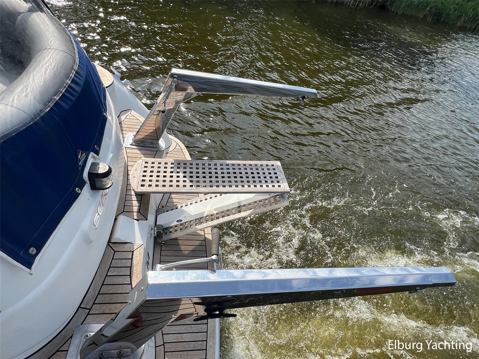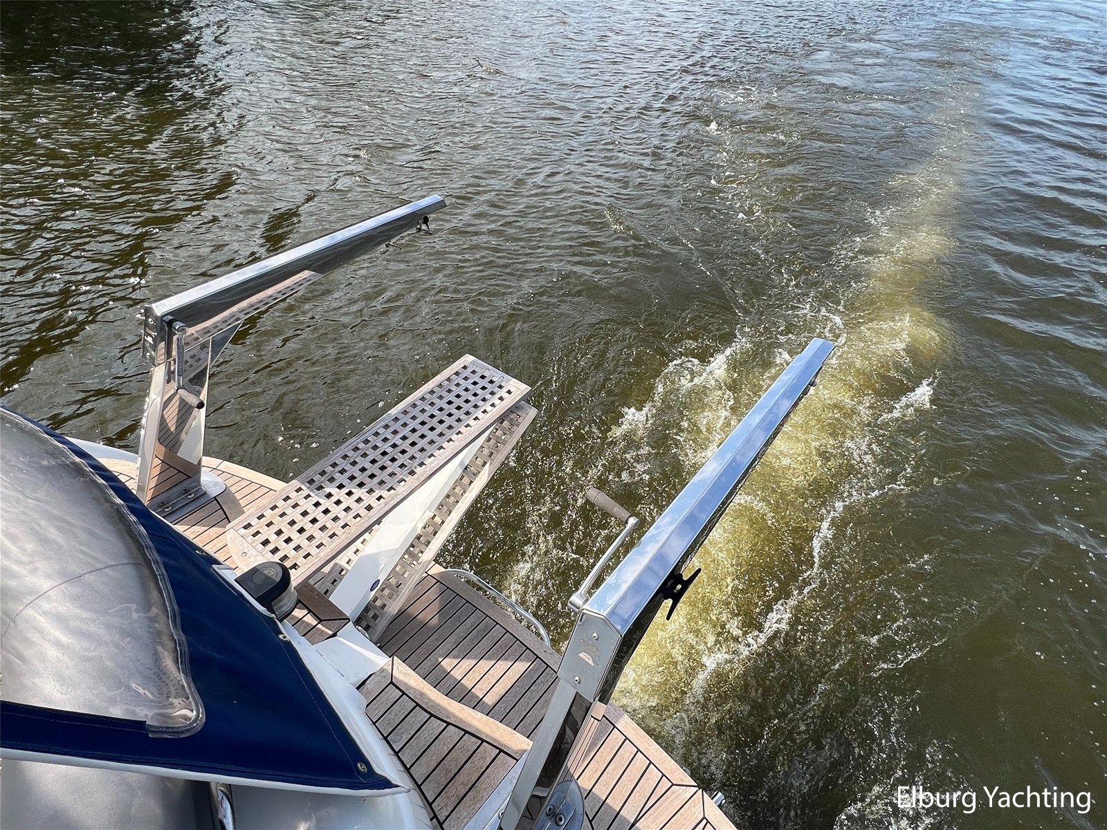 - Teak op het zwemplateau + kunststof dek in open kuip