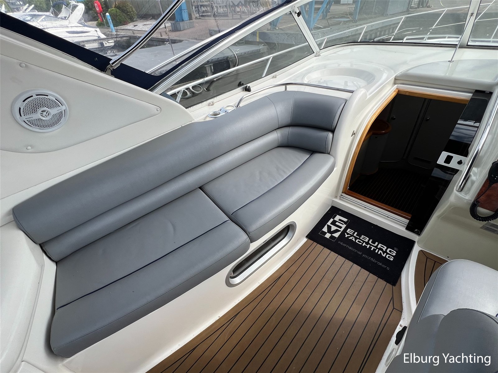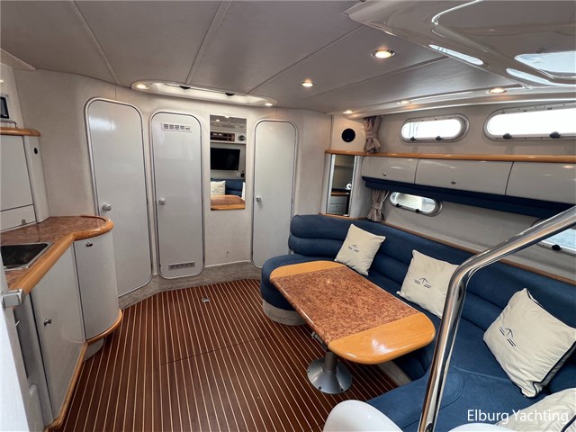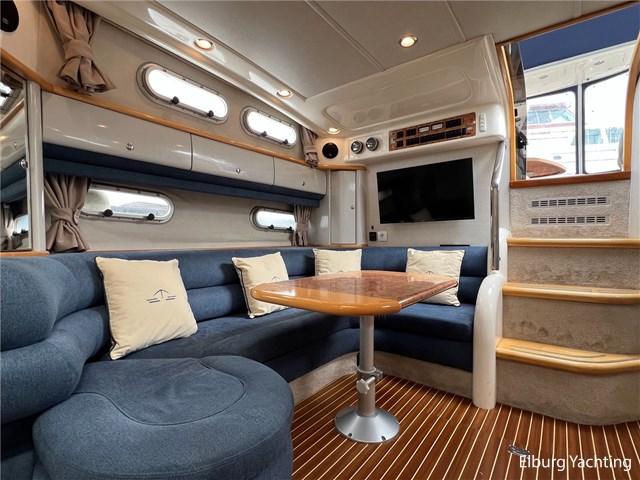Deze Sealine S37 van 1996 is een snelvarend motorjacht met een royale leefruimte op dekniveau en comfortabele salon benedendeks. In de open kuip is een U-vormige vaste bank gesitueerd met afneembare kussens. De kuiptafel is te verlagen zodat er een groot ligbed gecreëerd kan worden. Tegenover bevind zich een buitenkoelkast met spoelbak (warm/koud). De stuurstand heeft een 2-persoons vaarbank van waaruit het instrumentarium goed te overzien is. De volledige kuip is voorzien van onderhoudsarm kunststof teakdek. Het schip heeft een twee hutten indeling, de eigenaarshut in het voorschip is voorzien van een 2-persoons frans bed en een 2-persoons gastenhut midscheeps. In de afgelopen jaren is er veel geïnvesteerd in het schip in service en verbeteringen aan boord. De laatste vernieuwingen zijn in 2023 met o.a. vernieuwde teakvloer in salon, bekleding binnen + buiten, meerdere 230V WCD type F, vloerbedekking en gordijnen, kuiptent, onderhoud aan de motoren en Z-drives uitgevoerd. Deze Sealine S37 is uitgevoerd met: verlichting in open kuip, veel r.v.s. details aan dek, dubbele vaarstoel, volledige tent rondom open kuip met uitritsbare delen, lederen bekleding in kuip, zonnebed op het voordek, wetbar in kuip met koelkast en spoelbak, geïntegreerde bekerhouders, inklapbare tafel bij rondzit buiten zodat deze is om te bouwen tot zonnebed, TV in salon (2023), Sony radio (2023), inklapbare/afneembare gangway op het zwemplateau.
