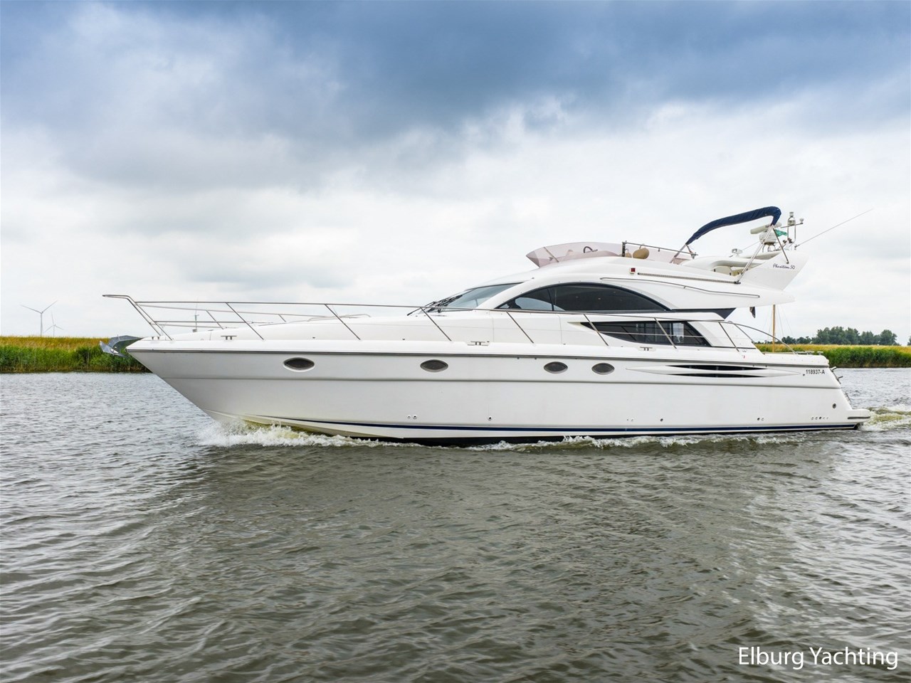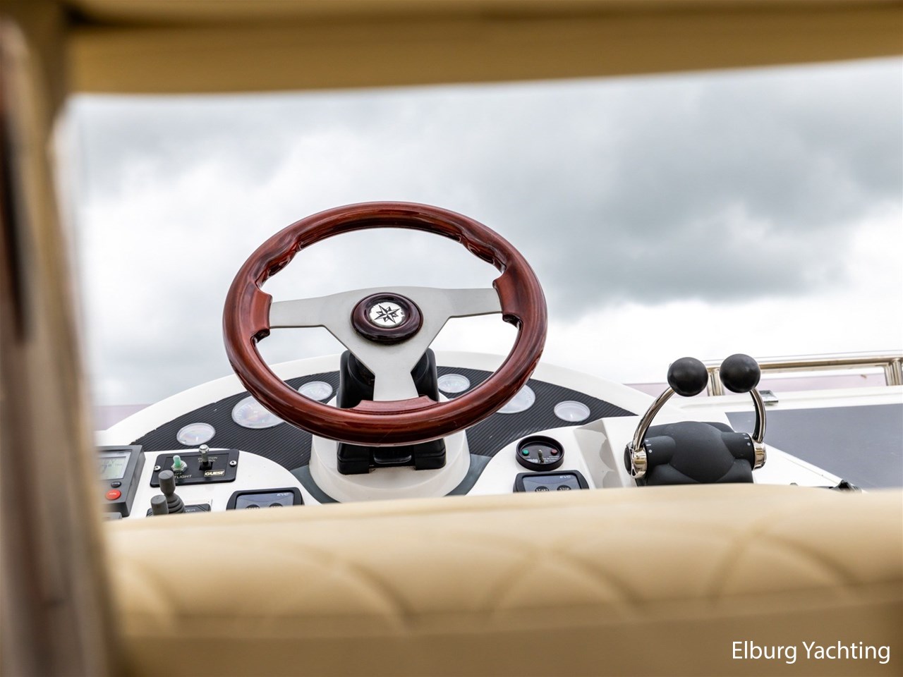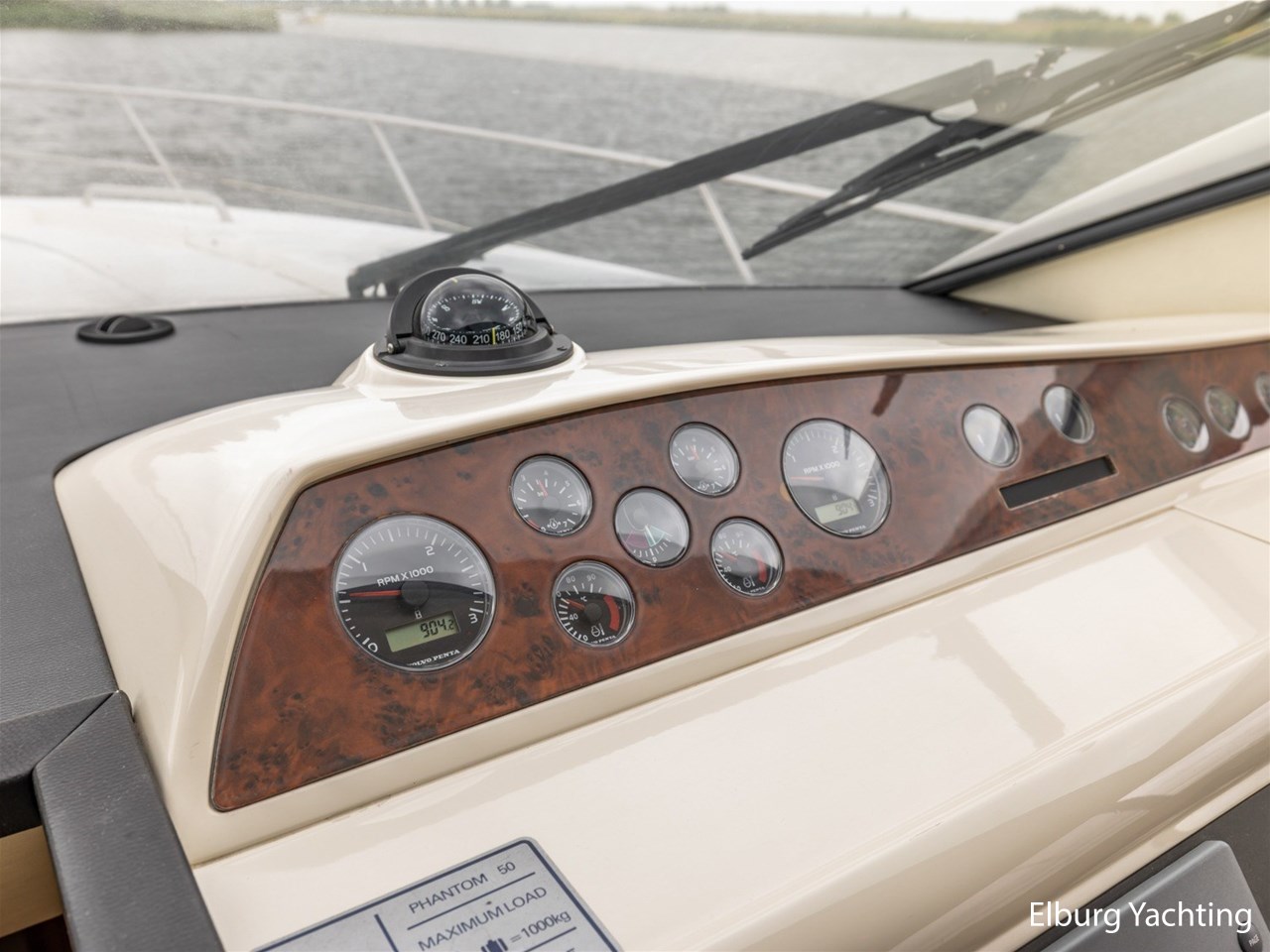 Verfijnd en elegant, de Fairline Phantom 50 biedt ultiem comfort gecombineerd met sportieve prestaties. Volgens haar ontwerper, Bernard Olesinski, de best varende romp ooit door hem getekend. Het schip biedt met drie volwaardige hutten een slaapplaats voor zes opvarenden, + 1 x crew cabin. Deze Fairline Phantom 50 is zeer compleet uitgerust met o.a.: Vaste zitbank in open kuip met bijbehorende kussens, stoffering buiten (kussens flybridge, kussens open kuip en zonnebed voorschip) vernieuwd 2023, nieuw matras eigenaarshut 2024, open kuip en salon gelijkvloers, r.v.s. schuifdeur naar salon, "luie" trap naar flybridge, U-vormige dinette op flybridge ook te gebruiken als zonnebed, 2 x vaarstoel bij binnen stuurstand en op flybridge, biminitop, buitenverlichting (blauw), 2 x TV (streaming via SIM met databundel) Zanussi wasmachine, toegang machinekamer vanuit de open kuip met ruime berging, keuken op hoogte in salon, horren voor patrijspoorten, crewcabin met eigen entree via open kuip, trim tabs, ligkussens op voordek, zonneschermen rondom salonramen, volledige afsluitbare kuiptent (2023) rondom open kuip, afdekhoezen voor banken op flybridge (2024) + volledig afdekzeil, nieuwe vuilwaterslangen 2023, dekverlichting, zonnezeilen 2023, elektrische schuiframen bb en sb, r.v.s. buiten reling rondom. 2 x dieseltanks gereinigd in 2022, gehele onderwaterschip kaalgehaald en opgebouwd met een epoxysysteem, groot motoronderhoud (motoren en generator) uitgevoerd in 2024, LED verlichting. Dit jacht is per direct beschikbaar en kan worden bezichtigd in Elburg. Voor vragen en/of het maken van een afspraak bent u 7 dagen per weekvan harte welkom bij Elburg Yachting.