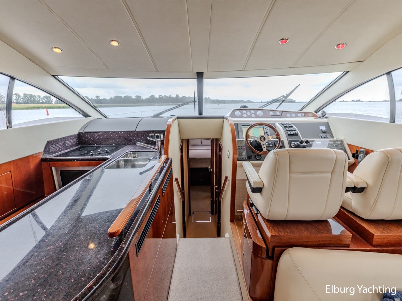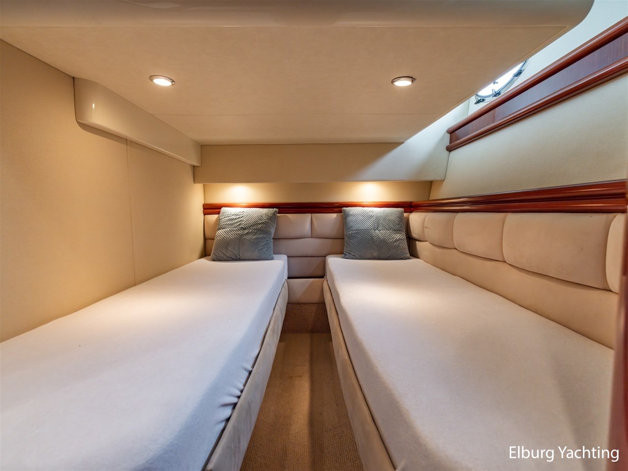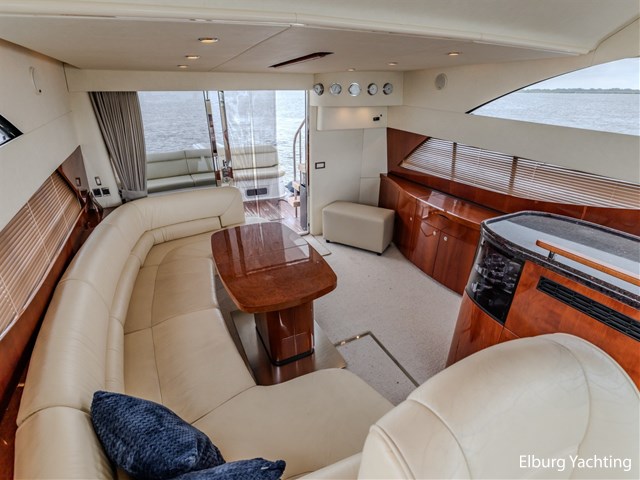 Verfijnd en elegant, de Fairline Phantom 50 biedt ultiem comfort gecombineerd met sportieve prestaties. Volgens haar ontwerper, Bernard Olesinski, de best varende romp ooit door hem getekend. Het schip biedt met drie volwaardige hutten een slaapplaats voor zes opvarenden, + 1 x crew cabin. Deze Fairline Phantom 50 is zeer compleet uitgerust met o.a.: Vaste zitbank in open kuip met bijbehorende kussens, stoffering buiten (kussens flybridge, kussens open kuip en zonnebed voorschip) vernieuwd 2023, nieuw matras eigenaarshut 2024, open kuip en salon gelijkvloers, r.v.s. schuifdeur naar salon, "luie" trap naar flybridge, U-vormige dinette op flybridge ook te gebruiken als zonnebed, 2 x vaarstoel bij binnen stuurstand en op flybridge, biminitop, buitenverlichting (blauw), 2 x TV (streaming via SIM met databundel) Zanussi wasmachine, toegang machinekamer vanuit de open kuip met ruime berging, keuken op hoogte in salon, horren voor patrijspoorten, crewcabin met eigen entree via open kuip, trim tabs, ligkussens op voordek, zonneschermen rondom salonramen, volledige afsluitbare kuiptent (2023) rondom open kuip, afdekhoezen voor banken op flybridge (2024) + volledig afdekzeil, nieuwe vuilwaterslangen 2023, dekverlichting, zonnezeilen 2023, elektrische schuiframen bb en sb, r.v.s. buiten reling rondom. 2 x dieseltanks gereinigd in 2022, gehele onderwaterschip kaalgehaald en opgebouwd met een epoxysysteem, groot motoronderhoud (motoren en generator) uitgevoerd in 2024, LED verlichting. Dit jacht is per direct beschikbaar en kan worden bezichtigd in Elburg. Voor vragen en/of het maken van een afspraak bent u 7 dagen per weekvan harte welkom bij Elburg Yachting.