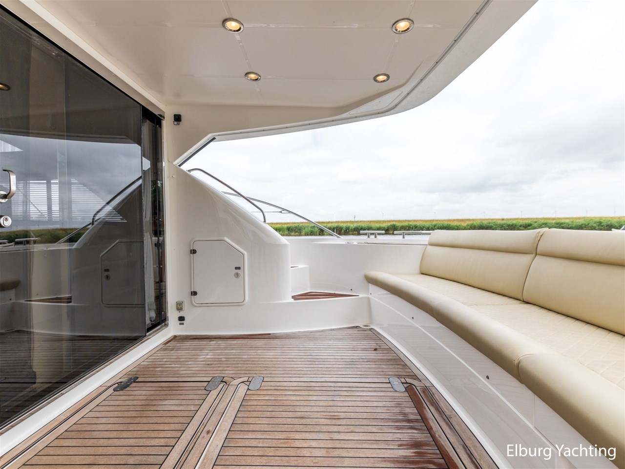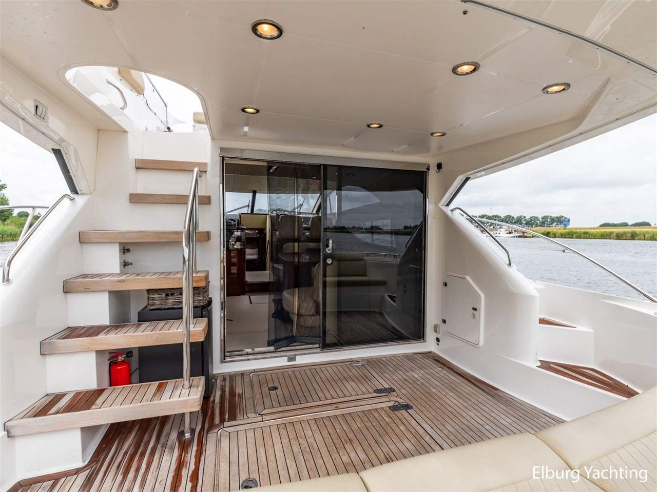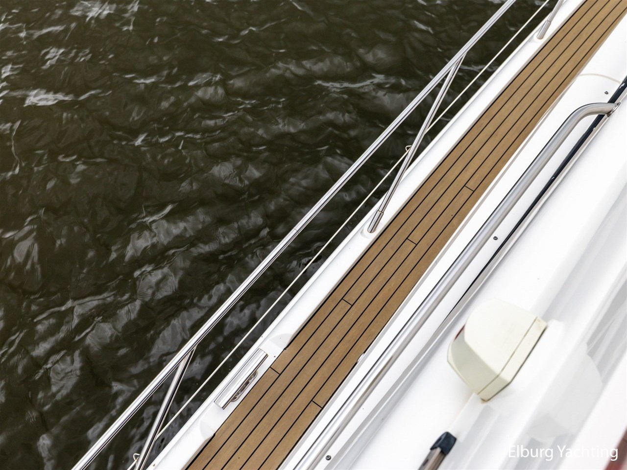 Volledig teak in open kuip en op flybridge + kunststof teak in gangboorden