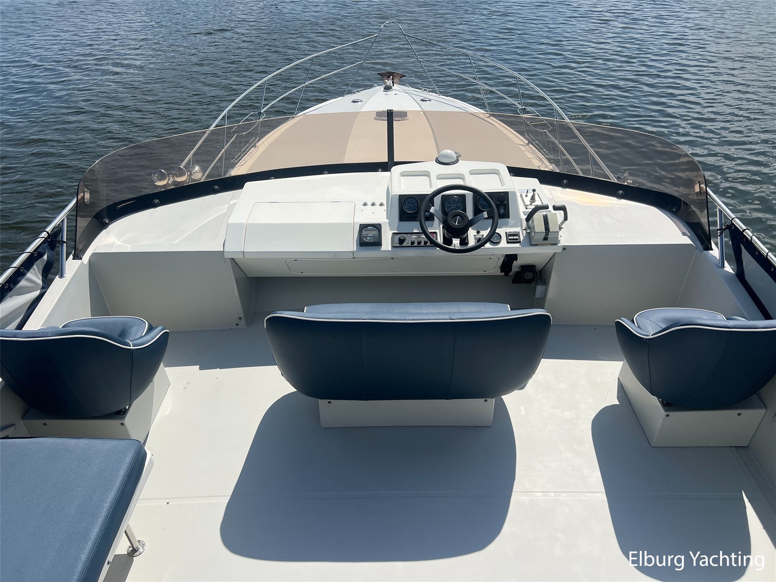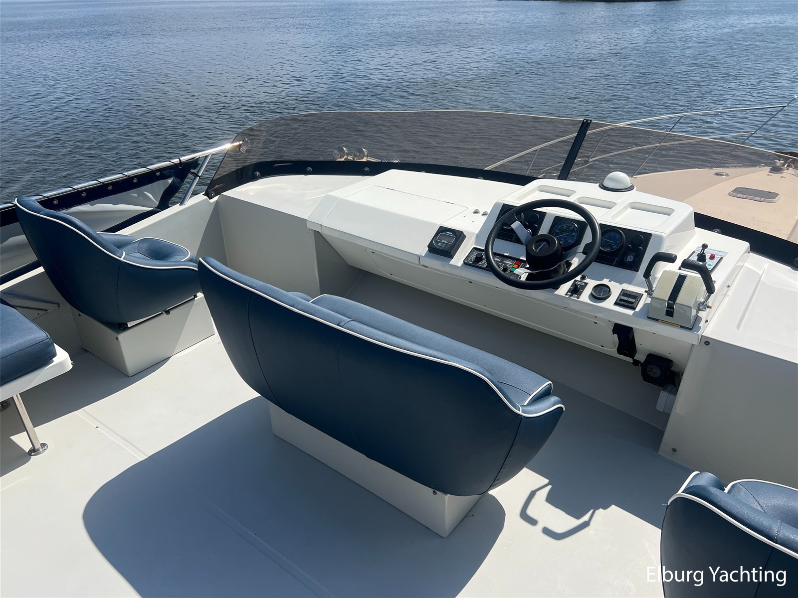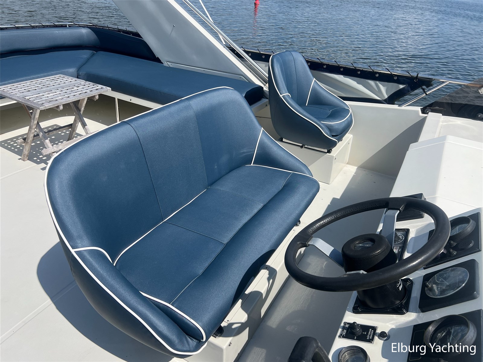 Deze zeer ruime en nette Fairline 50 beschikt over 3 hutten plus een crew cabin. De kuip over de gehele breedte biedt plaats aan een grote groep mensen, via de schuifdeur komt u in de salon met twee banken tegenover elkaar. Het schip is vaarklaar voor het huidige seizoen. Verder beschikt het schip over o.a: binnen en buiten sturen, Nederlands geleverd schip met slechts Nederlandse eigenaren tot nu toe , grote flybridge, doorvaarthoogte ca. 5,10 m, 2 x Volvo Penta TAMD 71A met vaste schroeven, stuurpomp vervangen 2022, verwarming vervangen 2022, Separ filters 2024, plotter 2022, stoffering in kuip en op flybridge vernieuwd 2022, groot motoronderhoud 2025, salon en open kuip gelijkvloers, sportieve boot met groot vaargebied, nieuwe wandbekleding + deels nieuwe dakbekleding in interieur, motoren hebben laatste jaren elk jaar hun service gehad, ruime salon met zitbanken tegenover elkaar. Voor vragen en/of het maken van een afspraak bent u 7 dagen per week van harte welkom bij Elburg Yachting