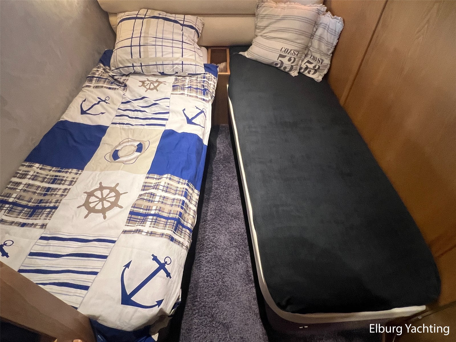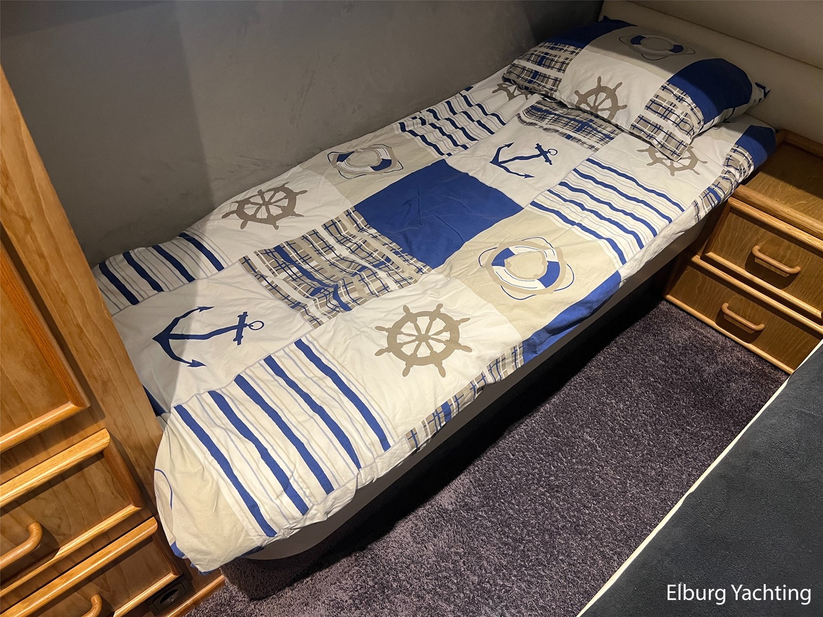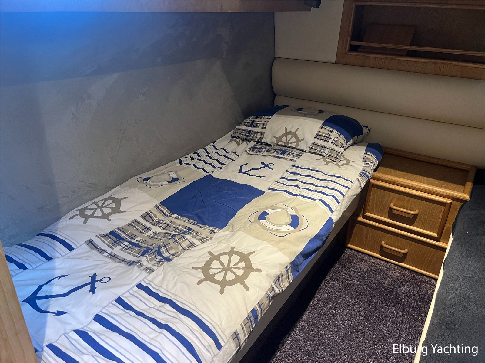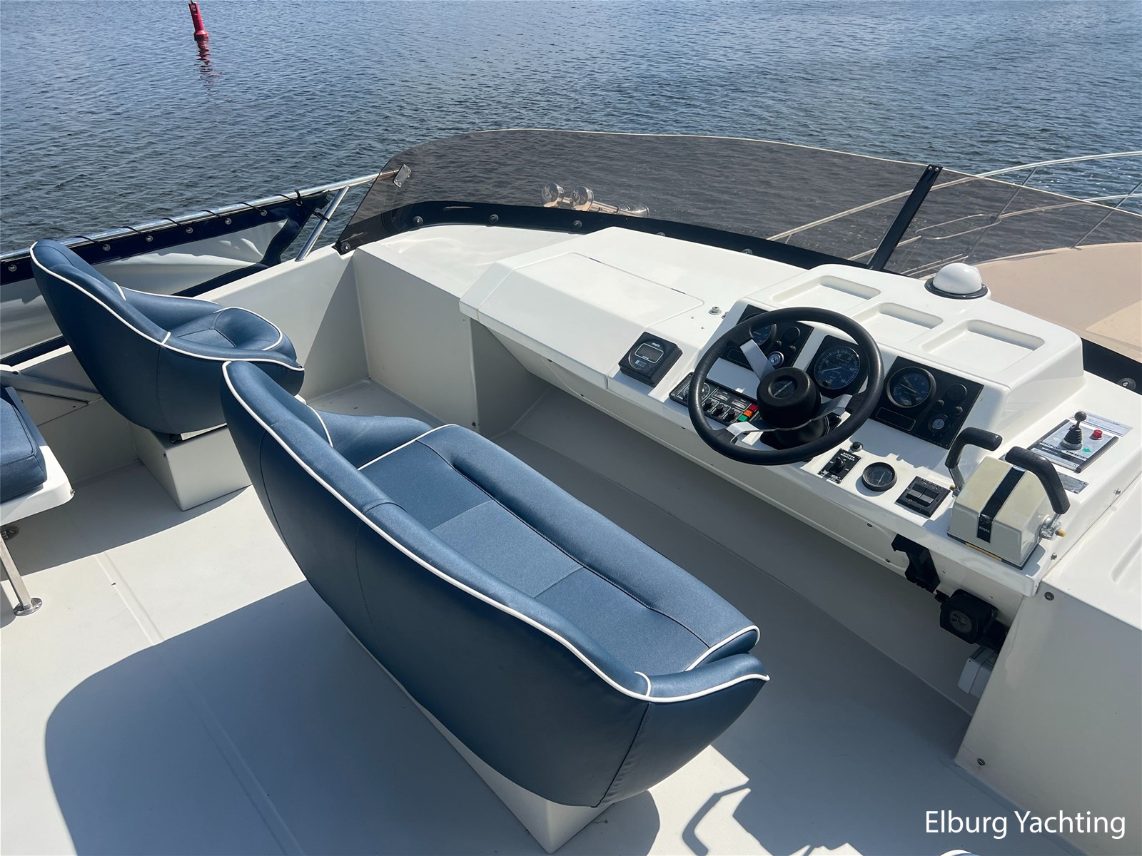 Deze zeer ruime en nette Fairline 50 beschikt over 3 hutten plus een crew cabin. De kuip over de gehele breedte biedt plaats aan een grote groep mensen, via de schuifdeur komt u in de salon met twee banken tegenover elkaar. Het schip is vaarklaar voor het huidige seizoen. Verder beschikt het schip over o.a: binnen en buiten sturen, Nederlands geleverd schip met slechts Nederlandse eigenaren tot nu toe , grote flybridge, doorvaarthoogte ca. 5,10 m, 2 x Volvo Penta TAMD 71A met vaste schroeven, stuurpomp vervangen 2022, verwarming vervangen 2022, Separ filters 2024, plotter 2022, stoffering in kuip en op flybridge vernieuwd 2022, groot motoronderhoud 2025, salon en open kuip gelijkvloers, sportieve boot met groot vaargebied, nieuwe wandbekleding + deels nieuwe dakbekleding in interieur, motoren hebben laatste jaren elk jaar hun service gehad, ruime salon met zitbanken tegenover elkaar. Voor vragen en/of het maken van een afspraak bent u 7 dagen per week van harte welkom bij Elburg Yachting