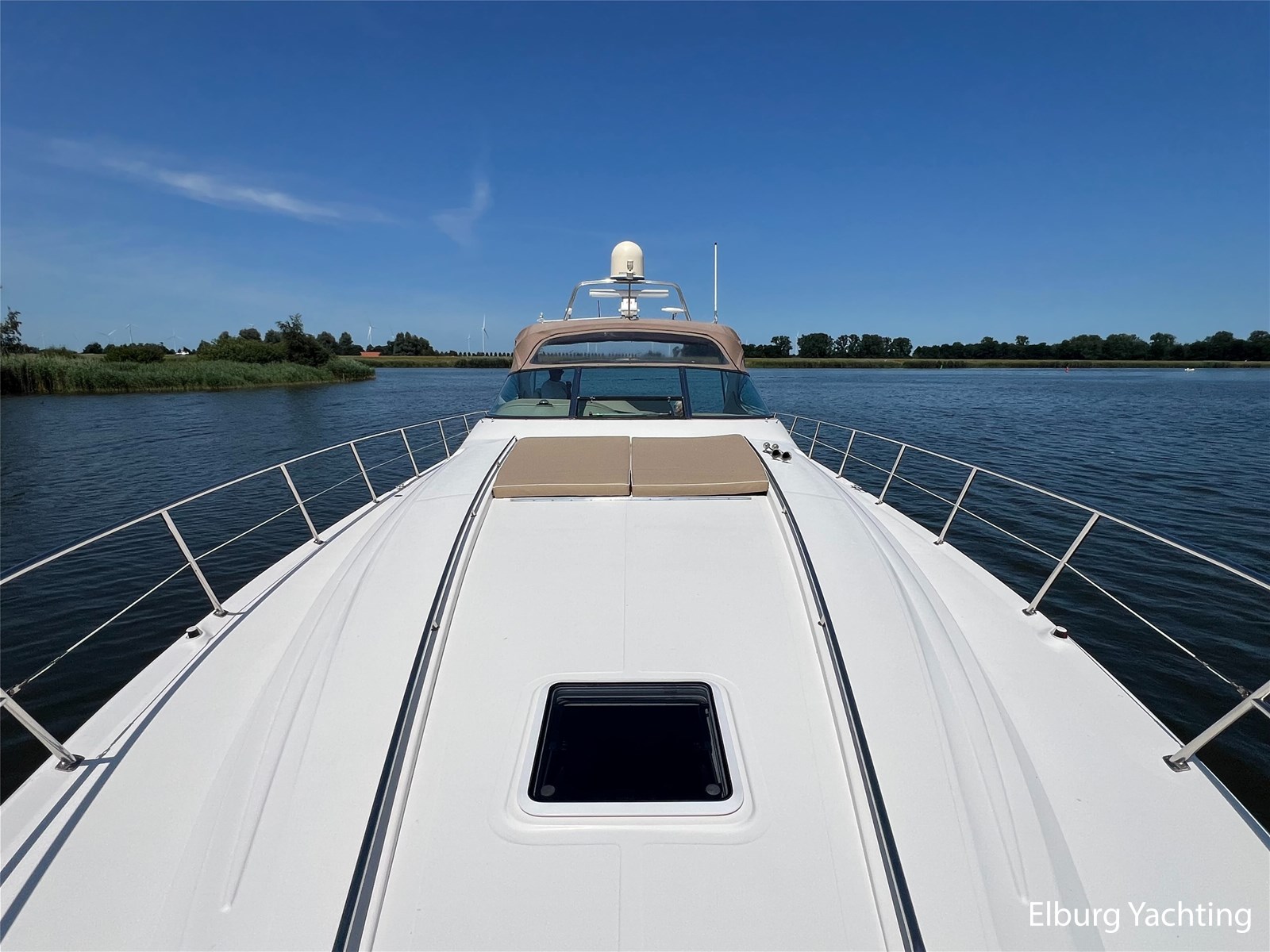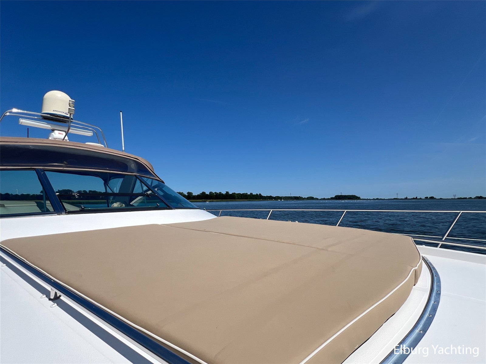 Deze Sea Ray 540 DA is oorspronkelijk ontworpen en gebouwd voor de Europese markt. De ruimte in de open kuip is zowel vanaf de oppervlakte als de hoogte indrukwekkend. Via het hydraulisch zwemplatform stap je in de ruime open kuip waar een ook grote groep mensen comfortabel kan zitten. De wetbar biedt een koelkast met spoelbak. De verhoogde stuurstand biedt plaats voor de kapitein en twee opvarenden. De stuurstand biedt hoog en goed zicht rondom. Benedendeks is er een zeer ruimte salon met aangesloten kombuis gesitueerd. Midscheeps bevindt zich de eigenaarshut met een vrij omloopbaar 2-persoons bed inclusief eigen sanitair en-suite. In het voorschip bevindt zich de gastenhut met eveneens een 2-persoons bed. De tweede badkamer in het voorschip kan ook door daggasten worden gebruikt. Deze Sea Ray 540 is uitgerust met: volledige tent over de open kuip, de kuip is afsluitbaar met een deur naar het zwemplatform, losse tafel, groot zonnebed op voordek, r.v.s. fenderhouders, wasmachine in voorhut, machinekamer toegankelijk vanuit open kuip. Volledige kuipten en bekleding van de banken in de kuip vernieuwd in 2022.