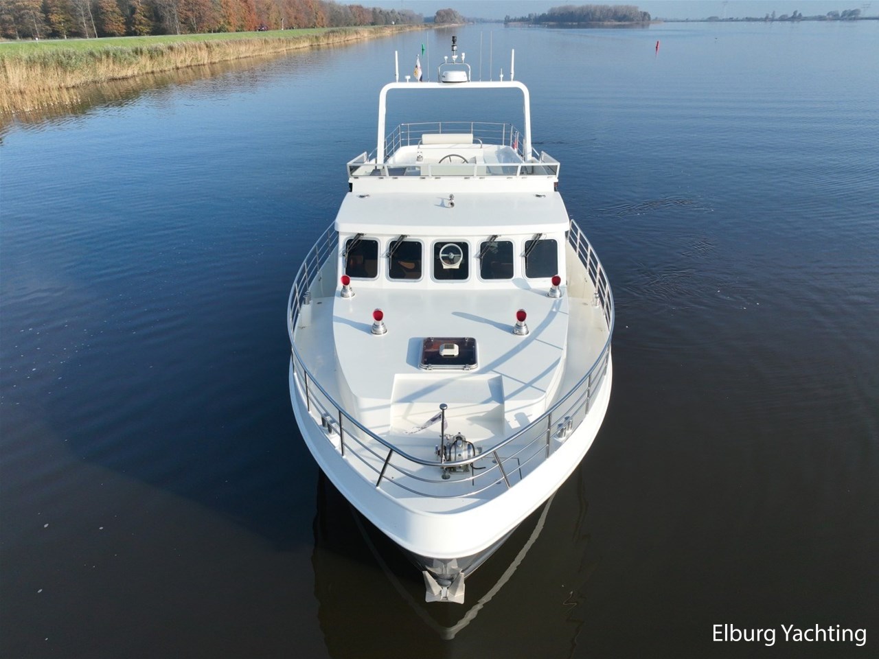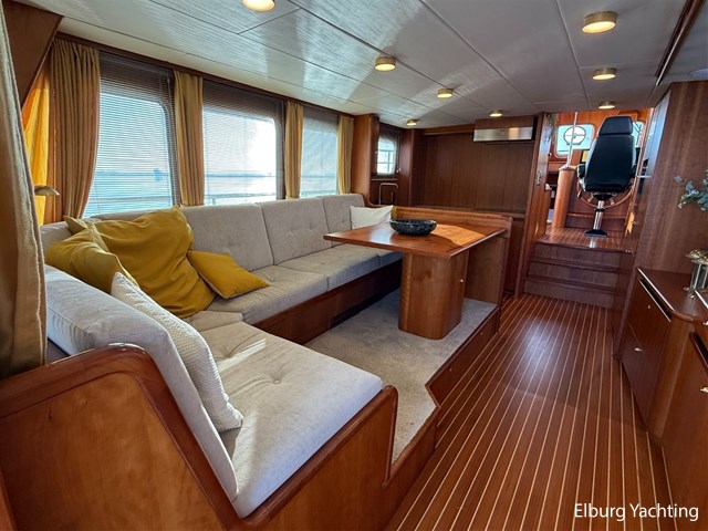Het jacht kenmerkt zich door het robuuste ‘Trawler’ uiterlijk dat tot haar eveneens tot een breed inzetbaar jacht maakt. De dubbele John Deere motoren in combinatie met de DMS stabilisatoren zorgen voor een fijne vaarbeleving ook op de grotere watern. De doorvaarthoogte met de mast én de ramen op de flybridge naar beneden is ca. 3.45 meter waardoor de Franse kanalen bevaren kunnen worden.