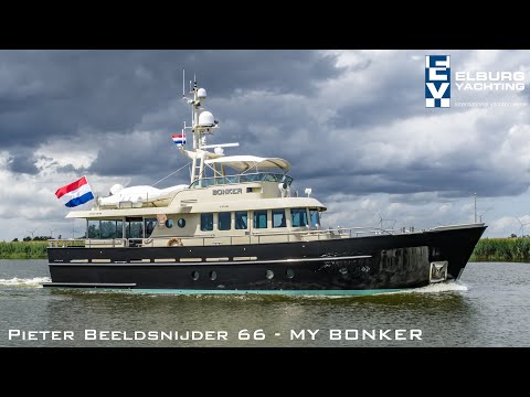 De Pieter Beeldsnijder 66 - MY BONKER is zonder crew te kunnen varen ( maar met crew ook mogelijk gezien extra ruimte in achterschip voor aanpassing crew cabin), professionele en bedrijfsmatige technische installatie, rolstoel vriendelijk d.m.v. o.a. geen drempels, gelijkvloers niveau, schuifdeuren, brede gangboorden, 2 x traplift platform naar boven en onderdek (design weggewerkt), Windfree Open Air Dinette - de 5 achter zakramen (veiligheidsglas) kunnen individueel (of allemaal gelijktijdig) geopend en gesloten worden waardoor de binnen achter dinette een Open Air dinette is geworden, hydraulische kaapstanders, vaar camera's, groot bergluik in achterdek (2 x 1 meter), dim verlichting door gehele boot, SAFARM detectie en alarm systeem, Miele was/droogmachine, Siemens vaatwasser, binnentrap naar bovendek, 4 x schuifzijdeur, bimini top voor dinette bovendek en dinette voordek, buitenentree machinekamer + stahoogte in machinekamer, muggenblinds voor de ramen, kasten betimmerd met Cedarhout, aluminium hydraulisch klapbare mast, 360 graden Flir nacht camera op de mast, Novamarine NE 45 Sporttender op bovendek (met eigen walaansluiting). De Pieter Beeldsnijder 66 - MY BONKER heeft een goed en vrijwel 360 graden uitzicht vanaf stuurstand, complete en uitgebreide documentatie aanwezig, gebouwd conform hoogwaardige scheepsbouwnormen en afkomstig van een gerenommeerde scheepswerf, uniek jacht welke in zijn concept en gehele uitwerking een bijzondere "status aparte" heeft, onevenaarbaar is en een eer om mee te mogen varen!