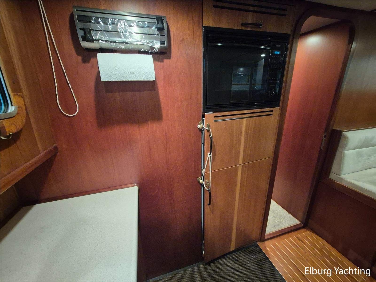 De tafel in de dinette kan zakken en met op maat gemaakte kussens omgebouwd worden naar een dubbel bed, af te schermen met een gordijn. Vrij uitzicht vanuit de dinette en kombuis naar buiten, geisoleerde vloeren, dubbele stootranden (en daardoor schuren er geen fenders tegen de scheepshuid) dubbel filtersysteem voor diesel en koelwater, koelwater aanzuig omschakelbaar.