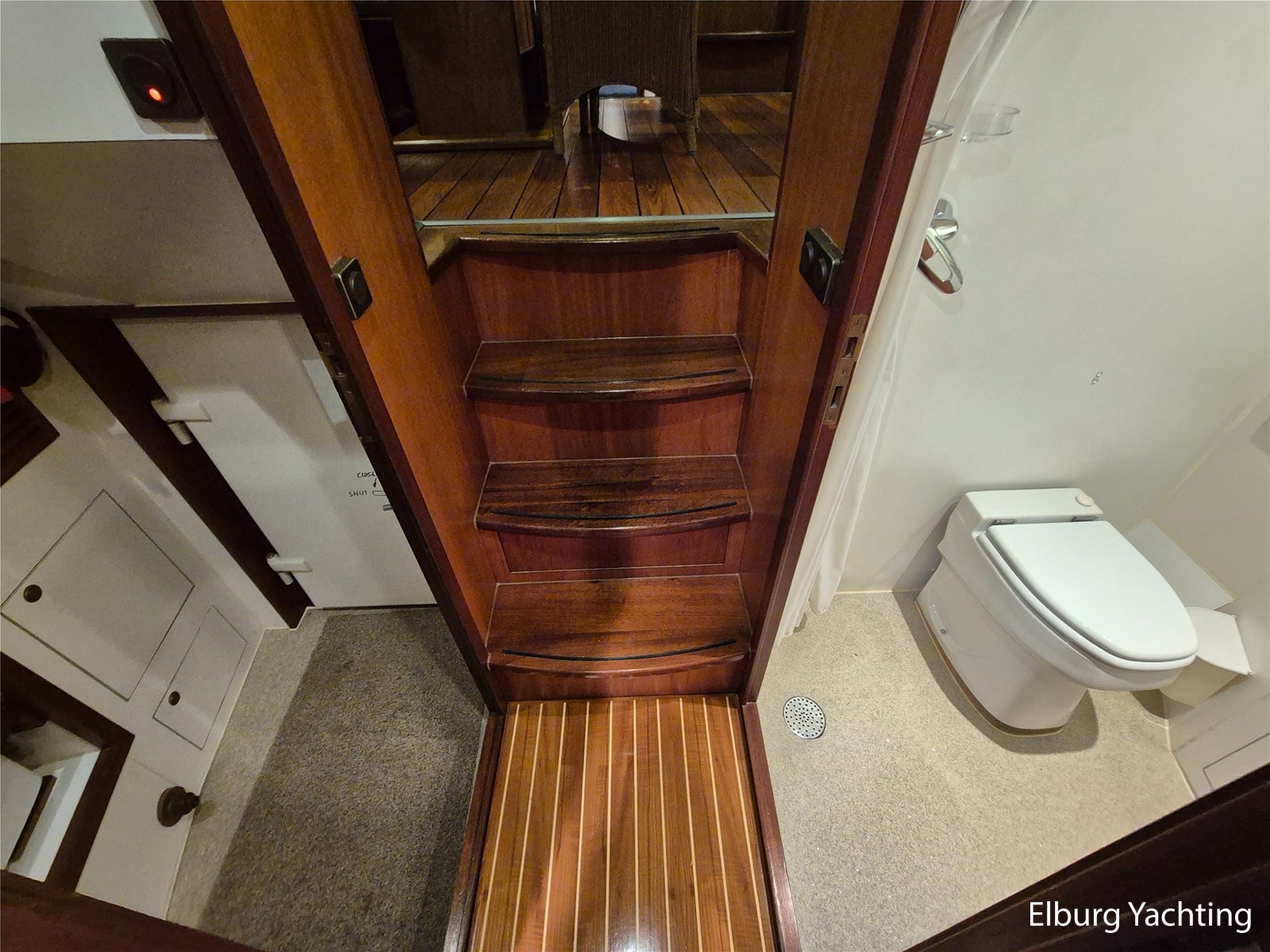 - Belegd met teak + klapbare zwemtrap