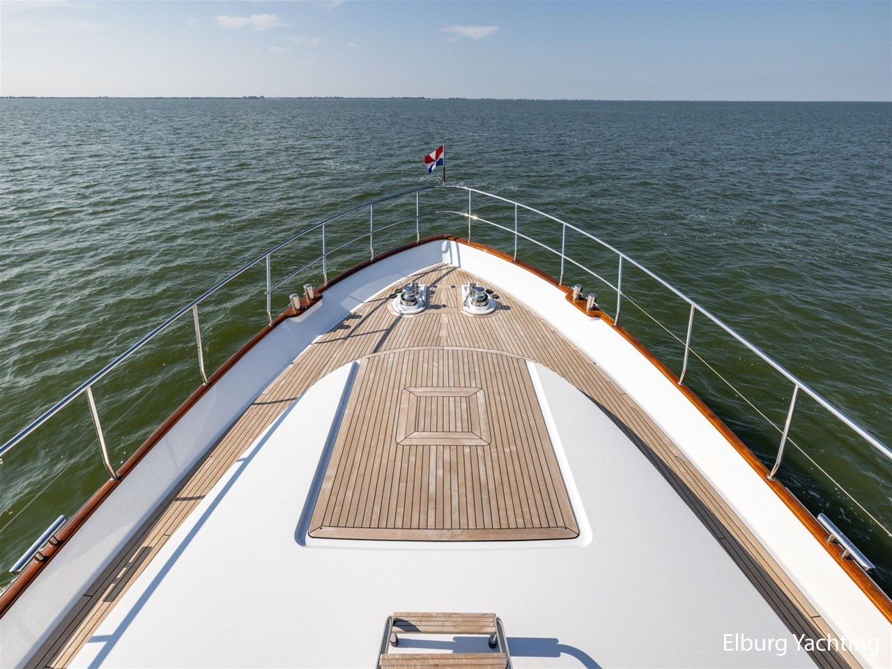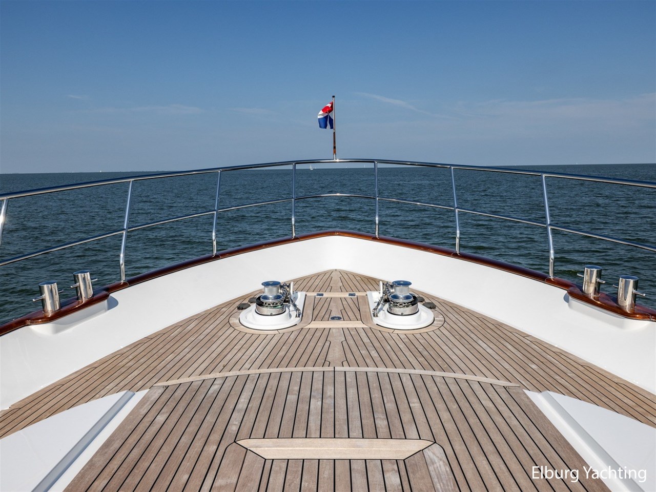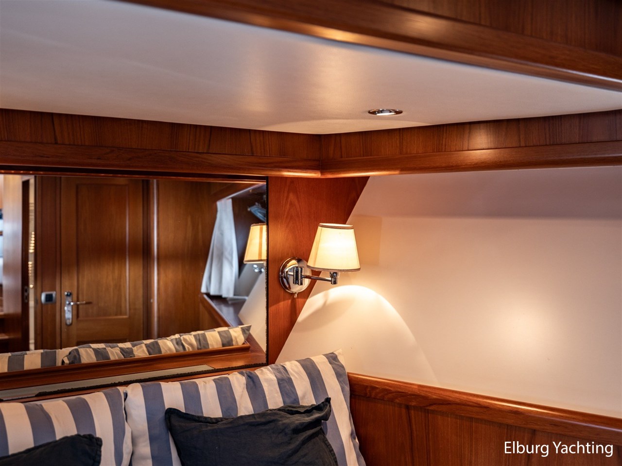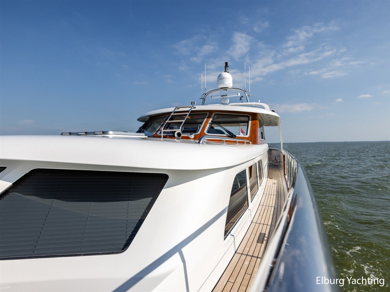 De Mulder 70 Wheelhouse is een ruim en comfortabel gebouwd motorjacht welke is gebouwd door de topindustrie van de Nederlandse jachtbouw. Elegant en klassiek/modern gelijnd jacht met een zeer hoogwaardig afwerkingsniveau. Mulder 70 Wheelhouse is uitermate geschikt voor lange tochten voor binnen- en buitenwateren. Het jacht is in 2022-2023 gerefit waarbij de volgende werkzaamheden zijn uitgevoerd: Romp gespoten in Awlgrip moonglow silver metallic, opbouw geschilderd in Awlgrip, navigatie apparatuur vernieuwd voor het merk Simrad, Victron omvormer acculader vernieuwd, nieuwe accuset, dashboard volledig opnieuw ingericht, garage van binnen geschilderd, elektrisch bedienbare plissé gordijnen in stuurhuis, houten jaloezieën in salon geplaatst, teakdek deels gerubberd en geschuurd, 2 x r.v.s. ankers + kettingen geplaatst, Hydronautica motorbediening en afstandsbediening, nieuwe zonnescherm over achterdek met wegneembare carbon palen, nieuwe Neptune matras, lakwerk interieur. Verder is deze Mulder 70 Wheelhouse voorzien van: Geïntegreerde kuipbank op het achterdek met bijbehorende kussens en afdekhoes, gelakte teaktafel met afdekhoes, 4 x klapbare deuren naar stuurhuis, ruime garage in achterschip voor bijboot (niet inbegrepen) en materialen/gereedschappen, afneembare zijtrap, Opacmare gangway, dekwaspomp, 5-blads schroeven, groot schuifdak in stuurhuis, TV in salon/stuurhuis/hutten, Böse audio installatie, Siemens vaatwasser, groot bergluik in keuken voor opslag voorraad en locatie van de vriezer, muggenhorren en r.v.s. blinds voor patrijspoorten, Utility room aan SB-zijde in achterschip met Miele wasmachine en Miele droger tevens doorgang naar machinekamer, afneembare zonneschermen rondom stuurhuis, kussens op voordek ten behoeve van zonnebed. Motoronderhoud uitgevoerd in 2023 door PON Caterpillar.