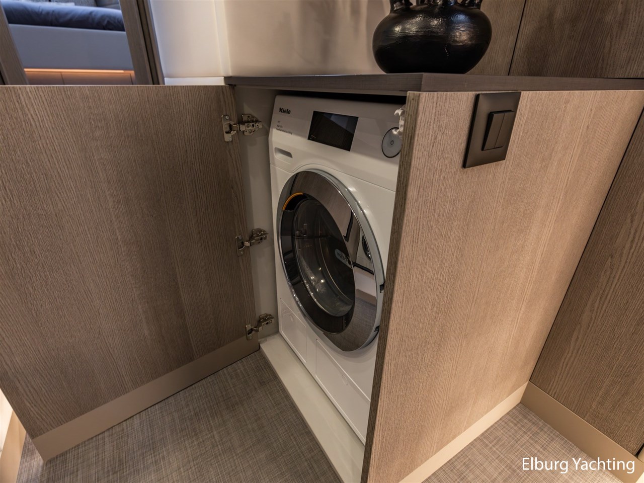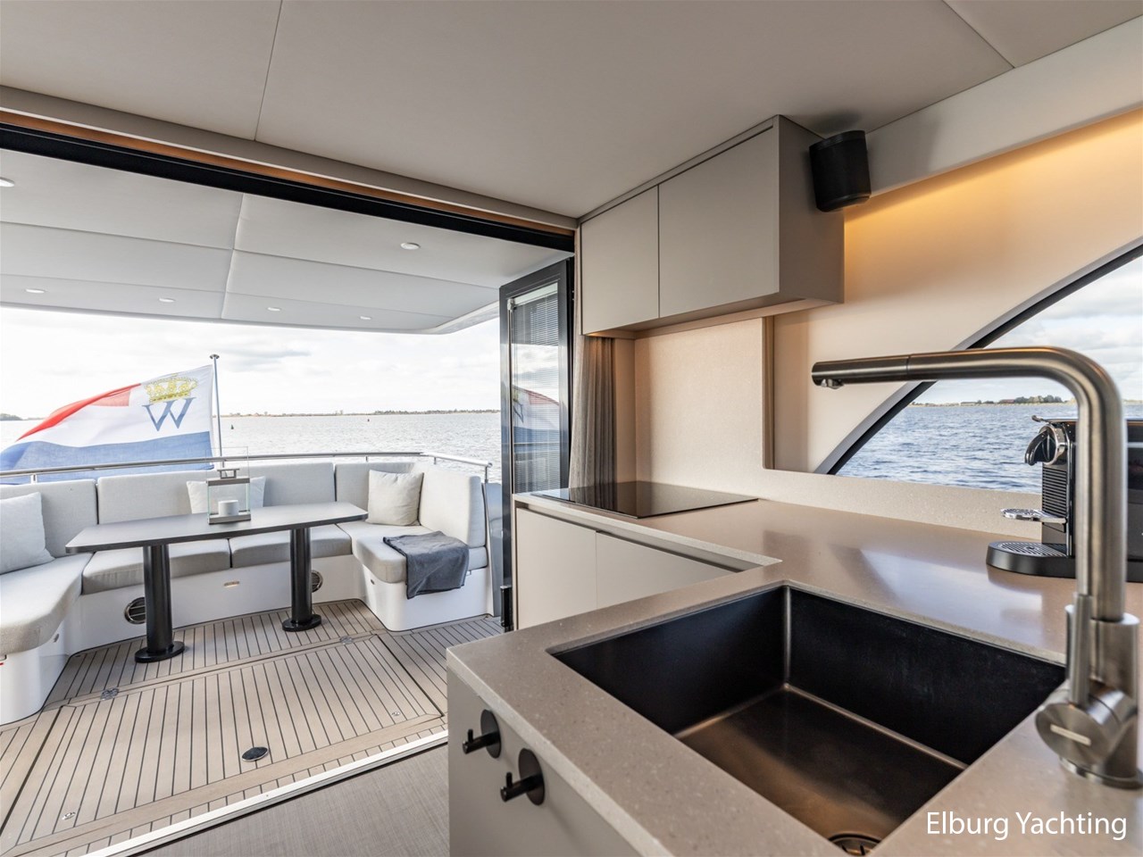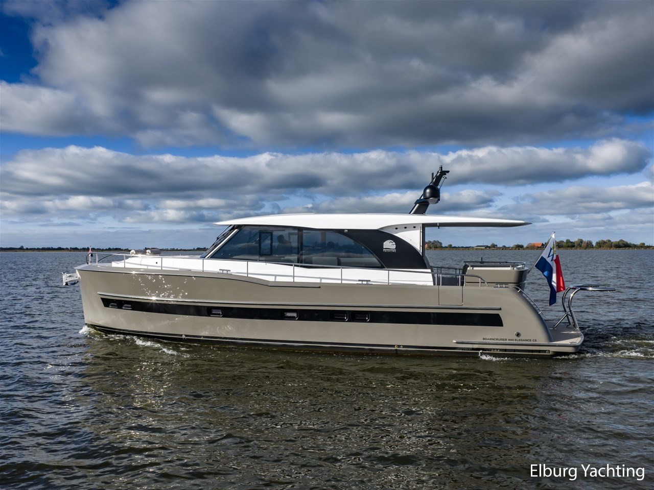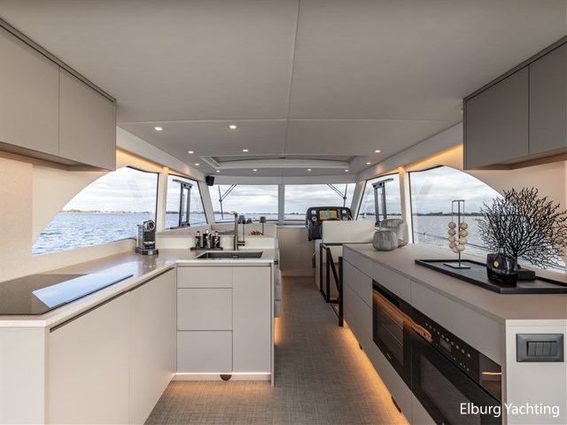 Deze jonge en modern uitgevoerde Boarncruiser 14.40 Elegance werd in december 2022 te water gelaten. Het jacht wordt u aangeboden door haar eerste eigenaar, die kosten noch moeite hebben gespaard. De Boarncruiser 14.40 Elegance is gebouwd met oog voor detail en gebruiksgemak. De uitstraling van het jacht is modern en licht, maar voelt door haar indeling, gebruik van materialen en hoge afwerkingsniveau warm en luxueus aan. Als u aan boord stapt, komt u in de royale open kuip, overkapt met een verlengd stalen dak en uitgerust met een hoogwaardige kuiptent, voorzien van geïntegreerde berging (CanopEasy). Vanuit de kuip loopt u gelijkvloers naar binnen via vier openslaande deuren, voorzien van een geïntegreerde plisséhordeur. Aan boord geniet u van vloerverwarming en hete lucht verwarming, twee te openen zijramen en een groot elektrisch schuifdak. De gehele vloer is afgewerkt met een stijlvolle Bolon kunststofvloer. De salon is licht en ruim opgezet, met sfeerverlichting, veel kastruimte, een wijnkoeler, vaatwasser, koelkast, Sonos muzieksysteem, Samsung TV op een lift en een stijlvolle dinette met elektrisch verstelbare tafel die tevens als extra slaapplaats kan dienen. De hoge afwerkingskwaliteit wordt doorgetrokken in details zoals het Getacore werkblad met verzonken keramische kookplaat en de plissé gordijnen in de salon. Via een elegante wenteltrap met geïntegreerde verlichting en wandbekleding bereikt u de eigenaarshut met kingsize bed, luxe afwerking en eigen badkamer en-suite. Voorin bevindt zich de gastenhut, voorzien van een eigen badkamer, een apart toilet en een dubbel tegenovergesteld vluchtluik. Beide badkamers en toilet zijn voorzien van Getacore vloeren. Op het voordek bevindt zich een royaal zonnedek met twee verstelbare zonnebedden en twee r.v.s. opbergvakken voor fenders. Daarvoor is een comfortabele zitgelegenheid gecreëerd, waar tevens de mogelijkheid bestaat om buiten te varen. De buitenstuurstand is uitgerust met roerbediening en Volvo Penta EVC-gashendels. Aanvullend is er een Dockmate-afstandsbediening aanwezig, waarmee niet alleen de boeg- en hekschroef maar ook de motoren kunnen worden bediend, ideaal voor comfortabel en nauwkeurig manoeuvreren. Achterin bevindt zich een ruime garage, hydraulisch te openen via een spiegeldeur, met directe doorgang naar de goed georganiseerde motorkamer. Deze blijft bruikbaar zonder dat de kuip wordt verstoord. De aandrijving komt van twee krachtige Volvo Penta motoren met vaste schroefassen, indirecte koeling, flexibele stuwdragers, watergesmeerde assen en 4-blads schroeven. Voor extra veiligheid is er een FirePro brandblussysteem in de motorkamer. Tot slot is het jacht voorzien van een centraal stofzuigsysteem, een verlengd zwemplateau van ca. 40 cm, gangboord en embleem verlichting, een dekwaspomp, sunscreens voor voorraam, zijkanten en in de kuip in 4 delen, een Miele was-/droogmachine, horizontale jaloezieën in beide hutten, een r.v.s. elektro-hydraulisch klapbare mast en veel gepolijste r.v.s. railingdelen en bolders. De doorvaarthoogte met gestreken mast bedraagt circa 4,05 meter. Motoronderhoud en Kabola-service zijn recent uitgevoerd in 2025. Voor vragen en/of het maken van een afspraak bent u 7 dagen per week van harte welkom bij Elburg Yachting.