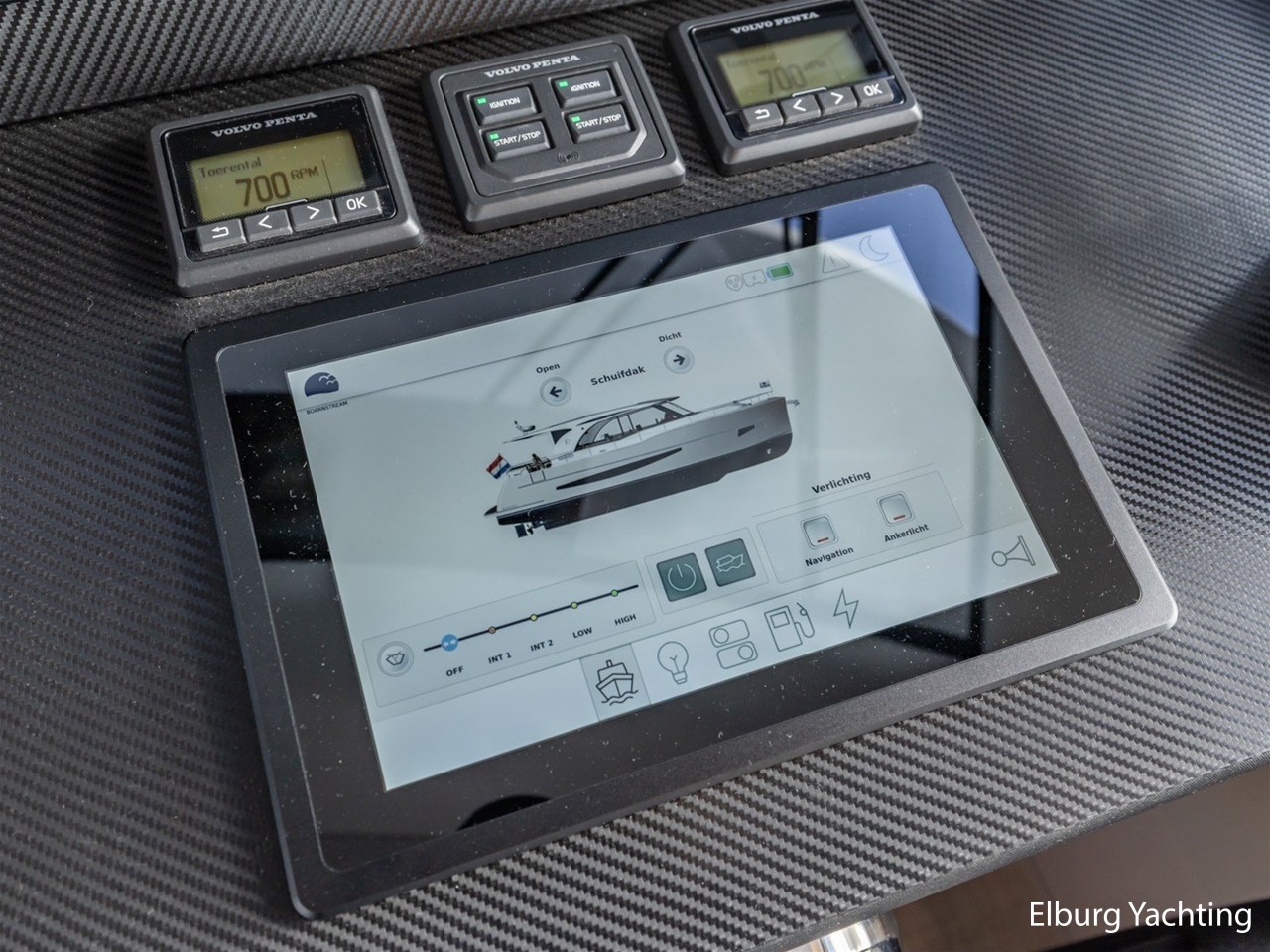 1 x hydraulisch binnen stuurstand + 1 x motor-en roerbediening op voordek + 1 x Dockmate afstandsbediening