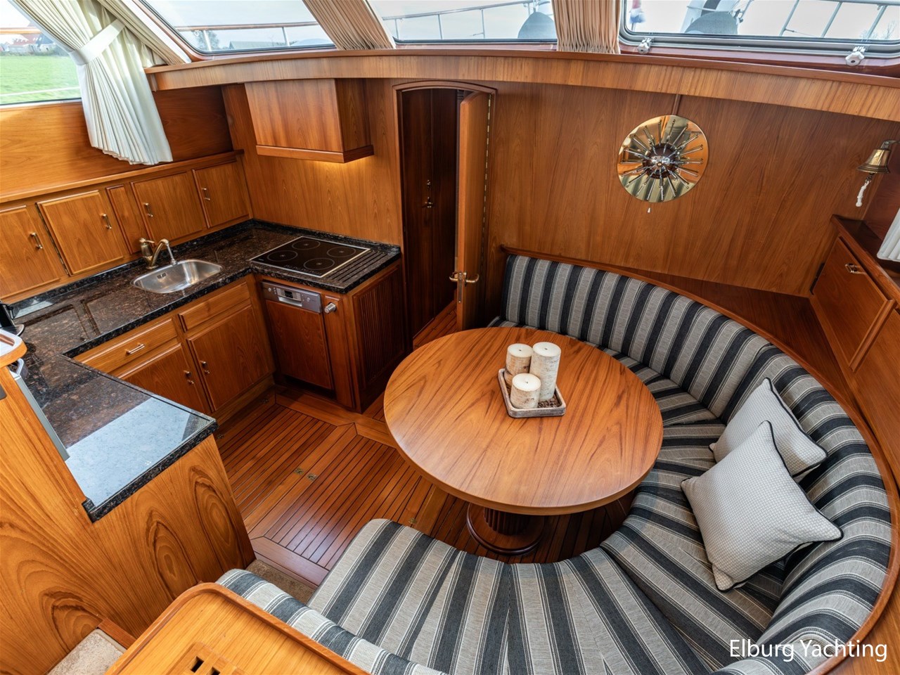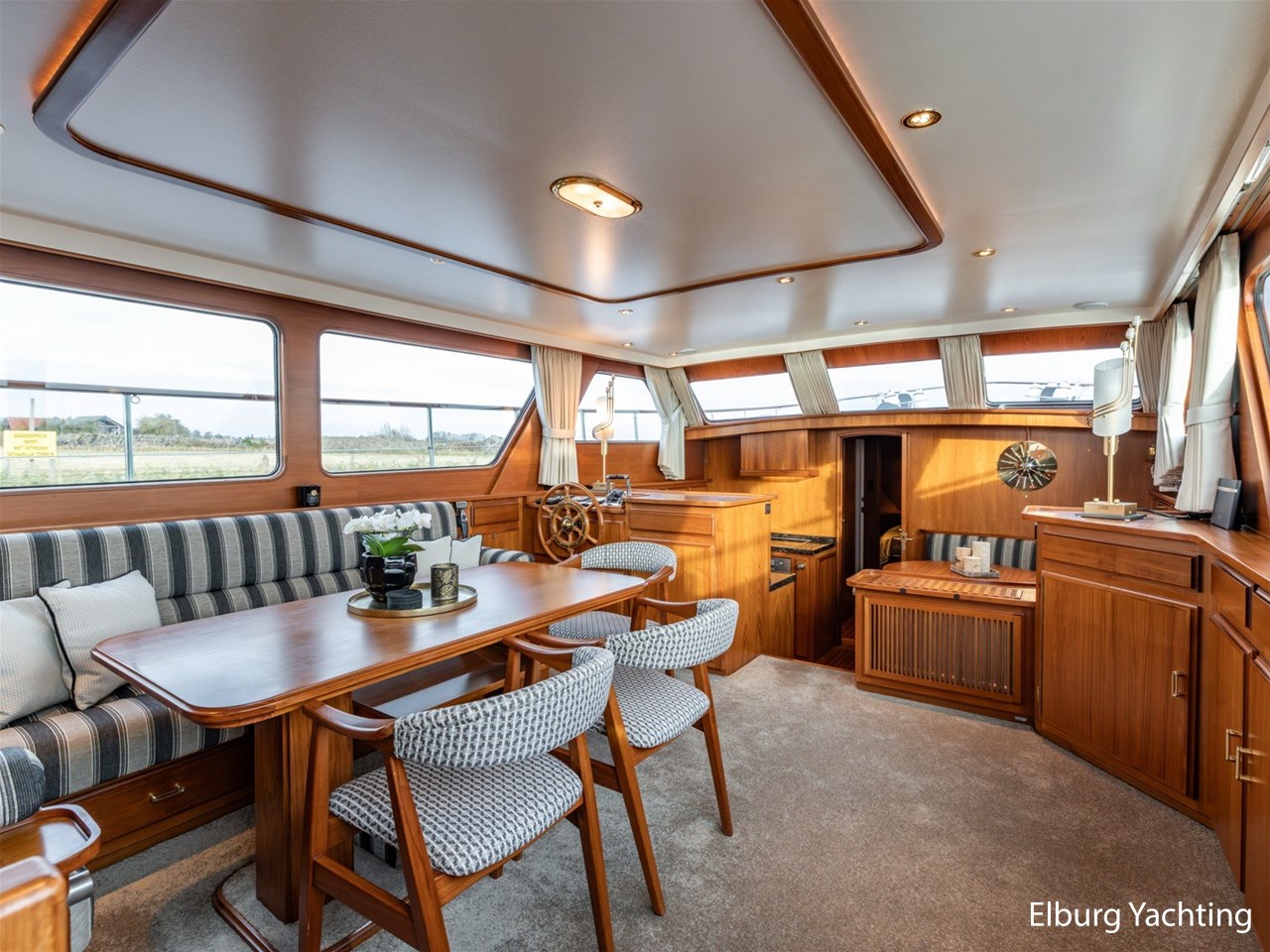 Het jacht beschikt over TwinDisc elektrisch koppeling + trolling, Power Comander, RVS zijtrap, 4 zij-ingang in de reling, vaste bank op achtertdek, RVS handgelijders, Mastervolt Power System Control Panel, Victrol Digital Multi Control, Teakhouten reling met RVS septers, mughorren, mughorren voor alle patrijspoorten, veel kastruimte, alle kasten met verlichting, Siemens vaatwasmachine, marmeren topbladen (keuken graniet), luxe eigenaarshut met 4 x patrijspoort, 2 x PTO pomp, radio Zeeland bochtaanwijzer + windsnelheid + windhoek, 3 x 2-armige ruitenwissers, Biminitop over achterdek, veel bergruimte buiten, 8 x rvs bolders, 2 x camerasysteem, RVS stootstrip rondom, hoge machinekamer inlaat, kruiphoogte ca. 4.10 m, stuurstoel + meevaarbank, nieuwe stoffering in 2023, ledverlichting, mughorren, magnetische screens buitenzijde, stroom monitor systeem om de telefoon, AEG 9 kilo nieuwe was/droogmachine, hydraulische besturing, trollingsysteem = 2 á 3 knopen varen, kruissnelheid ca. 8 knopen. gouden kleppendeksel.