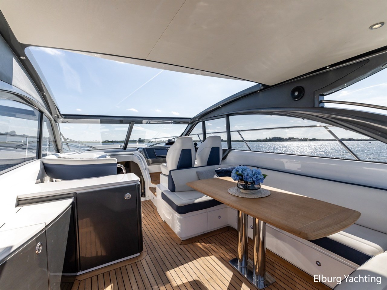 Deze mooie Princess V48 is met haar sportieve lijn een mooie verschijning op het water. Het schip beschikt over onder andere: hydraulisch zwemplatform voor de ultieme waterbeleving, garage voor bijboot van 3.25m, zonnebed in kuip. gangway, airconditioning per ruimte, hetelucht verwarming, elektrisch schuifdak over de kuip, motorservice april 2025, generator service april 2025, gepolijst oktober 2025, Volvo Penta IPS systeem voor eenvoudig manoeuvreren, Volvo Penta motormanagement systeem, roerstandaanwijzer, Dockmate afstandsbediening, volledig afsluitbare tent rondom kuip, uitstroomopening voor verwarming in kuip, houten vloer in salon + keuken, bed in gastenhut is verstelbaar en te gebruiken als V-bed of vrijstaand bed, muggenhorren, Fisher en paykel vaatwasser, Electrolux 1-3 kg wasmachine, buitenkeuken met grill en spoelbak, 2 x luxe vaarstoel.