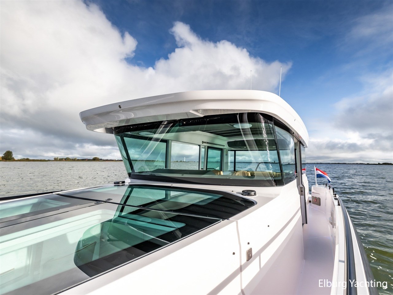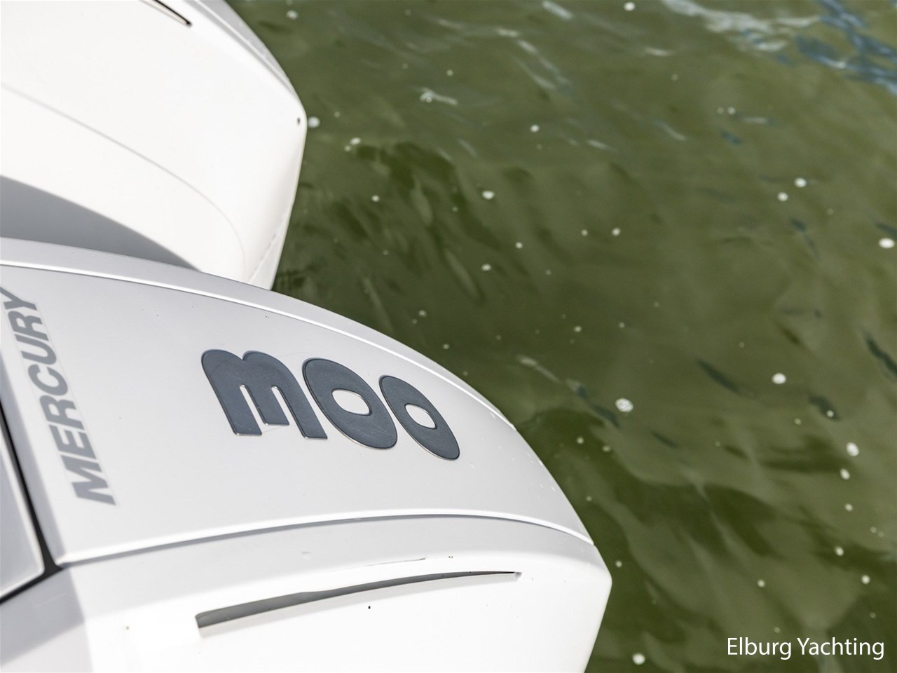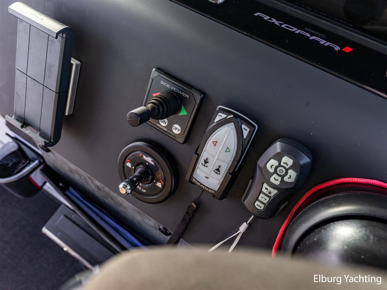 Deze Axopar XC Cross Cabin is een veelzijdig en stoer gelijnd jacht. Dankzij haar V-Stepped romp in combinatie met de Joystick Piloting vertoont ze mooi vaargedrag op groter water met een hogere topsnelheid en is ze erg gemakkelijk te manoeuvreren. Verder is ze voorzien van een dubbele cabine en een natte cel. Het jacht is fraai gestyled middels het Brabus Line Trim Package en geeft een luxe en fraai afgewerkte indruk. Deze Axopar wordt voortgestuwd door twee 300 pk sterke Mercury Verado motoren. Rondom is eenvoudig bewegen middels de gangboorden en de twee te openen zijdeuren in het stuurhuis. Voor- en achter het stuurhuis zijn twee royale zonnebedden gesitueerd. Het stuurhuis is rondom voorzien van ramen waardoor er een optimaal 360 graden zichtveld is. Tevens is het stuurhuis voorzien van een gezellige dinette met koelkast onder de vaar- / meevaarstoel. Dit jacht is een sportieve allrounder en wordt onder andere geleverd met: Led-verlichting rondom, Webasto elektrisch schuifdak, vergrootte kastruimte voorhut, zonnebed voordek met bergruimte, Webasto verwarming, raamcovers, Dometic koelkast, zoeklicht met afstandsbediening, buitendouche met warm water, onderwaterverlichting, Waterski-beugel, Audiosysteem met 5 speakers binnen en 4 speakers buiten, Toiletruimte met douche en hoezen voor de buitenkussens. Voor vragen en/of het maken van een afspraak bent u 7 dagen per week van harte welkom bij Elburg Yachting.