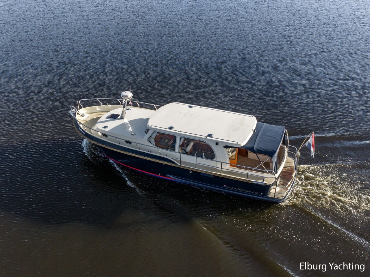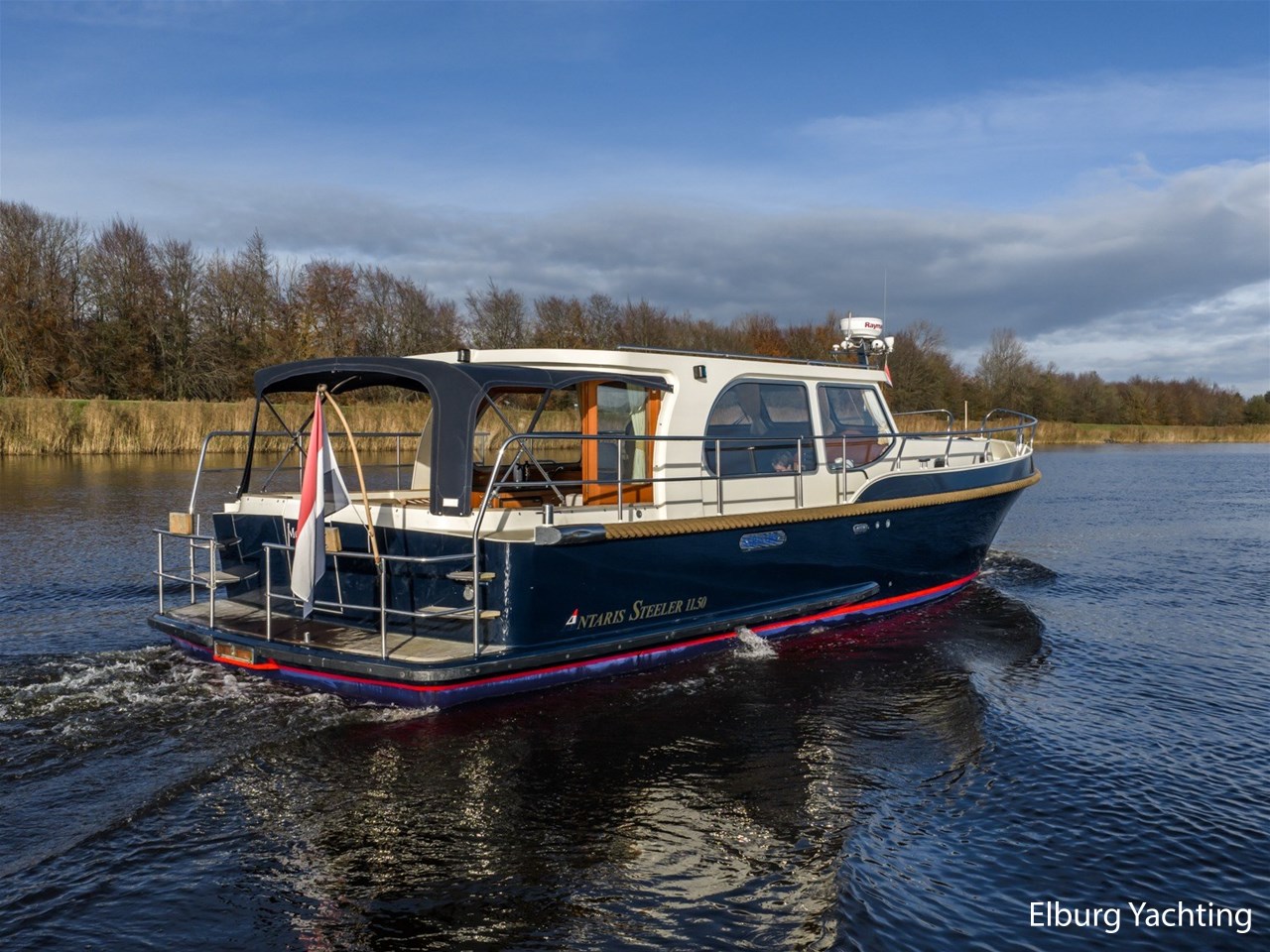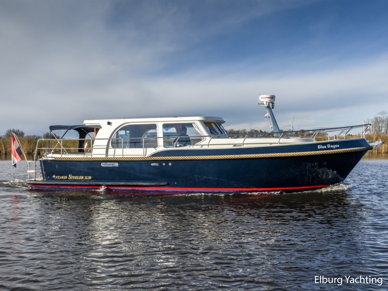 Zeer stijlvol en comfortabel gebouwde Antaris Steeler 11.50 open kuip. Het schip biedt voor zijn lengte veel ruimte aan boord met een royale open kuip, aangesloten salon en kombuis en twee hutten indeling. Deze Antaris Steeler 11.50 is zeer rijk uigerust qua techniek en voorzien van: Volledig afsluitbare kuiptent, 4 x gelakte houten klapdeur naar achterdek (waardoor salon en achterdek een grote leefruimte worden), romp geschilderd 2023, bekleding in salon + stuurstoel 2025, service accu's 2025, kabelaring rondom, Corian topbladen, salonbank met een extra inzetstuk ook te gebruiken als tweepersoons bed, muggenhorren, separate wasmachine, extra geïsoleerde motorbekisting, kuipverlichting, eenvoudige opstap van zwemplateau naar gangboord d.m.v. traptreden, de Hydronautica afstandsbediening maakt het aan- en afmeren kinderspel met een directe bediening voor de boeg- en hekschroef / motor voor- en achteruit / ankerlier, zitbank in kuip met bijbehorende kussens, groot opbergluik, klapbare r.v.s. doorvaarthoogte met staande mast ca. 3,70 m en met gestreken mast ca. 2,40 m.