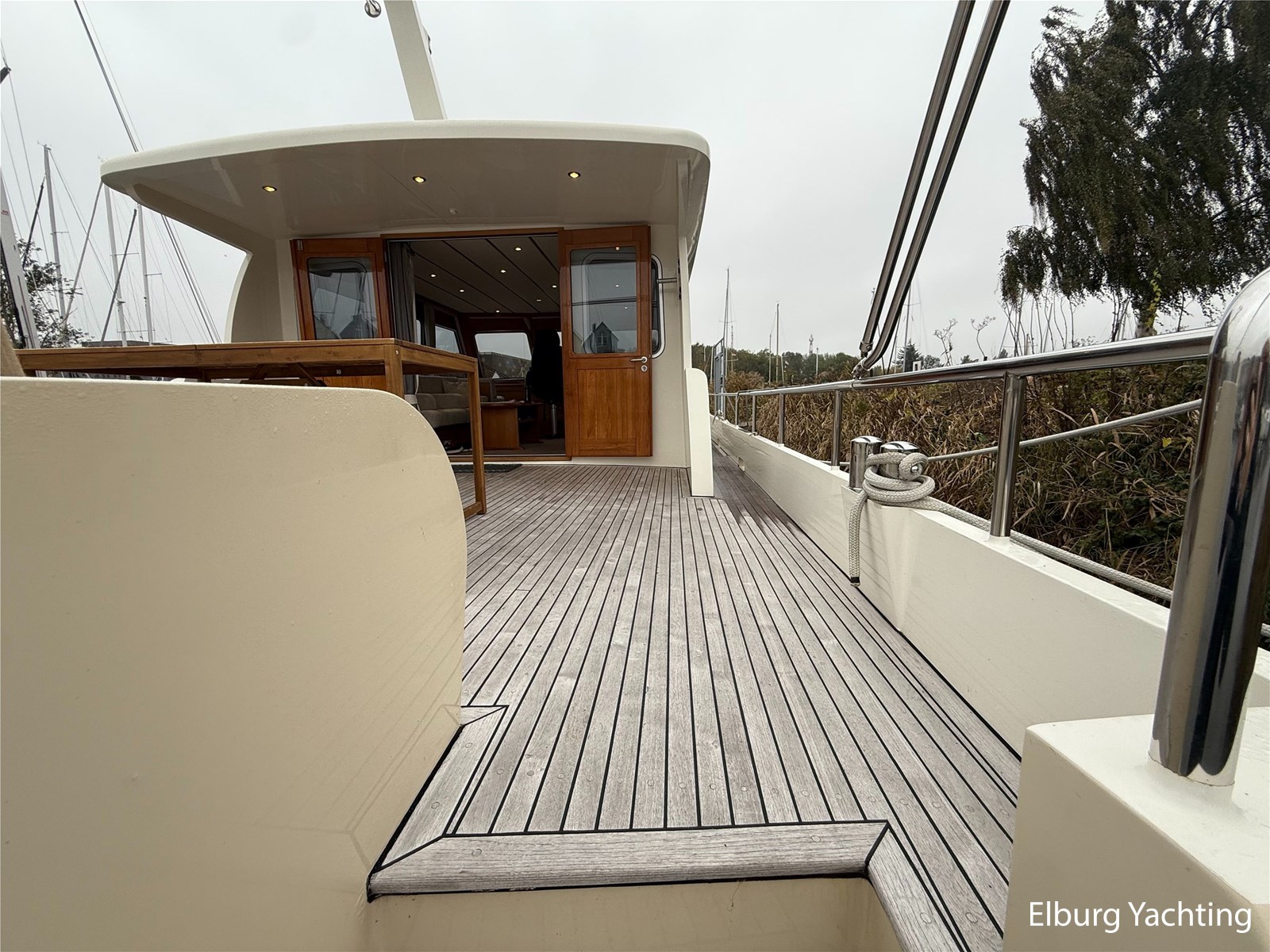 Geïntegreerd + teak dek + r.v.s. zwemtrap + 2 x trap van achterdek naar zwemplatvorm
