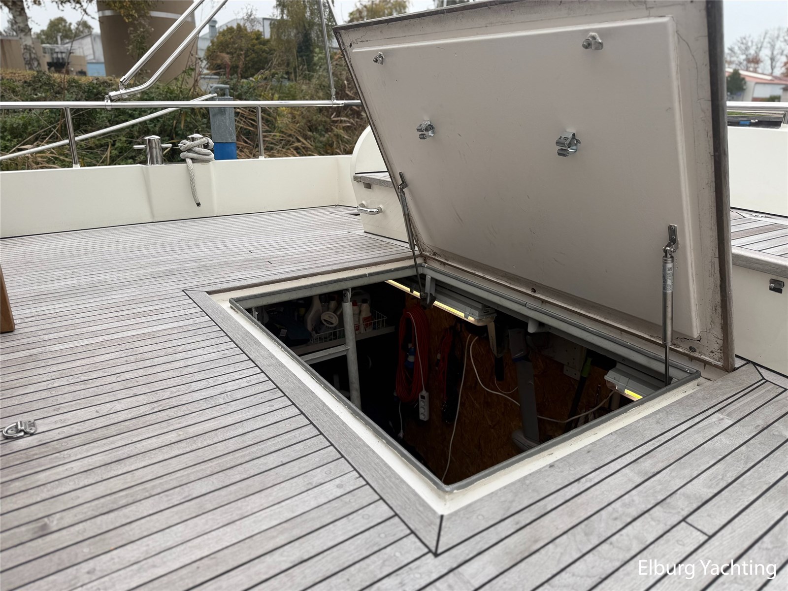 Deze ruime combi kotter 1500 Open Kuip is een schip met veel ruimte boven en beneden deks. Dit schip wordt geleverd met o.a: R.v.s. reling, geïntegreerde bakskisten op achterdek (inclusief teak klep), Hydronautica, 2 x houten openslaande deuren naar open kuip (inclusief dubbel glas), camerasysteem op spiegel (uit te lezen met Raymarine E140W), vlucht/ventilatie luiken, halogeen verlichting, kunststof topbladen in keuken, Siemens vaatwasser, dubbele verschansing, Siemens was/droger combinatie, elektrisch klapbare mast, r.v.s. stootrand, 2 x trap naar zwemplatvorm, lederen stuurstoel, groot achterdek, opslag onder de kuip, r.v.s. zwemtrap tevens te gebuiken als zijladder en ladder naar dak salon.