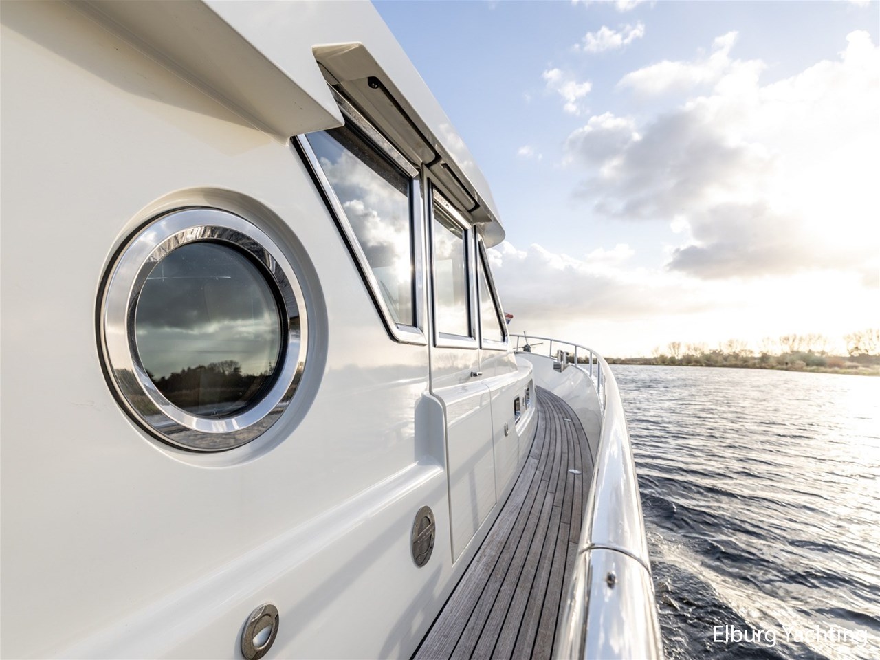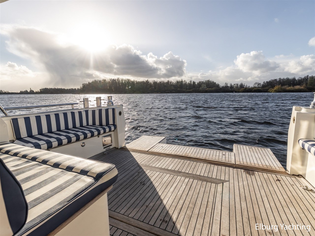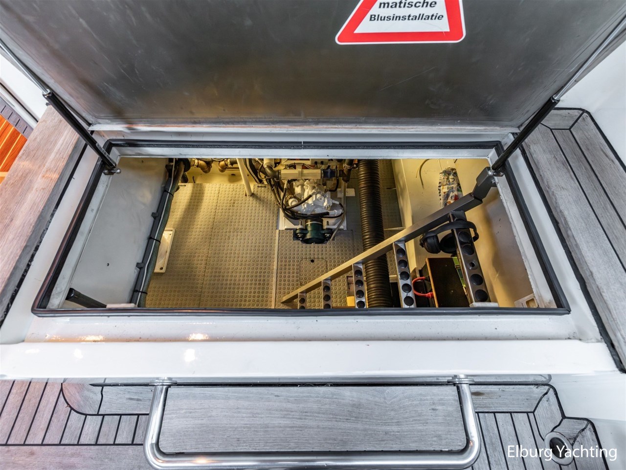 Het jacht beschikt over een hydraulisch uitklapbaar zwemplateau, waardoor deze wordt verlengt en de open kuip nog meer ruimte geeft, ze heeft daarnaast ook een luxe geïntegreerde zitbank op voordek, 4 x RVS sorades voor goede ventilatie in de boot, hydraulisch klapbare mast, 2 x zijdeur (ingang) + 1 x achteringang, luxe stuurstoel, meevaar-dinette naast stuurstand, RVS reling + RVS 'berghout rondom, 3 x dakluik, alle patrijspoorten kunnen open, Alcantrara plafonds, camerasysteem, veel bergruimte buiten, SB +BB elektrische kaapstander, buitenentree machinekamer, ook CV in machinekamer + opbergluik, groot opbergluik in open kuip.