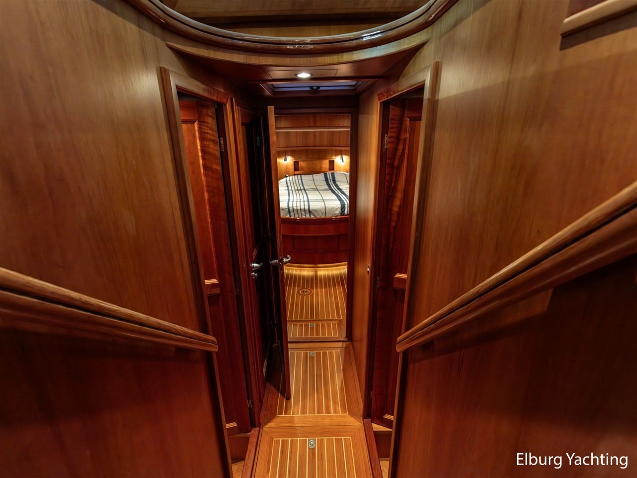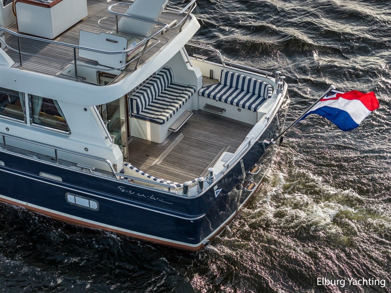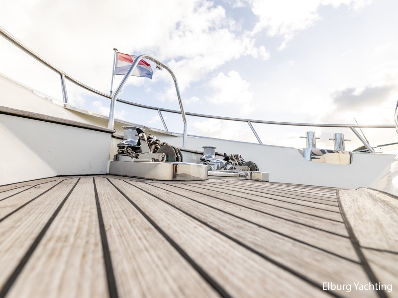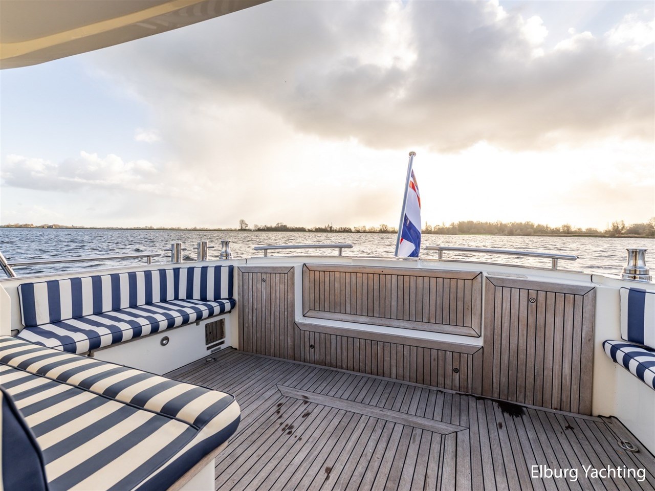 Het jacht beschikt over een hydraulisch uitklapbaar zwemplateau, waardoor deze wordt verlengt en de open kuip nog meer ruimte geeft, ze heeft daarnaast ook een luxe geïntegreerde zitbank op voordek, 4 x RVS sorades voor goede ventilatie in de boot, hydraulisch klapbare mast, 2 x zijdeur (ingang) + 1 x achteringang, luxe stuurstoel, meevaar-dinette naast stuurstand, RVS reling + RVS 'berghout rondom, 3 x dakluik, alle patrijspoorten kunnen open, Alcantrara plafonds, camerasysteem, veel bergruimte buiten, SB +BB elektrische kaapstander, buitenentree machinekamer, ook CV in machinekamer + opbergluik, groot opbergluik in open kuip.