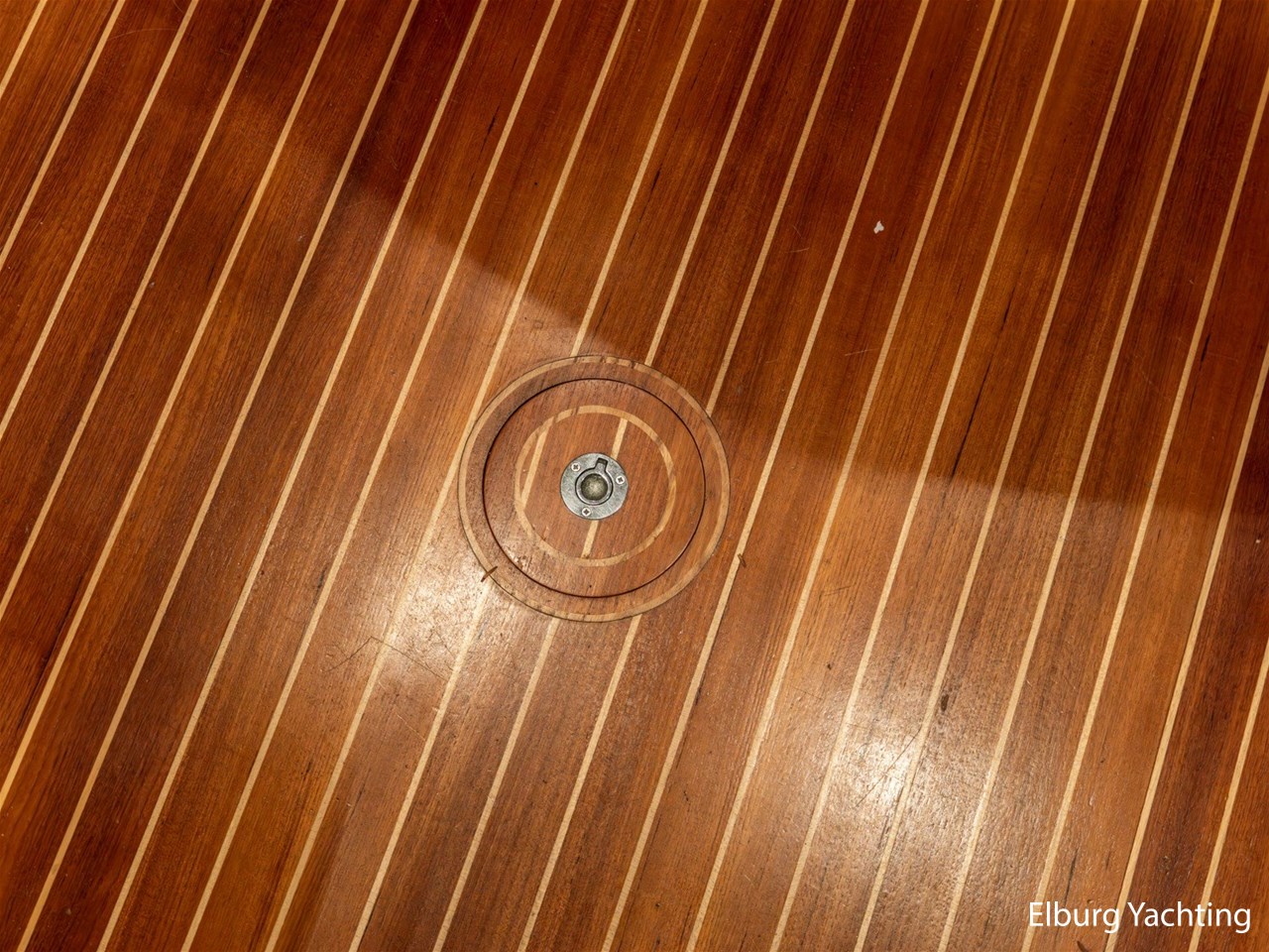 - Kersenhouten interieur, teakvloer, marmeren topbladen, lederen stoffering