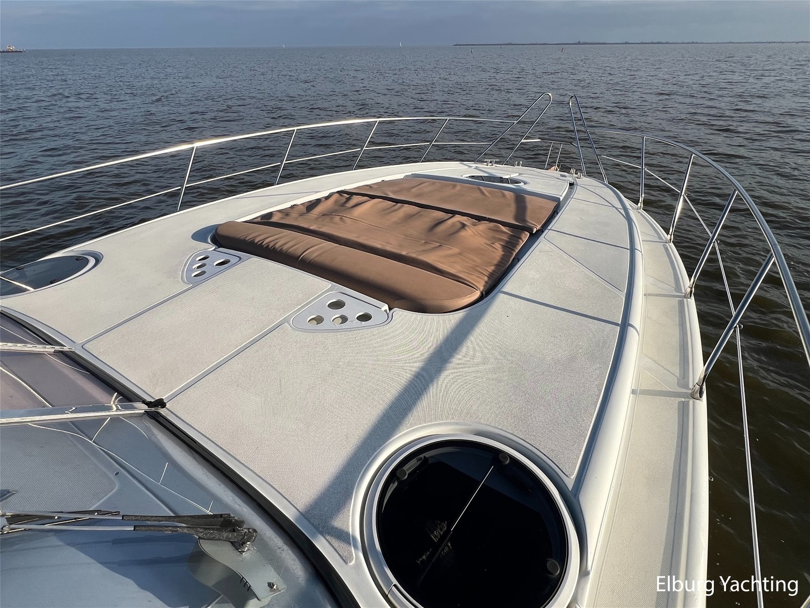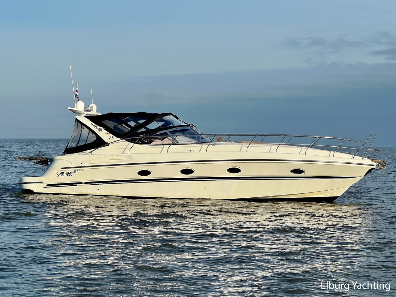 Italiaans design in combinatie met veel praktische ruimte kenmerkt deze Mira 43 van de werf Innovazione e Progetti uit Italie. Dit jacht is van bouwjaar 2004 en is voorzien van twee krachtige Volvo Penta D6 motoren met elk 350 pk. De aandrijving verloopt via twee Volvo Penta DPH hekdrives, welke in 2025 zijn geserviced. Deze Mira 43 is voorzien van: Volledige tent rondom kuip met uitristbare delen, hydraulisch uitschuifbare gangway met afstandsbediening, groot bergluik in zwemplateau, kuip voorzien van koelkast / spoelkom / radio met speakers, loop naar het voordek via gangboorden maar ook binnendoor via opstap bij stuurstand, afneembaar zonnebed op het voordek, elektrisch/hydraulisch bedienbaar luik naar machinekamer, diverse 230V aansluitpunten door de boot, TV in salon (2025), tapijt delen in het interieur uitneembaar, 2 x bergluik in salonvloer. Verfsysteem onderwaterschip vernieuwd in juli 2025. Dit schip is op afspraak in Nederland te bezichtigen. Wij maken graag met u een afspraak voor een vrijblijvend bezoek aan boord.