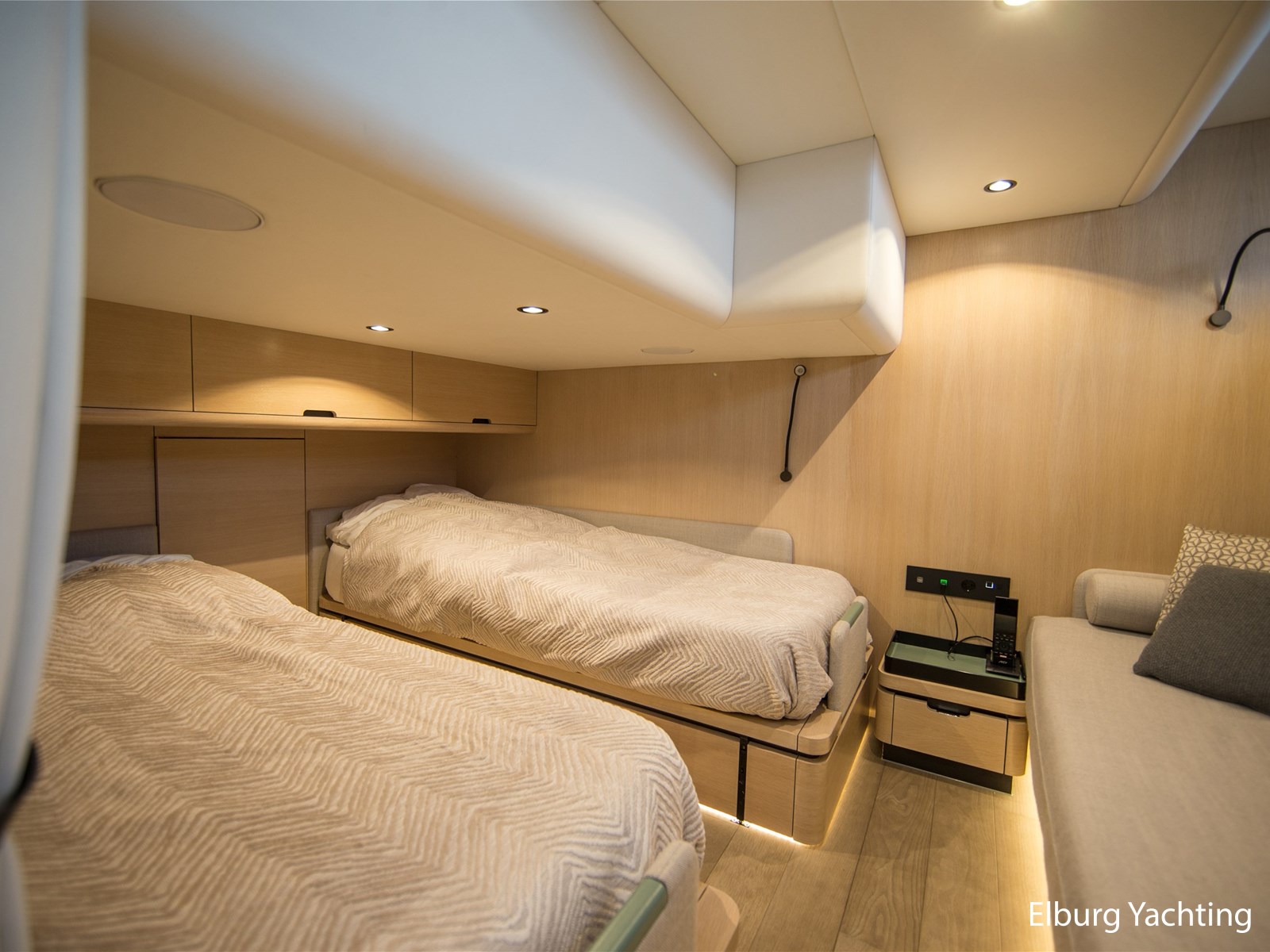 Deze Steeler 56S combineert prestatie met elegantie. Het prachtige ontwerp is getekend door de gerenommeerde Italiaanse ontwerper Vittorio Pieroni en het jacht is door de welbekende werf Steeler Yachts tot een waar kunststuk op het water gevormd. Ze heeft een prachtige lijn en is gebouwd van Aluminium. Aangedreven door twee Volvo Penta D11 - 725 pk sterke motoren behaalt ze een topsnelheid van ca. 26 knopen en een comfortabele kruissnelheid van ca. 18 knopen met een range van ca. 380 nautische mijlen. Elk element aan boord is gemaakt met het oog op comfort en praktisch gebruik. De royale ramen in de salon geven veel natuurlijk licht. Het dak in de salon is hefbaar gemaakt waardoor er tijdens de zonnige dagen een fijne natuurlijke luchtstroom gecreëerd kan worden. Tevens is het dak voorzien van een Webasto schuifdak. Verdere unieke kenmerken van deze Steeler 56S zijn het custom made Alcantara dashboard, Maecvo luchtontvochtiger, stoomoven, prachtige buitenkeuken, Yachtcontroller afstandsbediening, Masscoat rompisolatie, in hoogte verstelbare stuurstoel, Kabola centrale (vloer)verwarming met Webasto climate control en airconditioning, hyraulisch neerlaatbare mast, tendergarage (excl. tender), Flexiteek rondom, hydraulisch zwemplateau, zijdeur aan stuurboord. Voor vragen en/of het maken van een afspraak bent u 7 dagen per week van harte welkom bij Elburg Yachting.