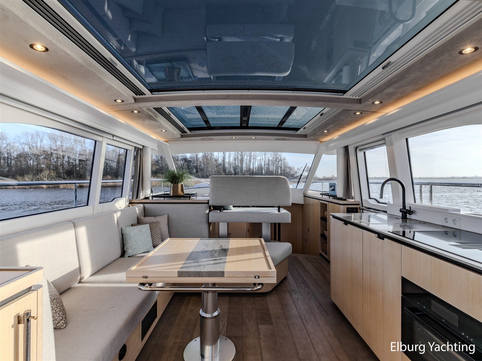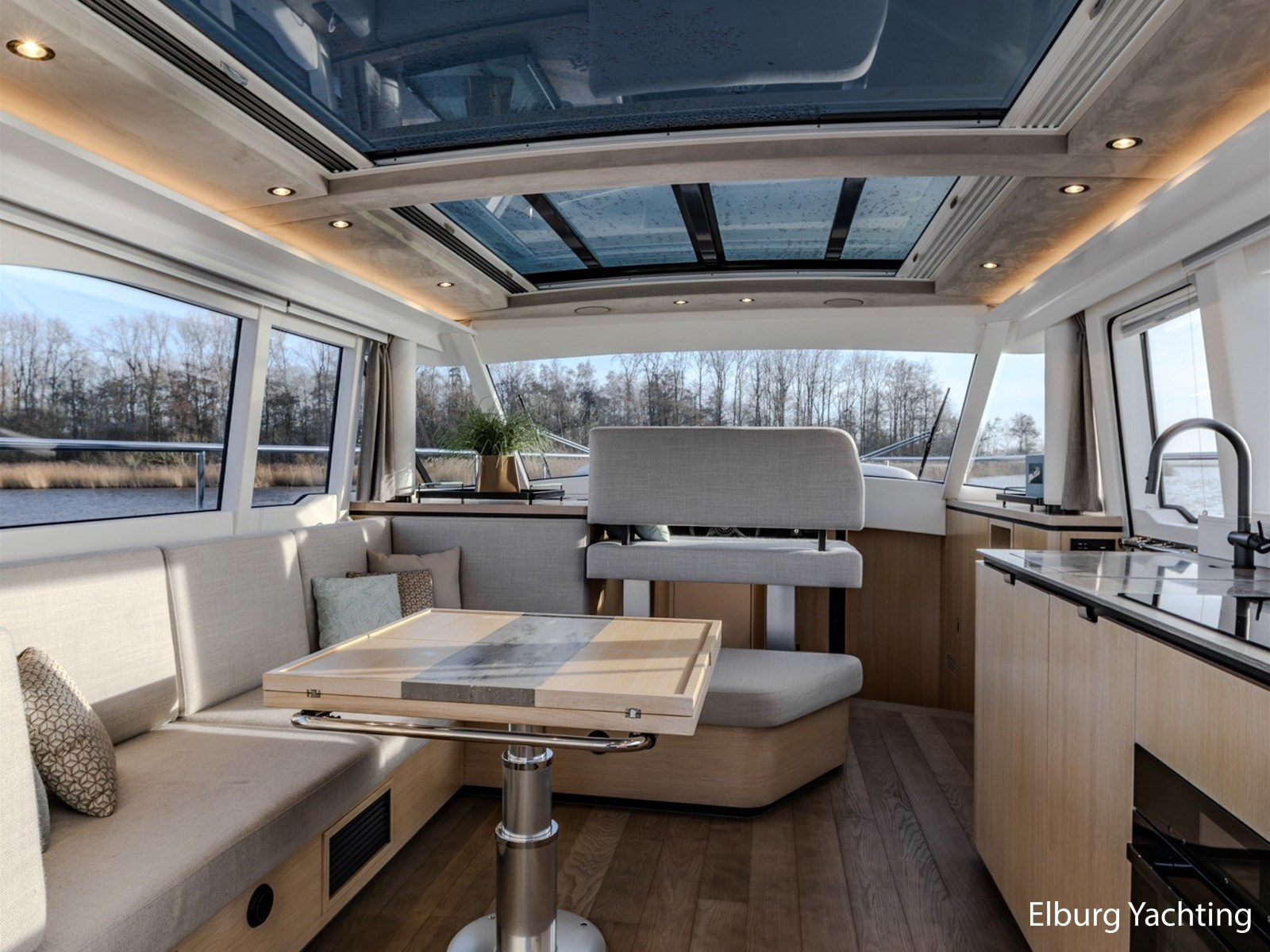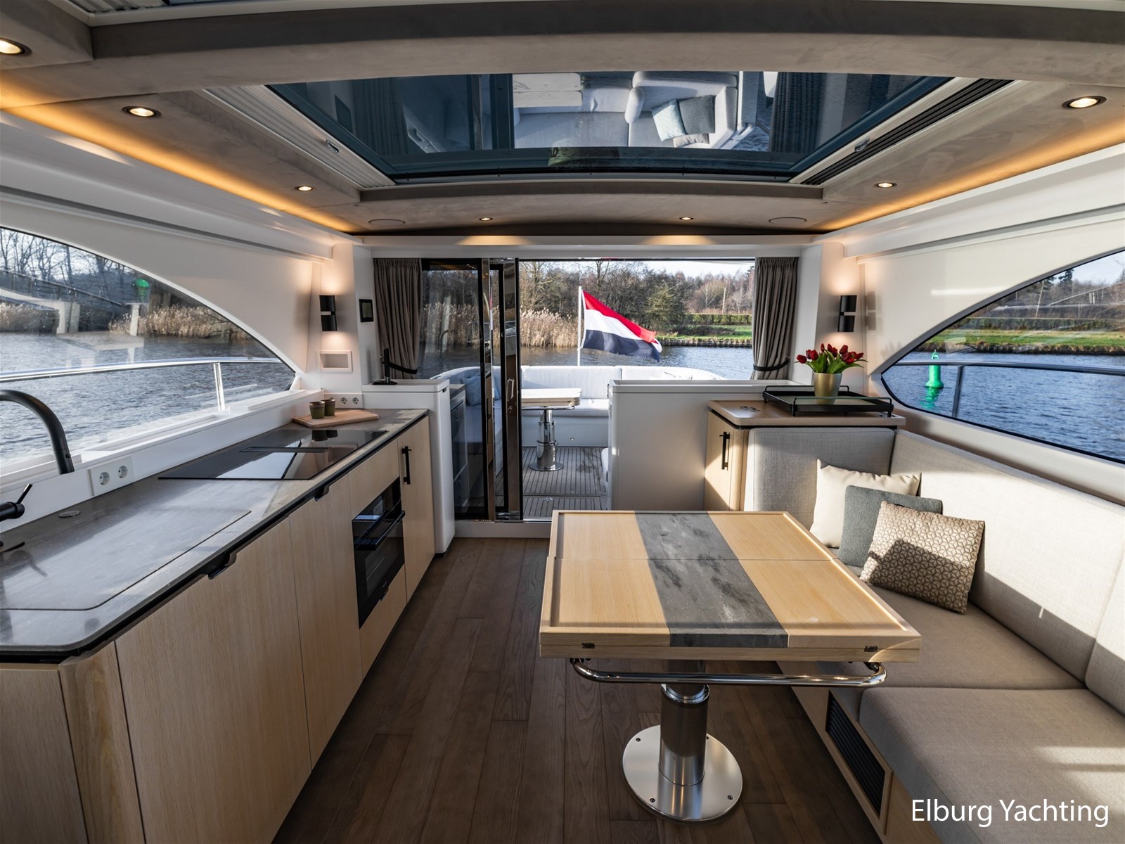 - Op maat gemaakt moder interieur door het hele schip