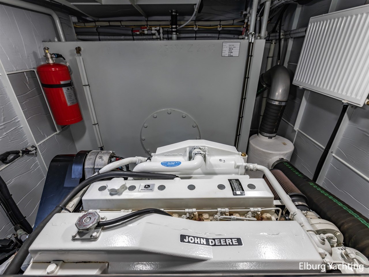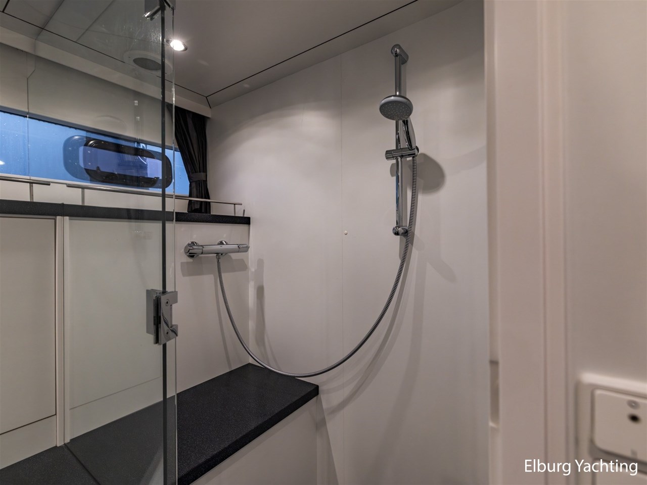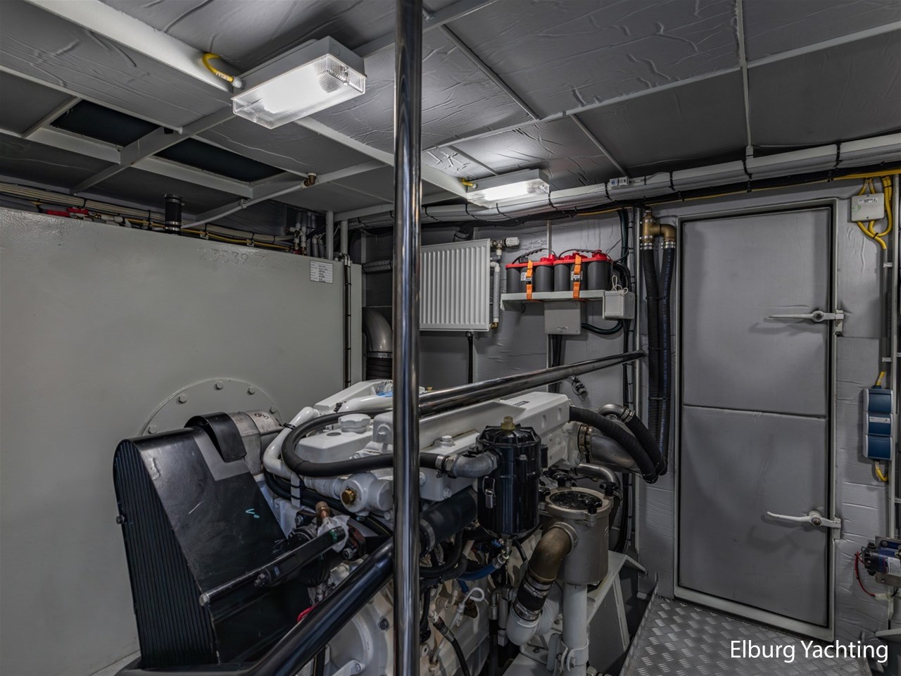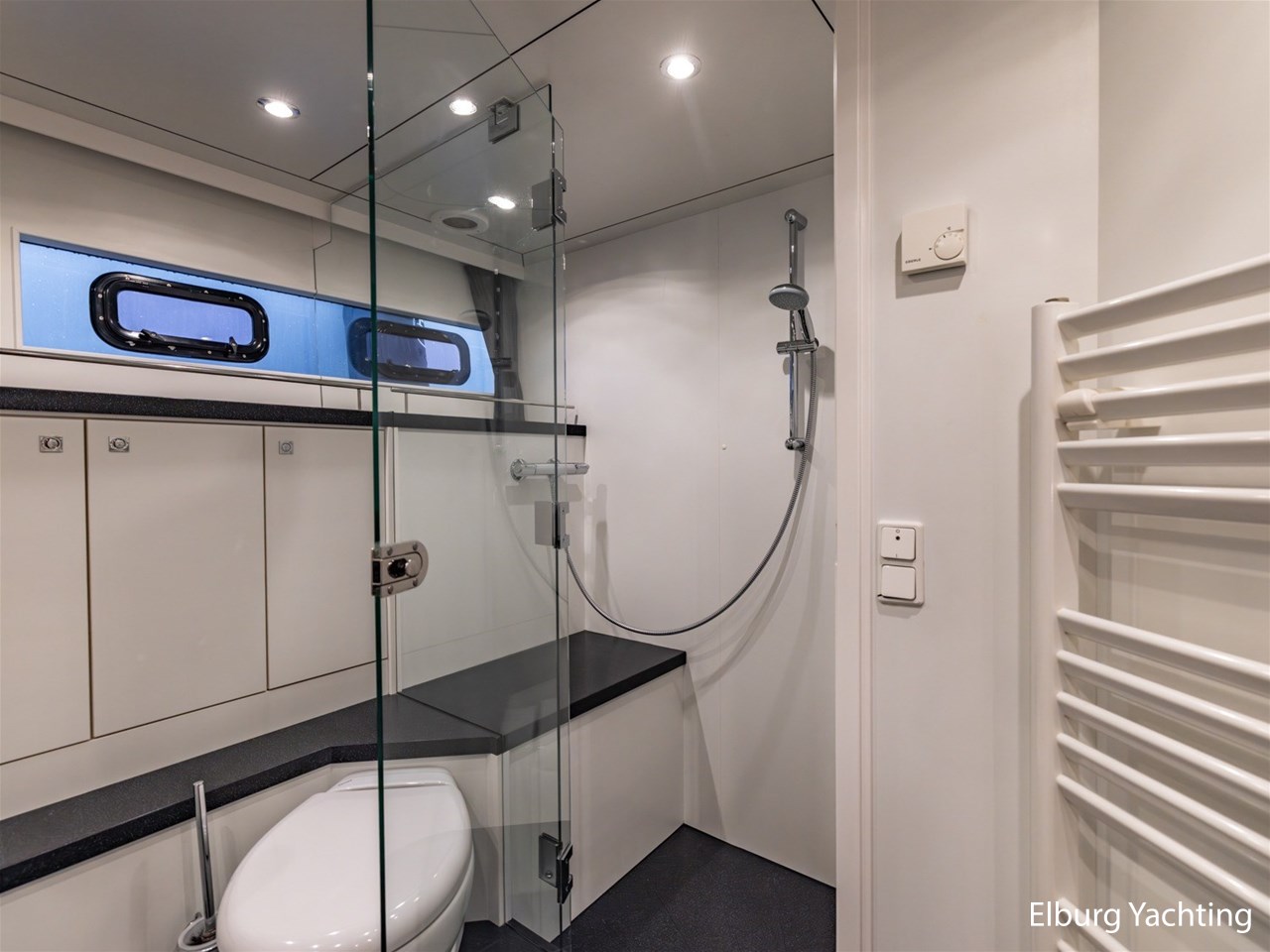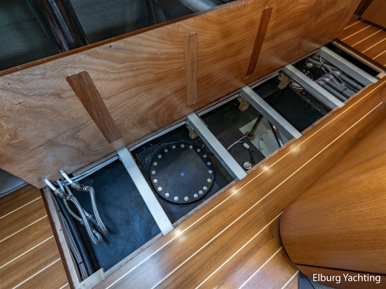 Modern en zeer comfortabel gebouwde stalen Sturiër 620 OC voorzien van hoogwaardige materialen en gebruik van kwaliteitstechniek gebouwd door de Volharding in Stavoren. Het schip is gebouwd in 2013 en in 2014 in de vaar genomen. Deze Sturiër 620 OC heeft een drie hutten indeling met een riante eigenaarshut over de volledige breedte midscheeps, een comfortabele 2 persoons gastenhut in het voorschip en een 2 x 1 persoons stapelbed. De salon/stuurhuis en achterdek zijn gelijkvloers aan elkaar verbonden voor een optimale ruimte beleving. De eigenaarshut heeft een badkamer en-suite en de voorste twee hutten delen een gezamenlijke badkamer. De aandrijving wordt verzorgd door twee sterke John Deere motoren met elk 267pk, dit zorgt voor een soepele toch krachtige manoeuvreerbaarheid. Dit jacht is uitgevoerd met een hydraulisch Naiad stabiliteitssysteem, waardoor het ook aangenamer varen is op groter water of in slechtere weersomstandigheden. Deze Sturier 620 OC is zeer rijk uitgerust en is onder andere voorzien van: Vloerverwarming door het gehele schip, groot opbergluik in achterschip met toegang tot vele technische componenten, 2 x entree naar machinekamer zowel binnendoor als via de kuip, Bosch vriezer, Vaste banken in open kuip met afneembare kussenset, vaste biminitop over de open kuip, veel r.v.s. dekbeslag, 2-persoons bank op het voordek, ligkussen met bimini op voordek, 8 x zonnepanelen 1400W, Hydronautica afstandsbediening voor het bedienen van de boeg- en hekschroef en ook de hoofdmotoren stationair voor- en achteruit, elektrisch bedienbare blinds voor de voorruiten met afstandsbediening, stoffering van Neptune uit 2023, luxe vaarstoel met meevaarbank, elektrisch bedienbaar schuifdak boven stuurstand met hor en verduistering mogelijkheid, 4 x schuifraam in salon, muggenhorren voor patrijspoorten, goed 360gr. zicht bij de stuurstand, corian topbladen, Miele vaatwasmachine, Bosch Maxx5 was-droog combinatie, elektrische tafelpoot voor salontafel, TV op lift, soft closing lades, extra groot zwemplateau, tanks met mangaten, Victron walstroomscheidingstrafo, Victron Cerbo display, Fusion audiosysteem. Het schip heeft zich inmiddels ruimschoots bewezen met zijn zeereizen naar de Middellandse zee. Het schip is op dit moment in de haven van Saint-Tropez/Frankrijk te bezichtigen op afspraak.