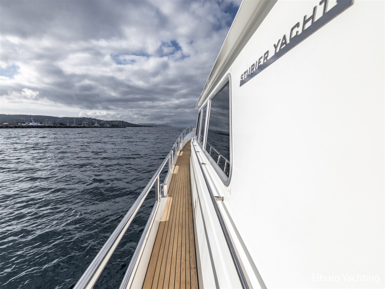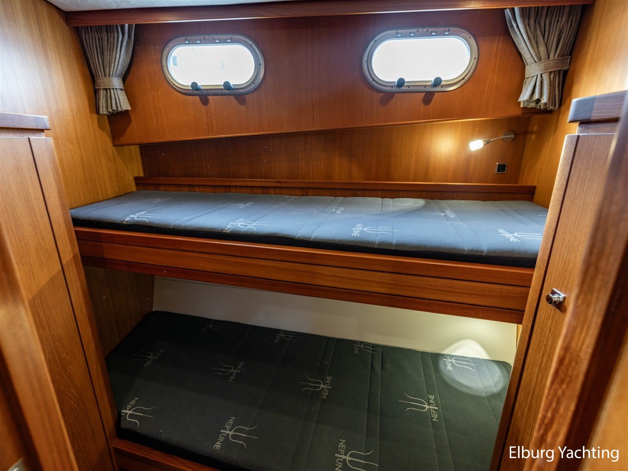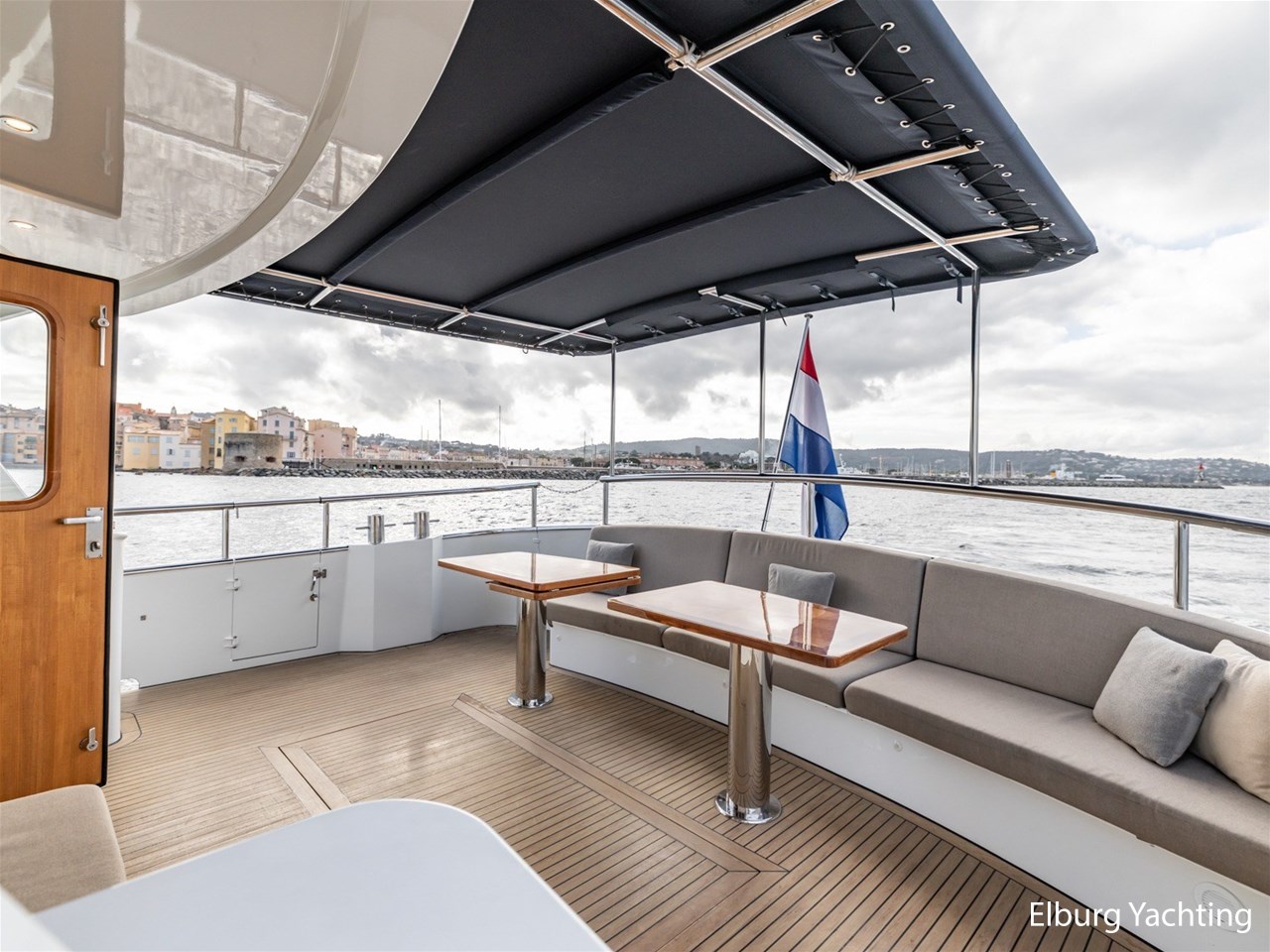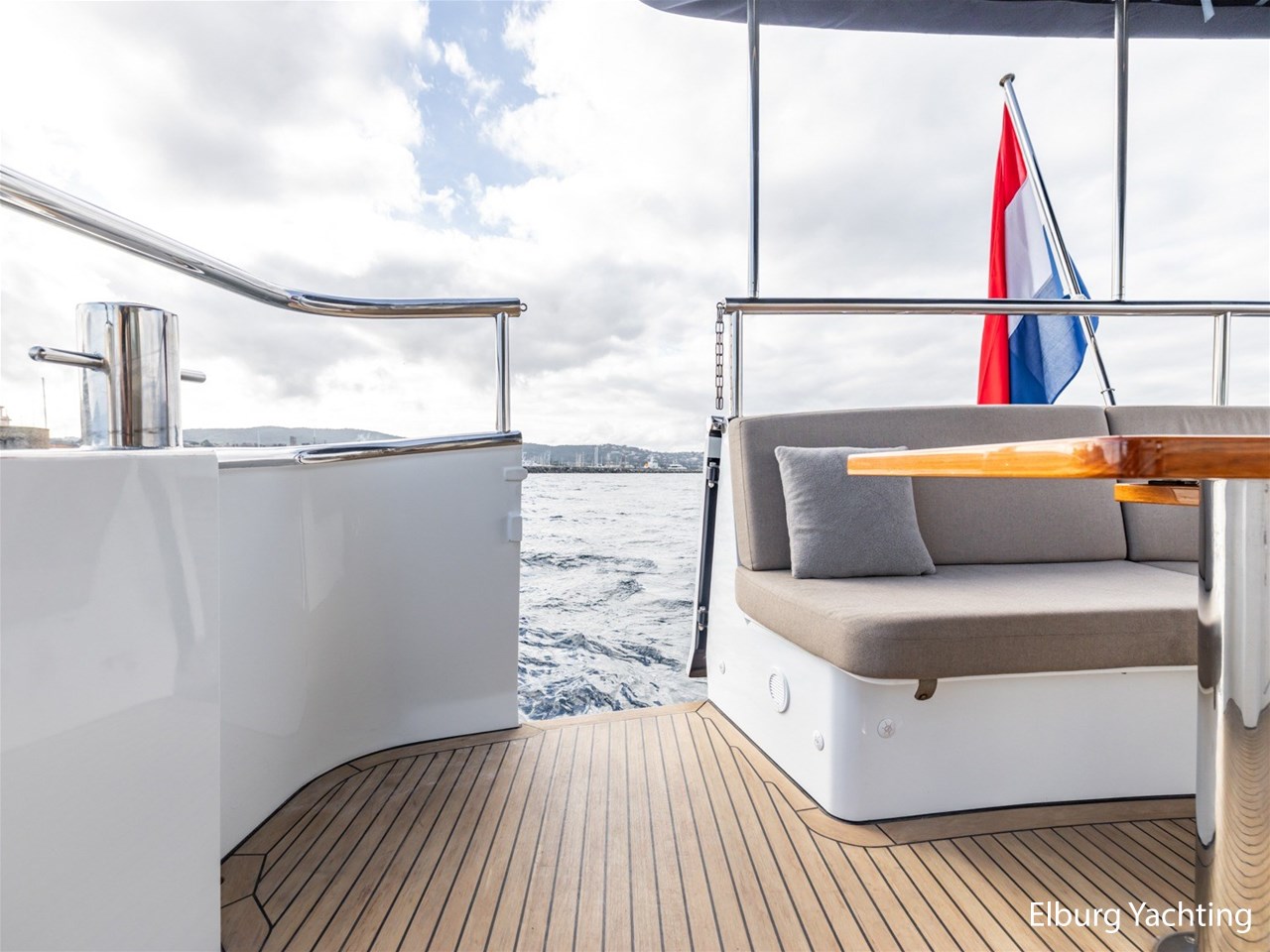Modern en zeer comfortabel gebouwde stalen Sturiër 620 OC voorzien van hoogwaardige materialen en gebruik van kwaliteitstechniek gebouwd door de Volharding in Stavoren. Het schip is gebouwd in 2013 en in 2014 in de vaar genomen. Deze Sturiër 620 OC heeft een drie hutten indeling met een riante eigenaarshut over de volledige breedte midscheeps, een comfortabele 2 persoons gastenhut in het voorschip en een 2 x 1 persoons stapelbed. De salon/stuurhuis en achterdek zijn gelijkvloers aan elkaar verbonden voor een optimale ruimte beleving. De eigenaarshut heeft een badkamer en-suite en de voorste twee hutten delen een gezamenlijke badkamer. De aandrijving wordt verzorgd door twee sterke John Deere motoren met elk 267pk, dit zorgt voor een soepele toch krachtige manoeuvreerbaarheid. Dit jacht is uitgevoerd met een hydraulisch Naiad stabiliteitssysteem, waardoor het ook aangenamer varen is op groter water of in slechtere weersomstandigheden. Deze Sturier 620 OC is zeer rijk uitgerust en is onder andere voorzien van: Vloerverwarming door het gehele schip, groot opbergluik in achterschip met toegang tot vele technische componenten, 2 x entree naar machinekamer zowel binnendoor als via de kuip, Bosch vriezer, Vaste banken in open kuip met afneembare kussenset, vaste biminitop over de open kuip, veel r.v.s. dekbeslag, 2-persoons bank op het voordek, ligkussen met bimini op voordek, 8 x zonnepanelen 1400W, Hydronautica afstandsbediening voor het bedienen van de boeg- en hekschroef en ook de hoofdmotoren stationair voor- en achteruit, elektrisch bedienbare blinds voor de voorruiten met afstandsbediening, stoffering van Neptune uit 2023, luxe vaarstoel met meevaarbank, elektrisch bedienbaar schuifdak boven stuurstand met hor en verduistering mogelijkheid, 4 x schuifraam in salon, muggenhorren voor patrijspoorten, goed 360gr. zicht bij de stuurstand, corian topbladen, Miele vaatwasmachine, Bosch Maxx5 was-droog combinatie, elektrische tafelpoot voor salontafel, TV op lift, soft closing lades, extra groot zwemplateau, tanks met mangaten, Victron walstroomscheidingstrafo, Victron Cerbo display, Fusion audiosysteem. Het schip heeft zich inmiddels ruimschoots bewezen met zijn zeereizen naar de Middellandse zee. Het schip is op dit moment in de haven van Saint-Tropez/Frankrijk te bezichtigen op afspraak.