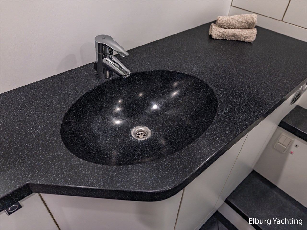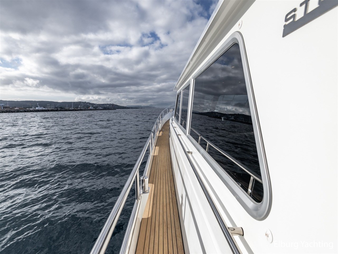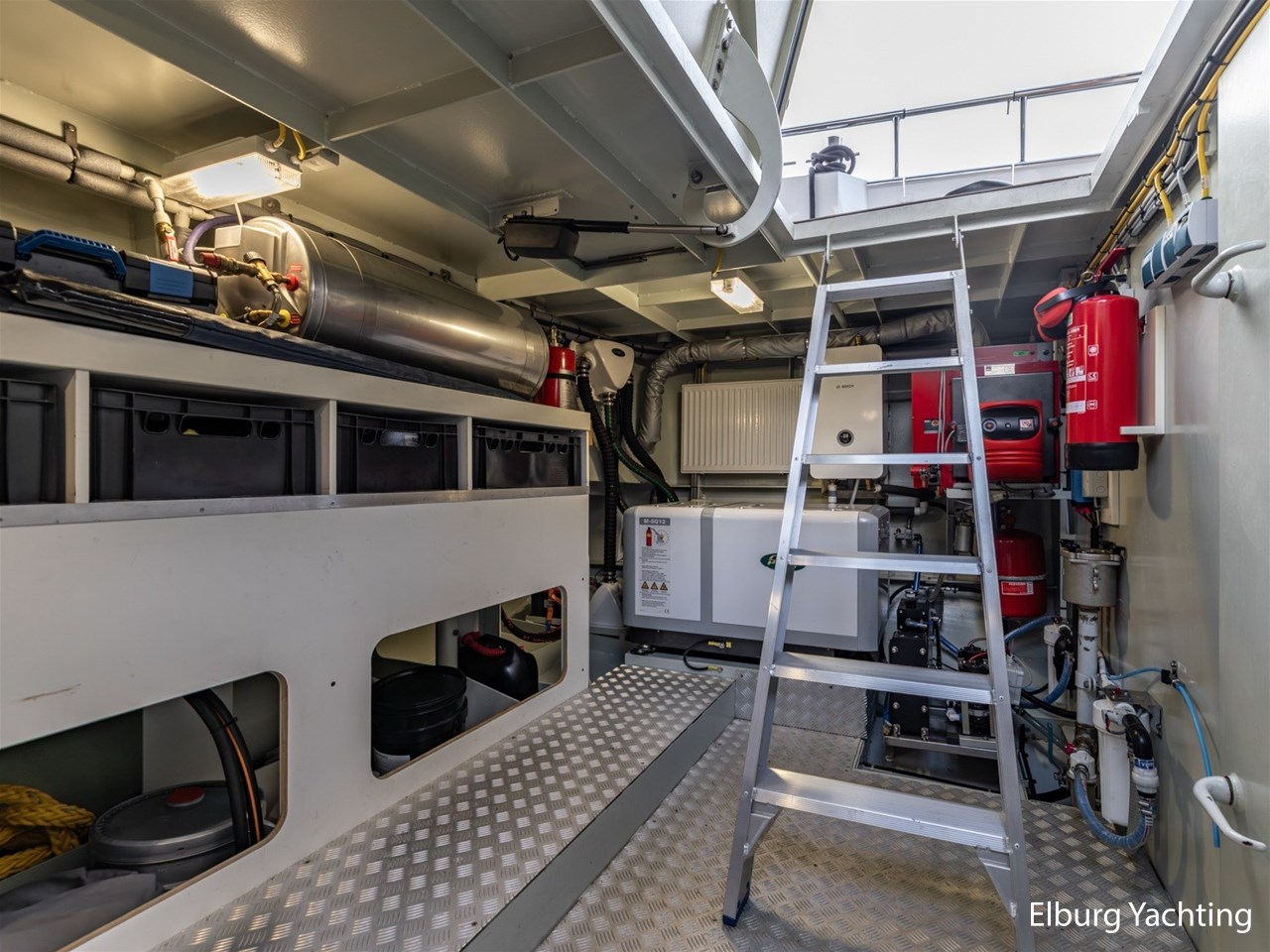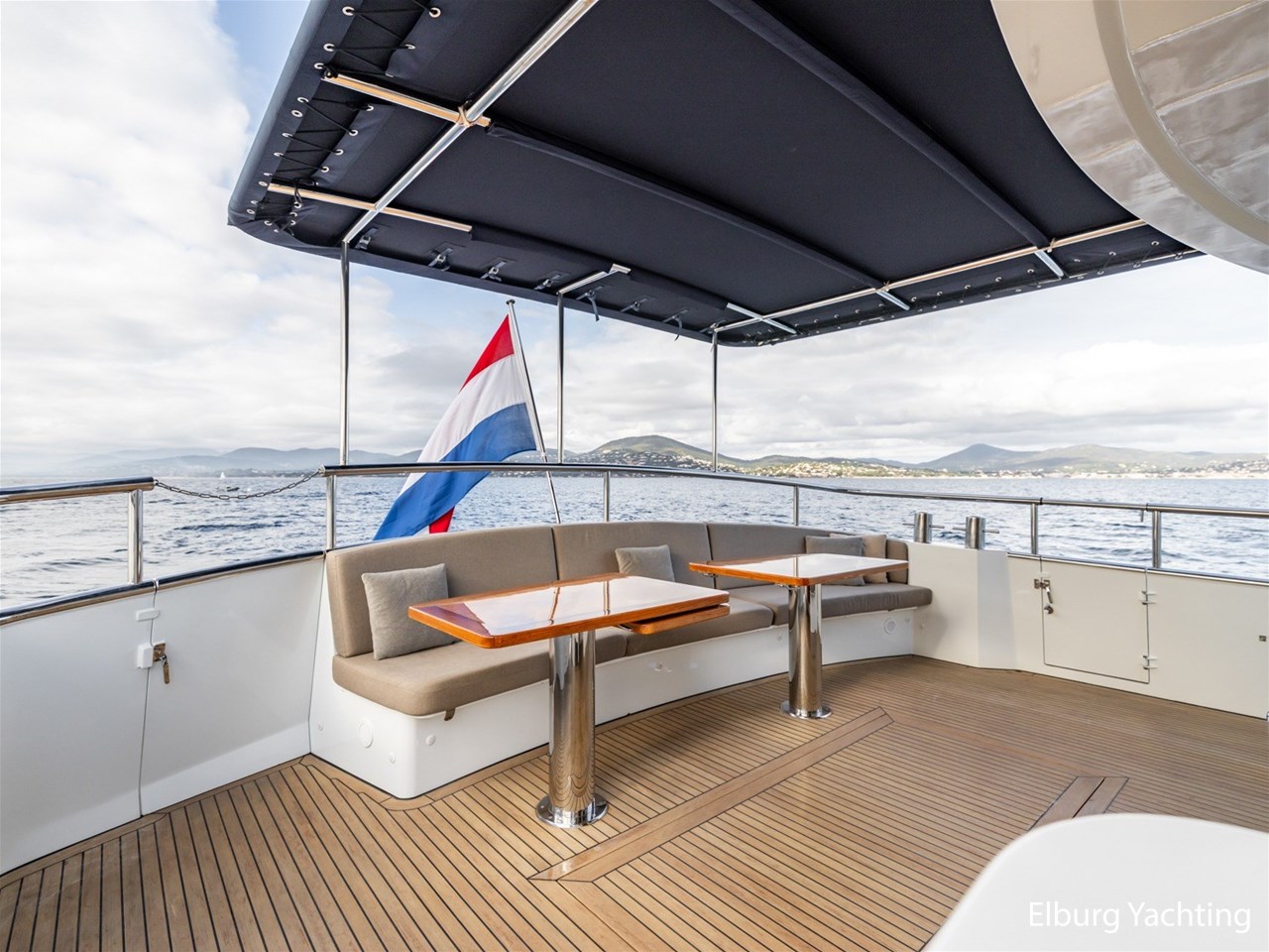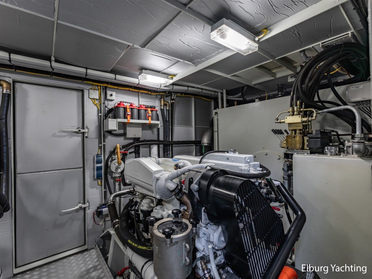 Modern en zeer comfortabel gebouwde stalen Sturiër 620 OC voorzien van hoogwaardige materialen en gebruik van kwaliteitstechniek gebouwd door de Volharding in Stavoren. Het schip is gebouwd in 2013 en in 2014 in de vaar genomen. Deze Sturiër 620 OC heeft een drie hutten indeling met een riante eigenaarshut over de volledige breedte midscheeps, een comfortabele 2 persoons gastenhut in het voorschip en een 2 x 1 persoons stapelbed. De salon/stuurhuis en achterdek zijn gelijkvloers aan elkaar verbonden voor een optimale ruimte beleving. De eigenaarshut heeft een badkamer en-suite en de voorste twee hutten delen een gezamenlijke badkamer. De aandrijving wordt verzorgd door twee sterke John Deere motoren met elk 267pk, dit zorgt voor een soepele toch krachtige manoeuvreerbaarheid. Dit jacht is uitgevoerd met een hydraulisch Naiad stabiliteitssysteem, waardoor het ook aangenamer varen is op groter water of in slechtere weersomstandigheden. Deze Sturier 620 OC is zeer rijk uitgerust en is onder andere voorzien van: Vloerverwarming door het gehele schip, groot opbergluik in achterschip met toegang tot vele technische componenten, 2 x entree naar machinekamer zowel binnendoor als via de kuip, Bosch vriezer, Vaste banken in open kuip met afneembare kussenset, vaste biminitop over de open kuip, veel r.v.s. dekbeslag, 2-persoons bank op het voordek, ligkussen met bimini op voordek, 8 x zonnepanelen 1400W, Hydronautica afstandsbediening voor het bedienen van de boeg- en hekschroef en ook de hoofdmotoren stationair voor- en achteruit, elektrisch bedienbare blinds voor de voorruiten met afstandsbediening, stoffering van Neptune uit 2023, luxe vaarstoel met meevaarbank, elektrisch bedienbaar schuifdak boven stuurstand met hor en verduistering mogelijkheid, 4 x schuifraam in salon, muggenhorren voor patrijspoorten, goed 360gr. zicht bij de stuurstand, corian topbladen, Miele vaatwasmachine, Bosch Maxx5 was-droog combinatie, elektrische tafelpoot voor salontafel, TV op lift, soft closing lades, extra groot zwemplateau, tanks met mangaten, Victron walstroomscheidingstrafo, Victron Cerbo display, Fusion audiosysteem. Het schip heeft zich inmiddels ruimschoots bewezen met zijn zeereizen naar de Middellandse zee. Het schip is op dit moment in de haven van Saint-Tropez/Frankrijk te bezichtigen op afspraak.