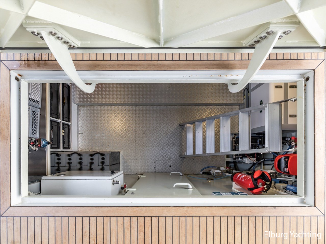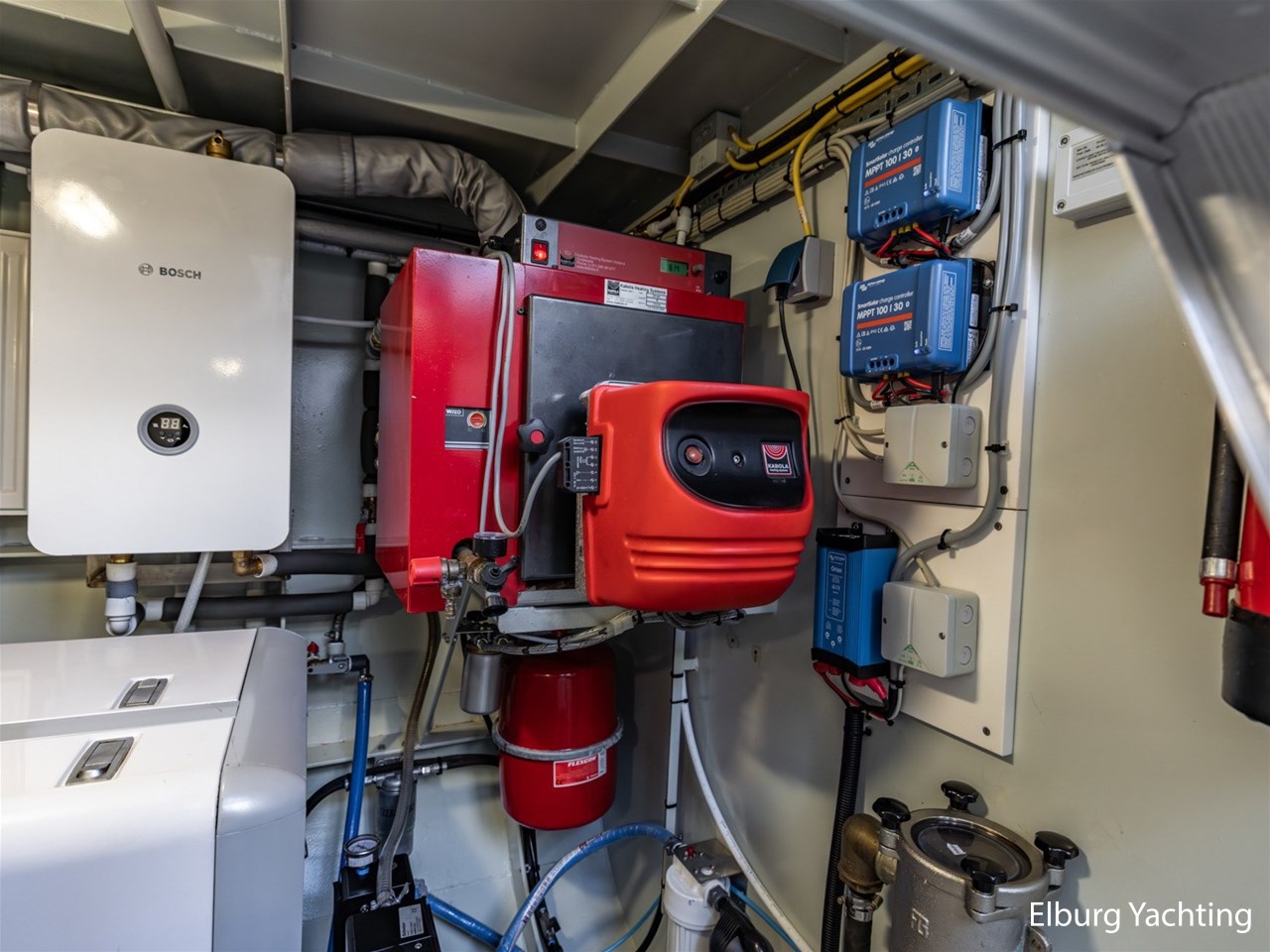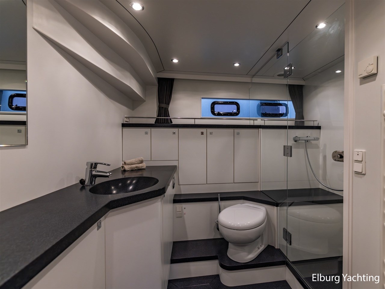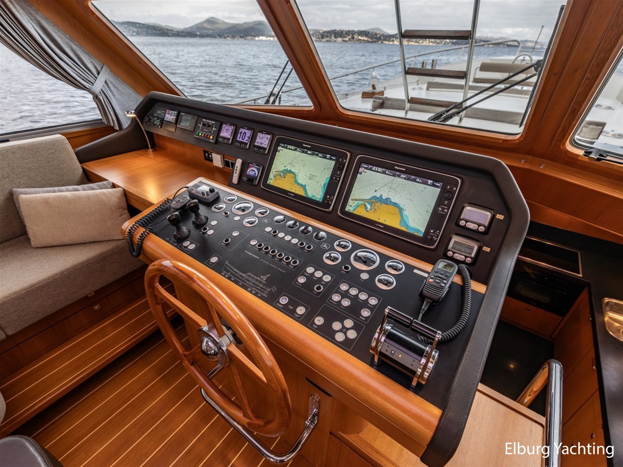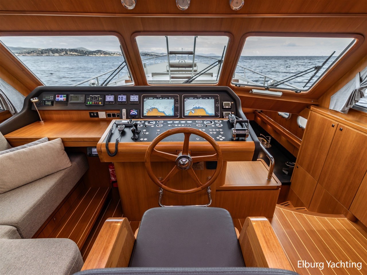 Modern en zeer comfortabel gebouwde stalen Sturiër 620 OC voorzien van hoogwaardige materialen en gebruik van kwaliteitstechniek gebouwd door de Volharding in Stavoren. Het schip is gebouwd in 2013 en in 2014 in de vaar genomen. Deze Sturiër 620 OC heeft een drie hutten indeling met een riante eigenaarshut over de volledige breedte midscheeps, een comfortabele 2 persoons gastenhut in het voorschip en een 2 x 1 persoons stapelbed. De salon/stuurhuis en achterdek zijn gelijkvloers aan elkaar verbonden voor een optimale ruimte beleving. De eigenaarshut heeft een badkamer en-suite en de voorste twee hutten delen een gezamenlijke badkamer. De aandrijving wordt verzorgd door twee sterke John Deere motoren met elk 267pk, dit zorgt voor een soepele toch krachtige manoeuvreerbaarheid. Dit jacht is uitgevoerd met een hydraulisch Naiad stabiliteitssysteem, waardoor het ook aangenamer varen is op groter water of in slechtere weersomstandigheden. Deze Sturier 620 OC is zeer rijk uitgerust en is onder andere voorzien van: Vloerverwarming door het gehele schip, groot opbergluik in achterschip met toegang tot vele technische componenten, 2 x entree naar machinekamer zowel binnendoor als via de kuip, Bosch vriezer, Vaste banken in open kuip met afneembare kussenset, vaste biminitop over de open kuip, veel r.v.s. dekbeslag, 2-persoons bank op het voordek, ligkussen met bimini op voordek, 8 x zonnepanelen 1400W, Hydronautica afstandsbediening voor het bedienen van de boeg- en hekschroef en ook de hoofdmotoren stationair voor- en achteruit, elektrisch bedienbare blinds voor de voorruiten met afstandsbediening, stoffering van Neptune uit 2023, luxe vaarstoel met meevaarbank, elektrisch bedienbaar schuifdak boven stuurstand met hor en verduistering mogelijkheid, 4 x schuifraam in salon, muggenhorren voor patrijspoorten, goed 360gr. zicht bij de stuurstand, corian topbladen, Miele vaatwasmachine, Bosch Maxx5 was-droog combinatie, elektrische tafelpoot voor salontafel, TV op lift, soft closing lades, extra groot zwemplateau, tanks met mangaten, Victron walstroomscheidingstrafo, Victron Cerbo display, Fusion audiosysteem. Het schip heeft zich inmiddels ruimschoots bewezen met zijn zeereizen naar de Middellandse zee. Het schip is op dit moment in de haven van Saint-Tropez/Frankrijk te bezichtigen op afspraak.