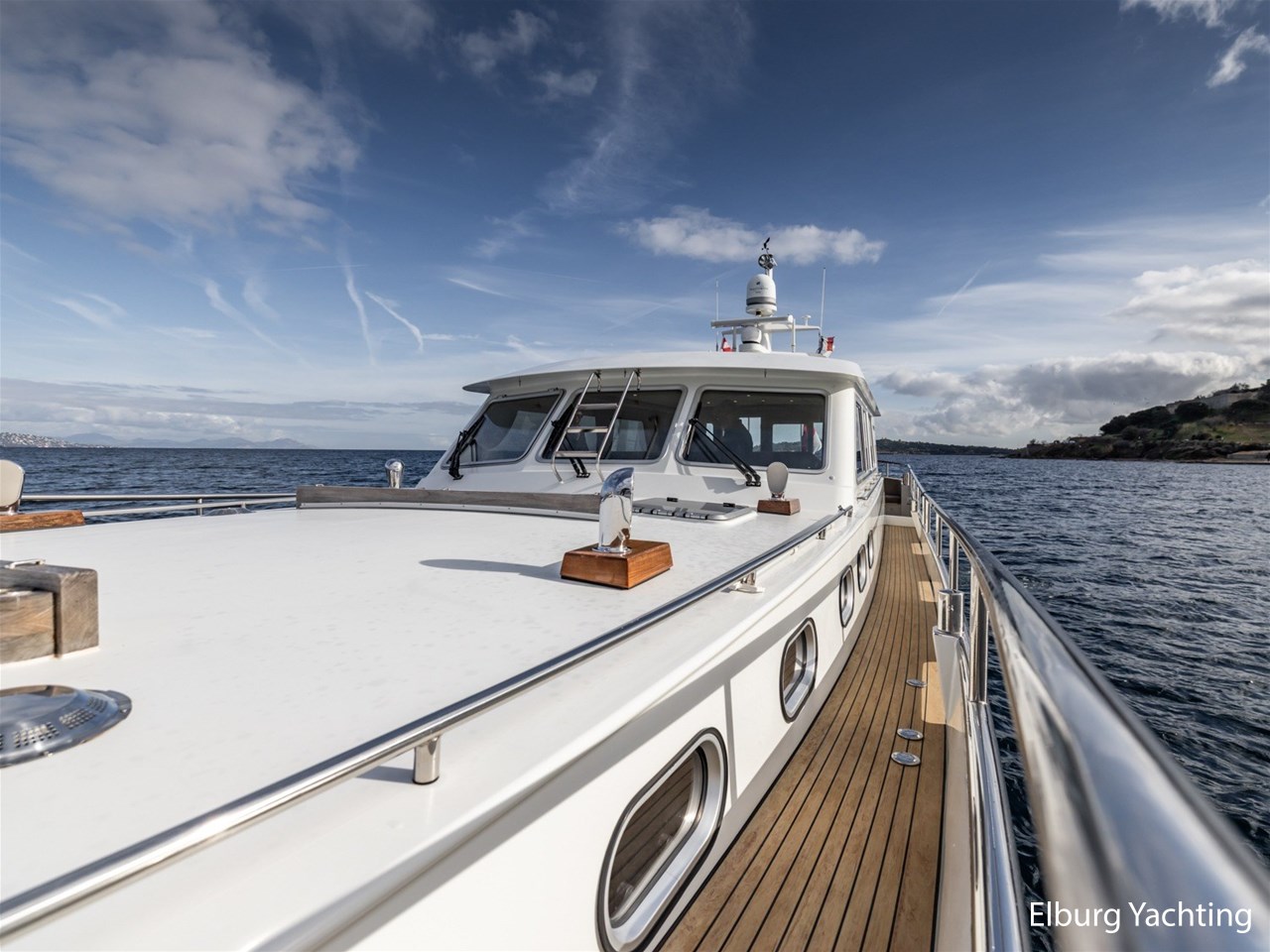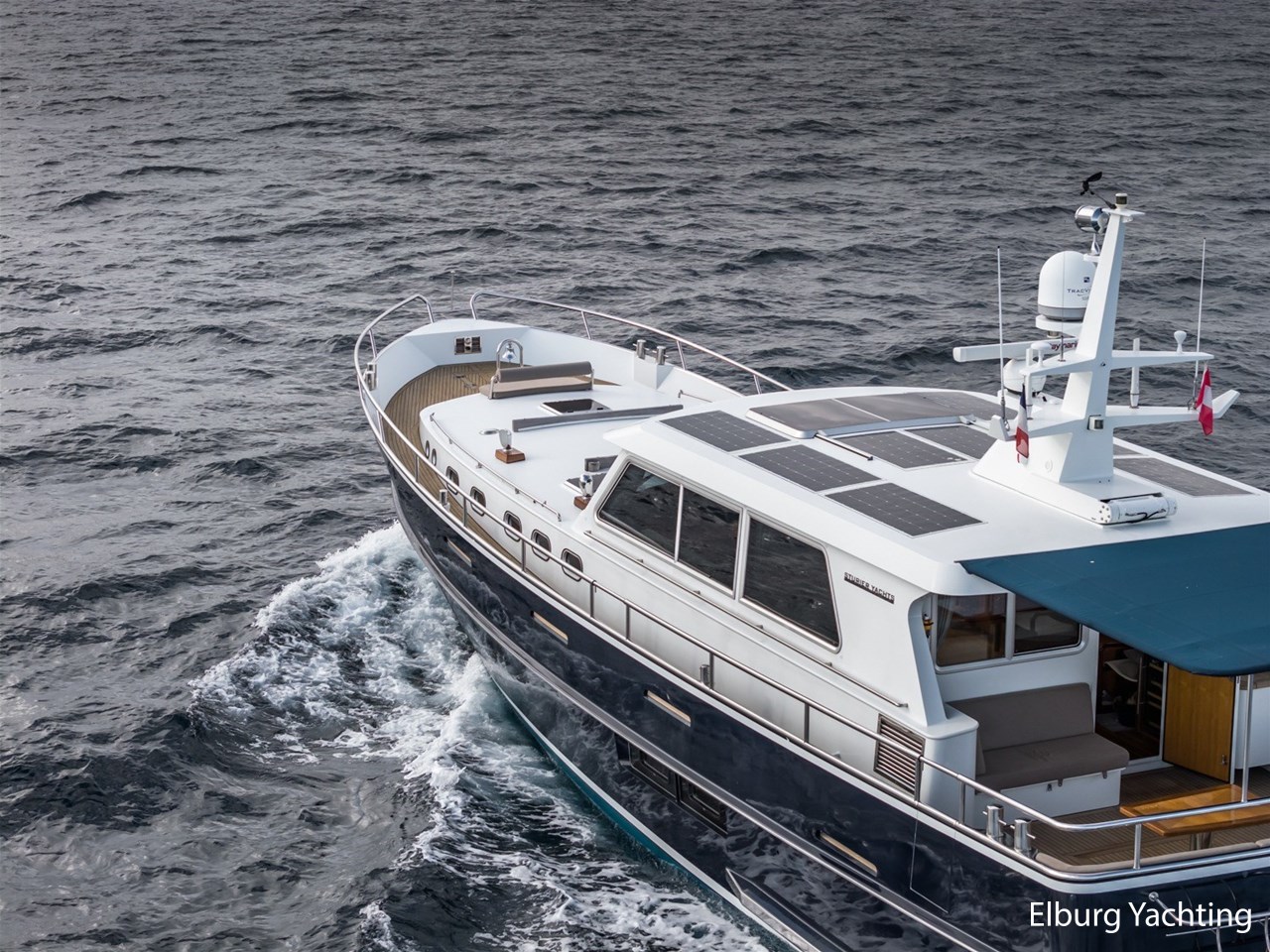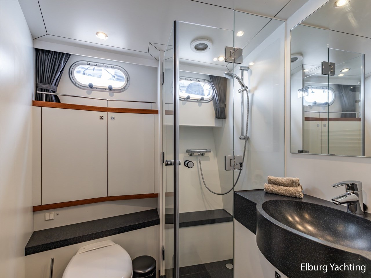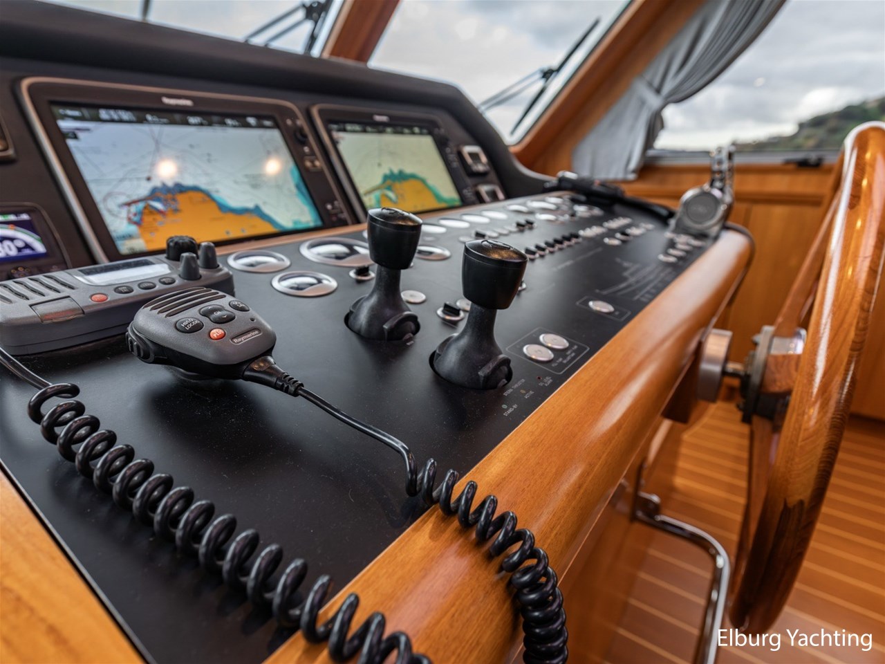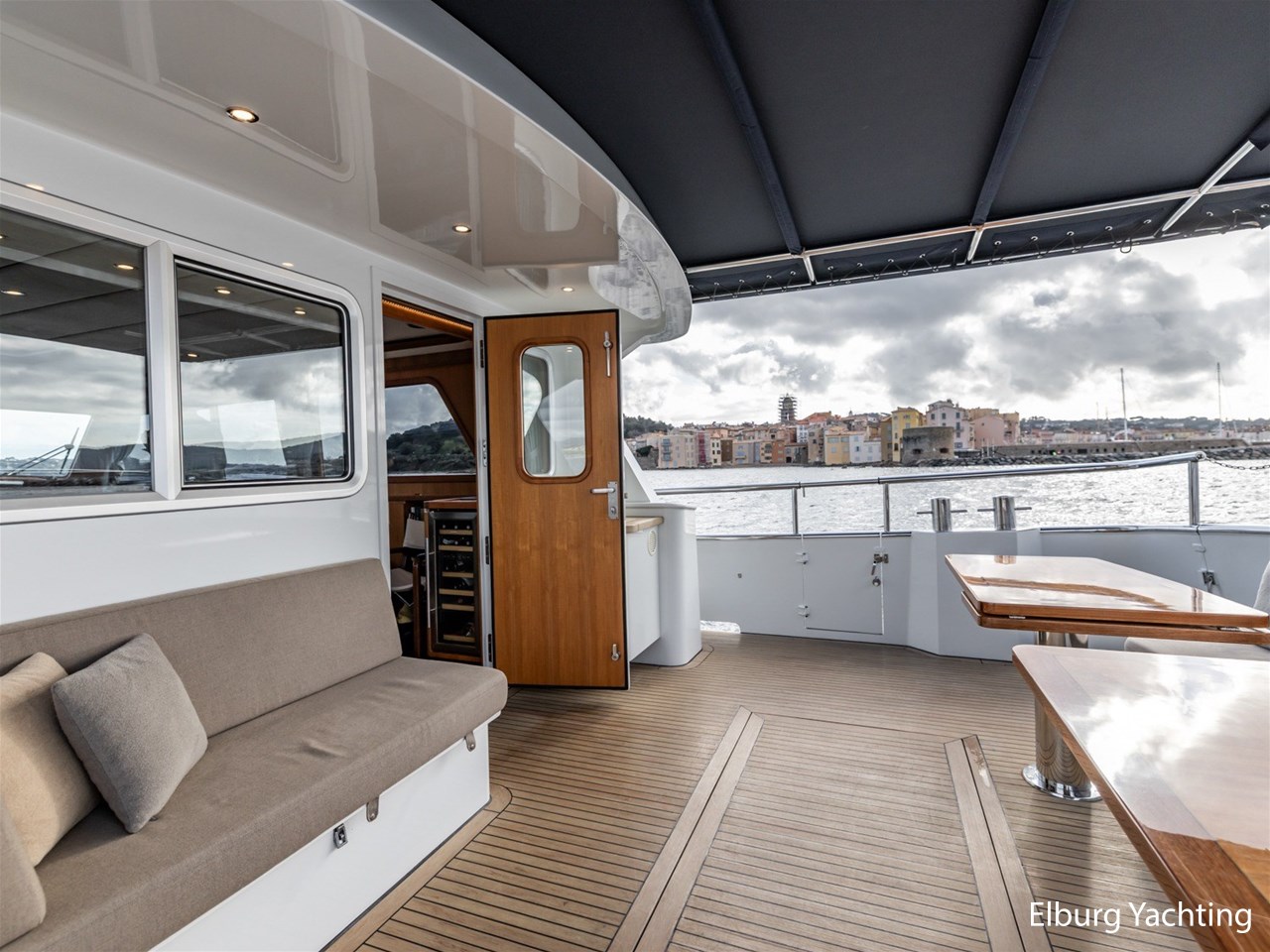 Modern en zeer comfortabel gebouwde stalen Sturiër 620 OC voorzien van hoogwaardige materialen en gebruik van kwaliteitstechniek gebouwd door de Volharding in Stavoren. Het schip is gebouwd in 2013 en in 2014 in de vaar genomen. Deze Sturiër 620 OC heeft een drie hutten indeling met een riante eigenaarshut over de volledige breedte midscheeps, een comfortabele 2 persoons gastenhut in het voorschip en een 2 x 1 persoons stapelbed. De salon/stuurhuis en achterdek zijn gelijkvloers aan elkaar verbonden voor een optimale ruimte beleving. De eigenaarshut heeft een badkamer en-suite en de voorste twee hutten delen een gezamenlijke badkamer. De aandrijving wordt verzorgd door twee sterke John Deere motoren met elk 267pk, dit zorgt voor een soepele toch krachtige manoeuvreerbaarheid. Dit jacht is uitgevoerd met een hydraulisch Naiad stabiliteitssysteem, waardoor het ook aangenamer varen is op groter water of in slechtere weersomstandigheden. Deze Sturier 620 OC is zeer rijk uitgerust en is onder andere voorzien van: Vloerverwarming door het gehele schip, groot opbergluik in achterschip met toegang tot vele technische componenten, 2 x entree naar machinekamer zowel binnendoor als via de kuip, Bosch vriezer, Vaste banken in open kuip met afneembare kussenset, vaste biminitop over de open kuip, veel r.v.s. dekbeslag, 2-persoons bank op het voordek, ligkussen met bimini op voordek, 8 x zonnepanelen 1400W, Hydronautica afstandsbediening voor het bedienen van de boeg- en hekschroef en ook de hoofdmotoren stationair voor- en achteruit, elektrisch bedienbare blinds voor de voorruiten met afstandsbediening, stoffering van Neptune uit 2023, luxe vaarstoel met meevaarbank, elektrisch bedienbaar schuifdak boven stuurstand met hor en verduistering mogelijkheid, 4 x schuifraam in salon, muggenhorren voor patrijspoorten, goed 360gr. zicht bij de stuurstand, corian topbladen, Miele vaatwasmachine, Bosch Maxx5 was-droog combinatie, elektrische tafelpoot voor salontafel, TV op lift, soft closing lades, extra groot zwemplateau, tanks met mangaten, Victron walstroomscheidingstrafo, Victron Cerbo display, Fusion audiosysteem. Het schip heeft zich inmiddels ruimschoots bewezen met zijn zeereizen naar de Middellandse zee. Het schip is op dit moment in de haven van Saint-Tropez/Frankrijk te bezichtigen op afspraak.