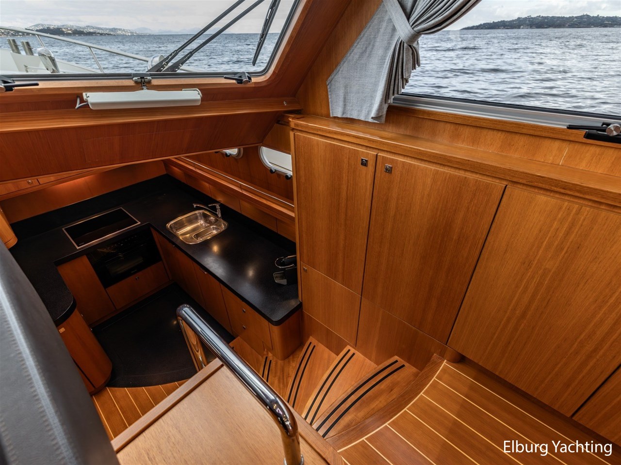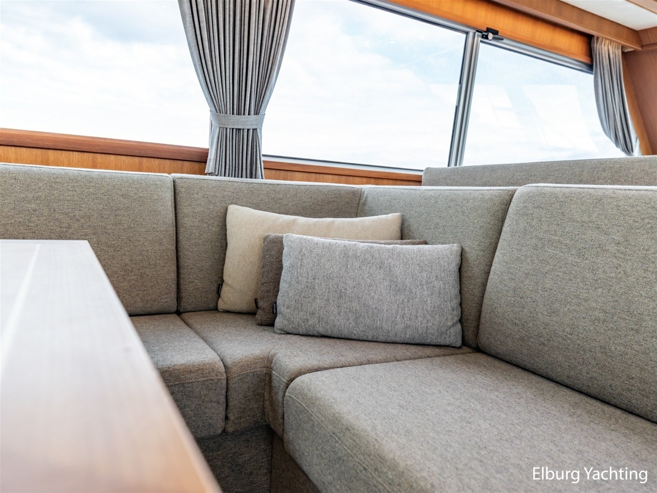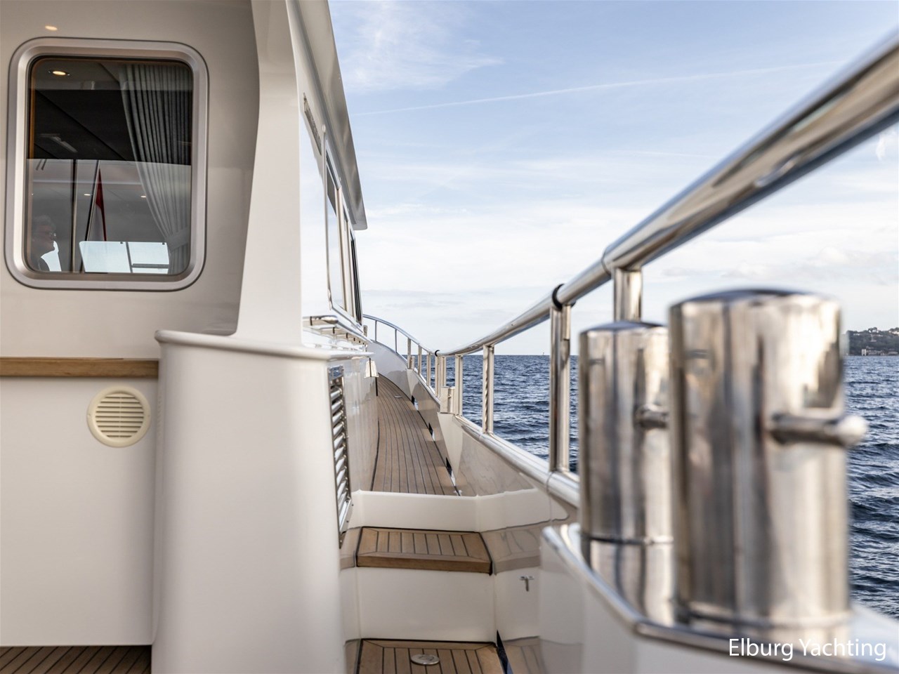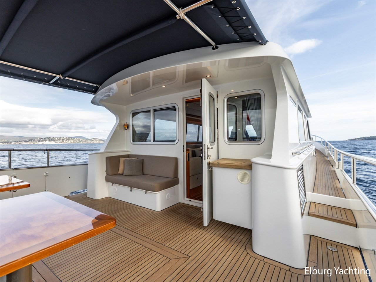 Modern en zeer comfortabel gebouwde stalen Sturiër 620 OC voorzien van hoogwaardige materialen en gebruik van kwaliteitstechniek gebouwd door de Volharding in Stavoren. Het schip is gebouwd in 2013 en in 2014 in de vaar genomen. Deze Sturiër 620 OC heeft een drie hutten indeling met een riante eigenaarshut over de volledige breedte midscheeps, een comfortabele 2 persoons gastenhut in het voorschip en een 2 x 1 persoons stapelbed. De salon/stuurhuis en achterdek zijn gelijkvloers aan elkaar verbonden voor een optimale ruimte beleving. De eigenaarshut heeft een badkamer en-suite en de voorste twee hutten delen een gezamenlijke badkamer. De aandrijving wordt verzorgd door twee sterke John Deere motoren met elk 267pk, dit zorgt voor een soepele toch krachtige manoeuvreerbaarheid. Dit jacht is uitgevoerd met een hydraulisch Naiad stabiliteitssysteem, waardoor het ook aangenamer varen is op groter water of in slechtere weersomstandigheden. Deze Sturier 620 OC is zeer rijk uitgerust en is onder andere voorzien van: Vloerverwarming door het gehele schip, groot opbergluik in achterschip met toegang tot vele technische componenten, 2 x entree naar machinekamer zowel binnendoor als via de kuip, Bosch vriezer, Vaste banken in open kuip met afneembare kussenset, vaste biminitop over de open kuip, veel r.v.s. dekbeslag, 2-persoons bank op het voordek, ligkussen met bimini op voordek, 8 x zonnepanelen 1400W, Hydronautica afstandsbediening voor het bedienen van de boeg- en hekschroef en ook de hoofdmotoren stationair voor- en achteruit, elektrisch bedienbare blinds voor de voorruiten met afstandsbediening, stoffering van Neptune uit 2023, luxe vaarstoel met meevaarbank, elektrisch bedienbaar schuifdak boven stuurstand met hor en verduistering mogelijkheid, 4 x schuifraam in salon, muggenhorren voor patrijspoorten, goed 360gr. zicht bij de stuurstand, corian topbladen, Miele vaatwasmachine, Bosch Maxx5 was-droog combinatie, elektrische tafelpoot voor salontafel, TV op lift, soft closing lades, extra groot zwemplateau, tanks met mangaten, Victron walstroomscheidingstrafo, Victron Cerbo display, Fusion audiosysteem. Het schip heeft zich inmiddels ruimschoots bewezen met zijn zeereizen naar de Middellandse zee. Het schip is op dit moment in de haven van Saint-Tropez/Frankrijk te bezichtigen op afspraak.
