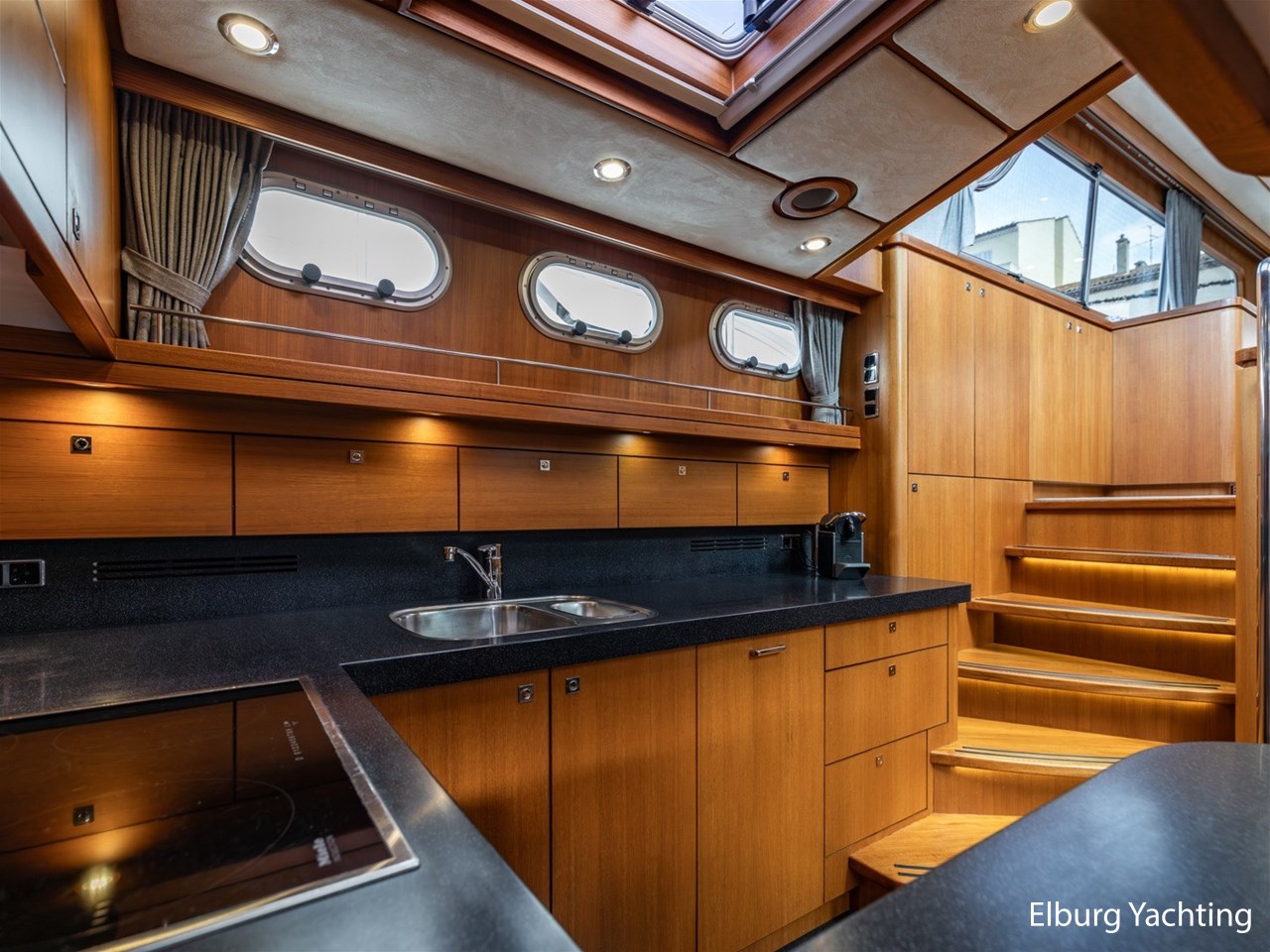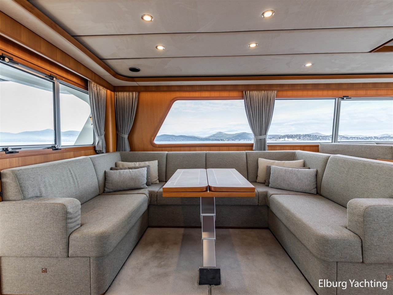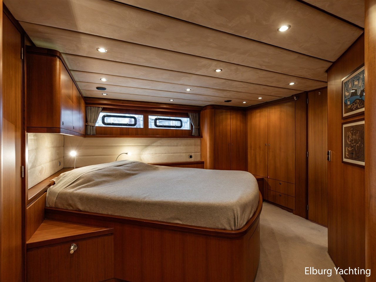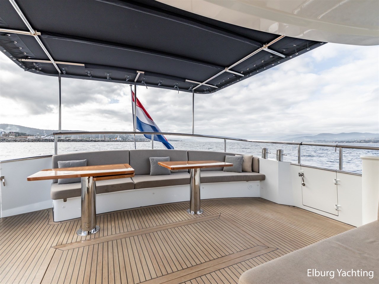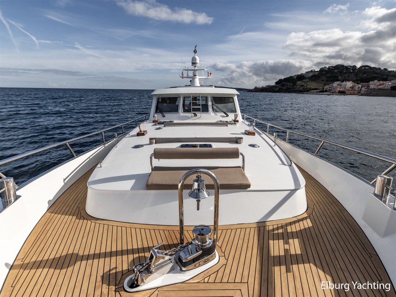 Modern en zeer comfortabel gebouwde stalen Sturiër 620 OC voorzien van hoogwaardige materialen en gebruik van kwaliteitstechniek gebouwd door de Volharding in Stavoren. Het schip is gebouwd in 2013 en in 2014 in de vaar genomen. Deze Sturiër 620 OC heeft een drie hutten indeling met een riante eigenaarshut over de volledige breedte midscheeps, een comfortabele 2 persoons gastenhut in het voorschip en een 2 x 1 persoons stapelbed. De salon/stuurhuis en achterdek zijn gelijkvloers aan elkaar verbonden voor een optimale ruimte beleving. De eigenaarshut heeft een badkamer en-suite en de voorste twee hutten delen een gezamenlijke badkamer. De aandrijving wordt verzorgd door twee sterke John Deere motoren met elk 267pk, dit zorgt voor een soepele toch krachtige manoeuvreerbaarheid. Dit jacht is uitgevoerd met een hydraulisch Naiad stabiliteitssysteem, waardoor het ook aangenamer varen is op groter water of in slechtere weersomstandigheden. Deze Sturier 620 OC is zeer rijk uitgerust en is onder andere voorzien van: Vloerverwarming door het gehele schip, groot opbergluik in achterschip met toegang tot vele technische componenten, 2 x entree naar machinekamer zowel binnendoor als via de kuip, Bosch vriezer, Vaste banken in open kuip met afneembare kussenset, vaste biminitop over de open kuip, veel r.v.s. dekbeslag, 2-persoons bank op het voordek, ligkussen met bimini op voordek, 8 x zonnepanelen 1400W, Hydronautica afstandsbediening voor het bedienen van de boeg- en hekschroef en ook de hoofdmotoren stationair voor- en achteruit, elektrisch bedienbare blinds voor de voorruiten met afstandsbediening, stoffering van Neptune uit 2023, luxe vaarstoel met meevaarbank, elektrisch bedienbaar schuifdak boven stuurstand met hor en verduistering mogelijkheid, 4 x schuifraam in salon, muggenhorren voor patrijspoorten, goed 360gr. zicht bij de stuurstand, corian topbladen, Miele vaatwasmachine, Bosch Maxx5 was-droog combinatie, elektrische tafelpoot voor salontafel, TV op lift, soft closing lades, extra groot zwemplateau, tanks met mangaten, Victron walstroomscheidingstrafo, Victron Cerbo display, Fusion audiosysteem. Het schip heeft zich inmiddels ruimschoots bewezen met zijn zeereizen naar de Middellandse zee. Het schip is op dit moment in de haven van Saint-Tropez/Frankrijk te bezichtigen op afspraak.
