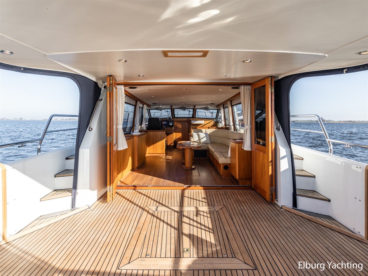 Het jacht is daarnaast uitgevoerd met: Vetus airconditioning in salon, extra stevige r.v.s. reling,4 x houten (openslaande) deuren naar open kuip, deur in verschansing naar zwemplateau, geïntegreerde bakskisten met teakhouten deksel, grote verwarmde (d.m.v. radiator) opbergruimte onder de kuip, dekwaspomp, lederen bekleding, dubbele r.v.s. stootlijst, vlucht/ventilatie luik, luxe vaarstoel (met leer bekleedt), Mastervolt Mass inverter/charger Control, r.v.s. bolders en kikkers gemonteerd op r.v.s. platen, Bosch was/droger combinatie, zelflozende kuip, kuiptent, klapbare radarbeugel, laminaat vloer in salon, traanplaten in machinekamer, dubbele wierfilters, dubbele brandstoffilters, het jacht heeft een zeer ruime beschutte kuip + zeer ruime salon. Door de 4 klapdeuren ontstaat er een zeer gezellige ruimte als geheel.