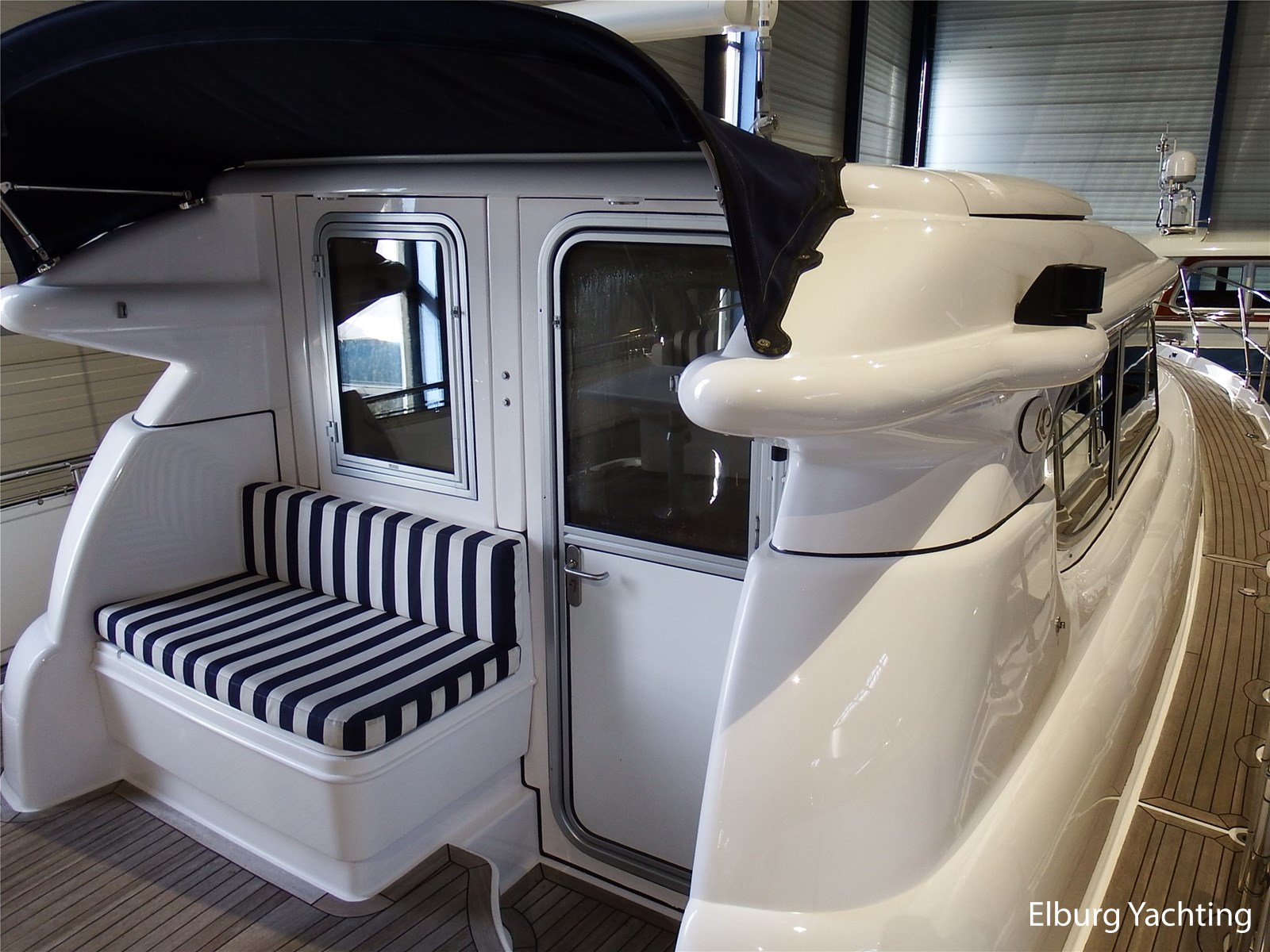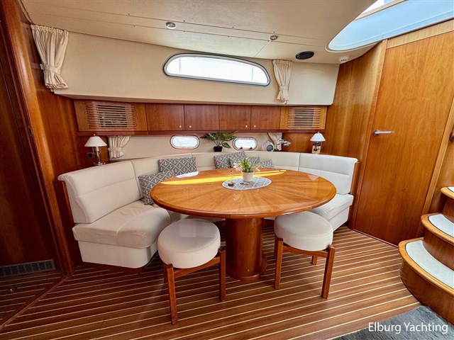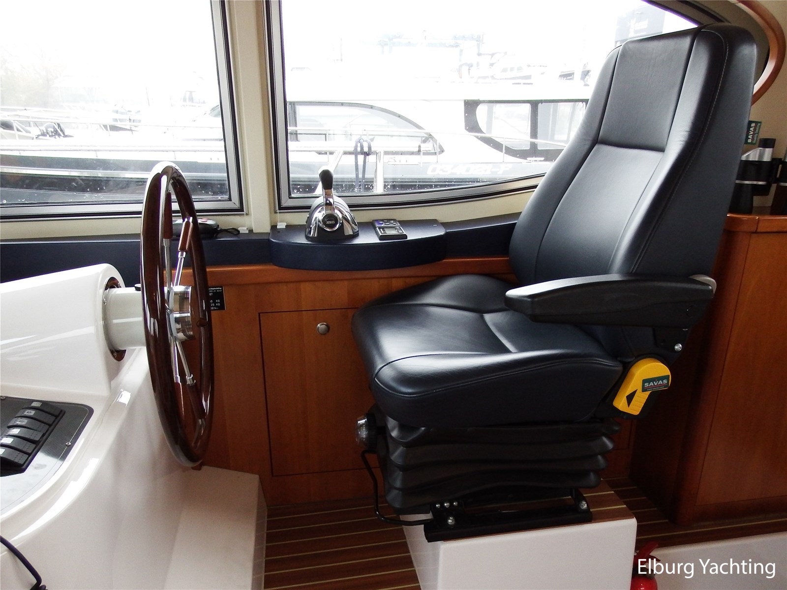 Verder wordt het jacht geleverd met: Groot achterdek met vaste bank, Biminitop over achterdek, groot schuifdak in vast stuurhuis, luxe vaarstoel met lederen bekleding, dubbele r.v.s. zeereling, r.v.s. stootlijst, ruime dinette in salon, veel kastruimte, dekkasten op achterdek, raam in de spiegel bij eigenaarshut, combi wasmachine/droger, vaatwasser, achteruitvaarcamera, TV in de salon, Stereo installatie, hekdouche, vloerverwarming, zonnebed op voordek, geveerde Savas vaarstoel, oceaanwaardig, veel bergruimte in de bilges, traptredes in de romp om eenvoudig aan boord te komen, opklapbare r.v.s. kikkers op zwemplatform, elektronische gashendel.